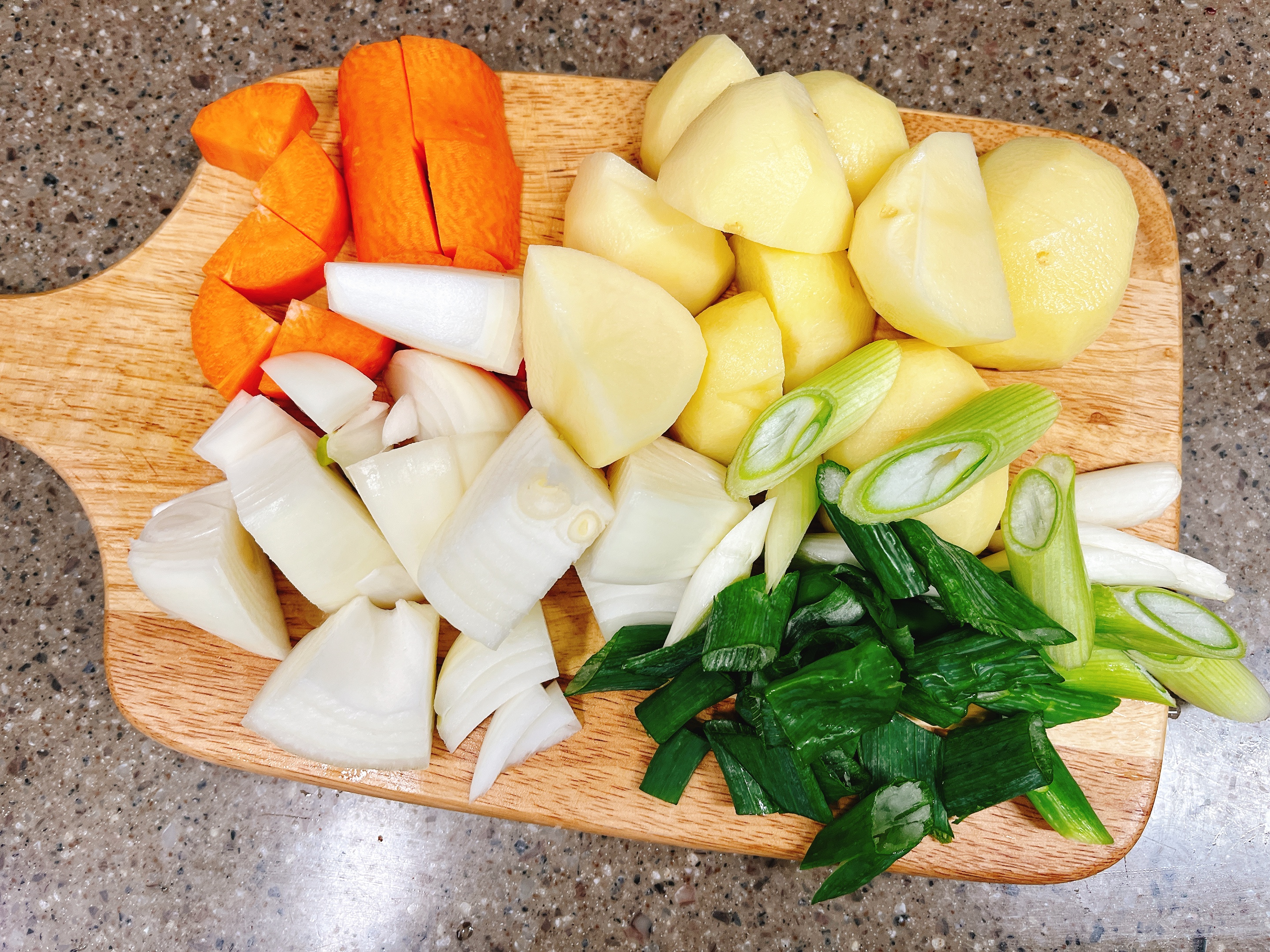감자 3개는 크게 4등분, 당근은 감자크기의 반,