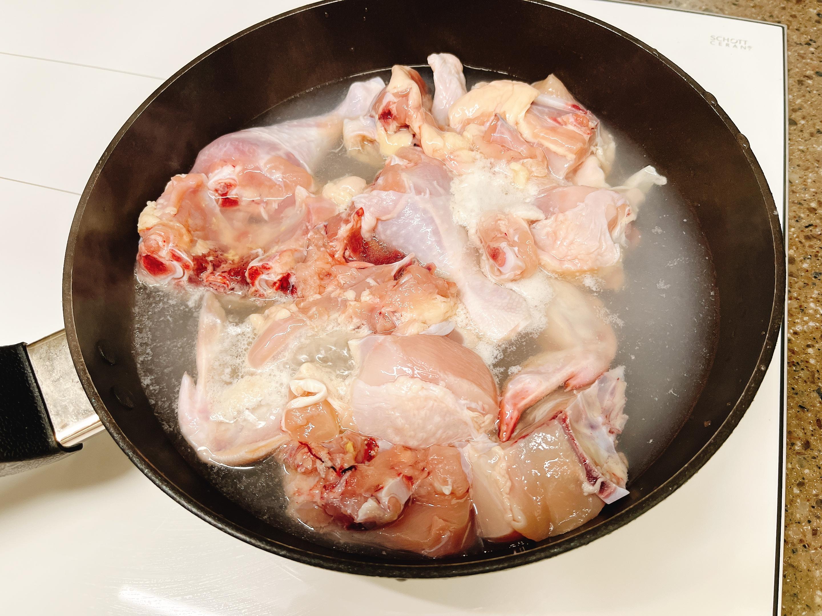 생닭을 흐르는 물에 가볍게 헹궈 냄비에 담고,