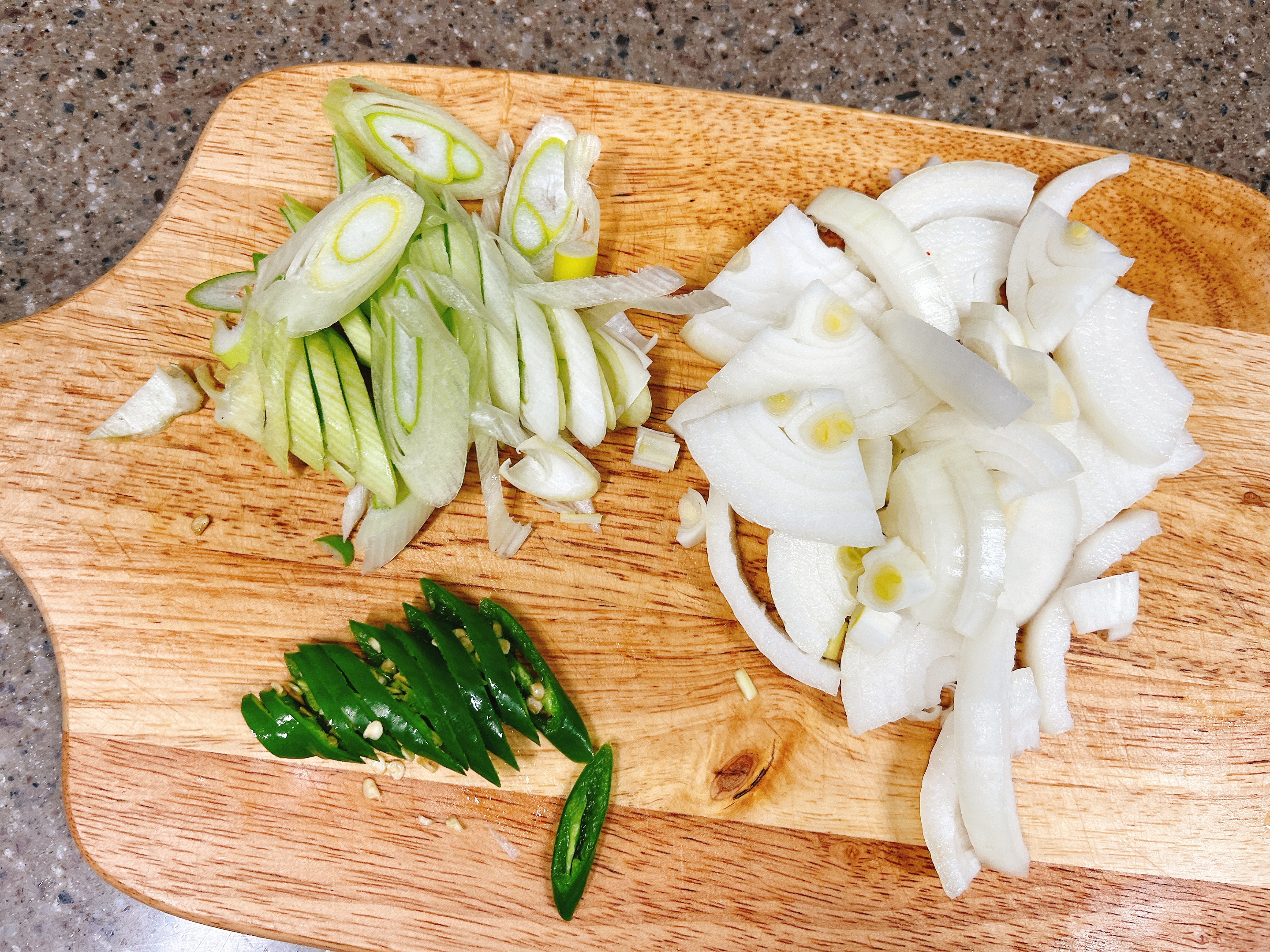 양파 1개, 대파 반줄, 청양고추 1~2개