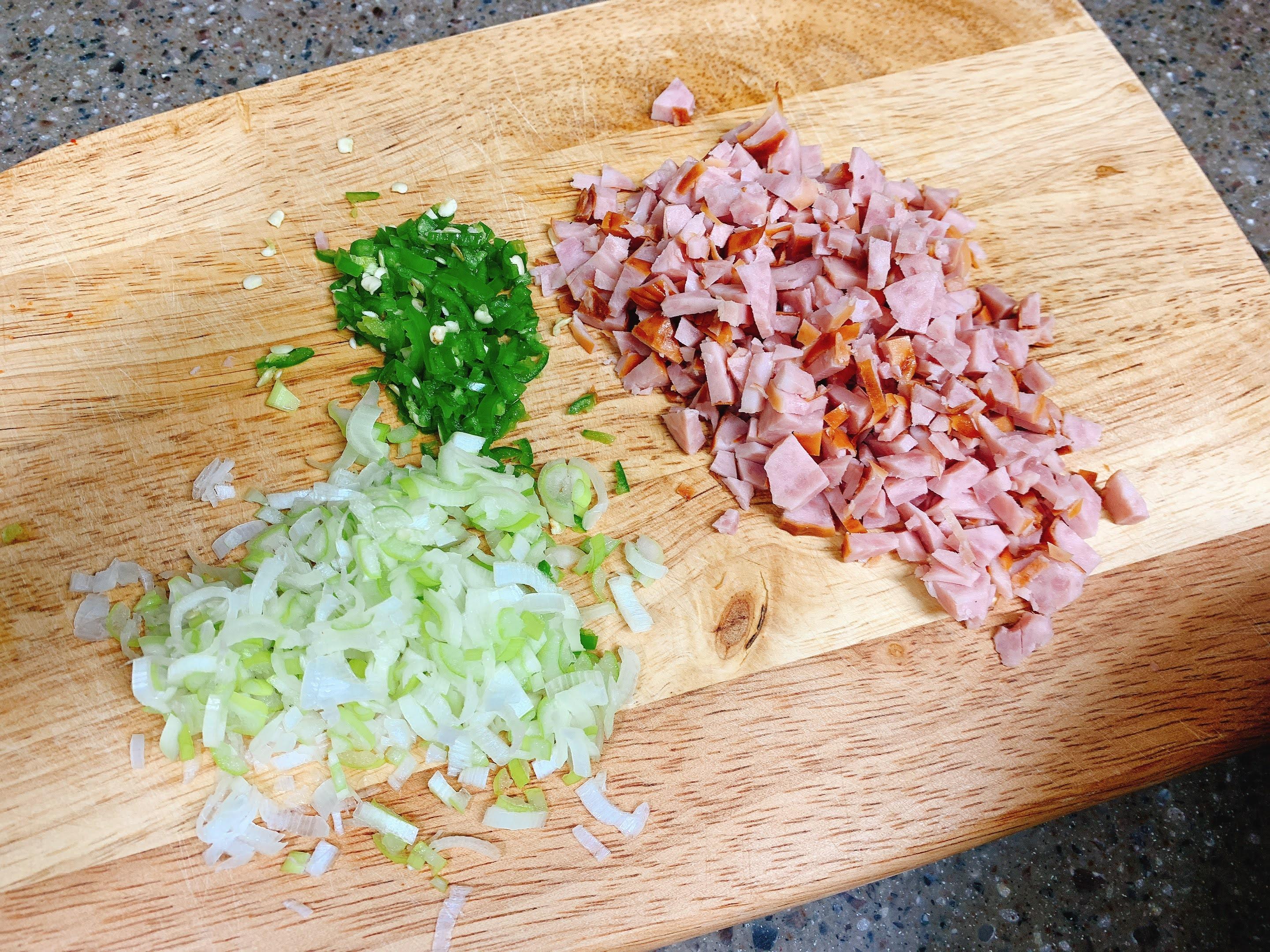 비엔나소시지를 사용해도 되고, 햄, 베이컨도 상관없어요