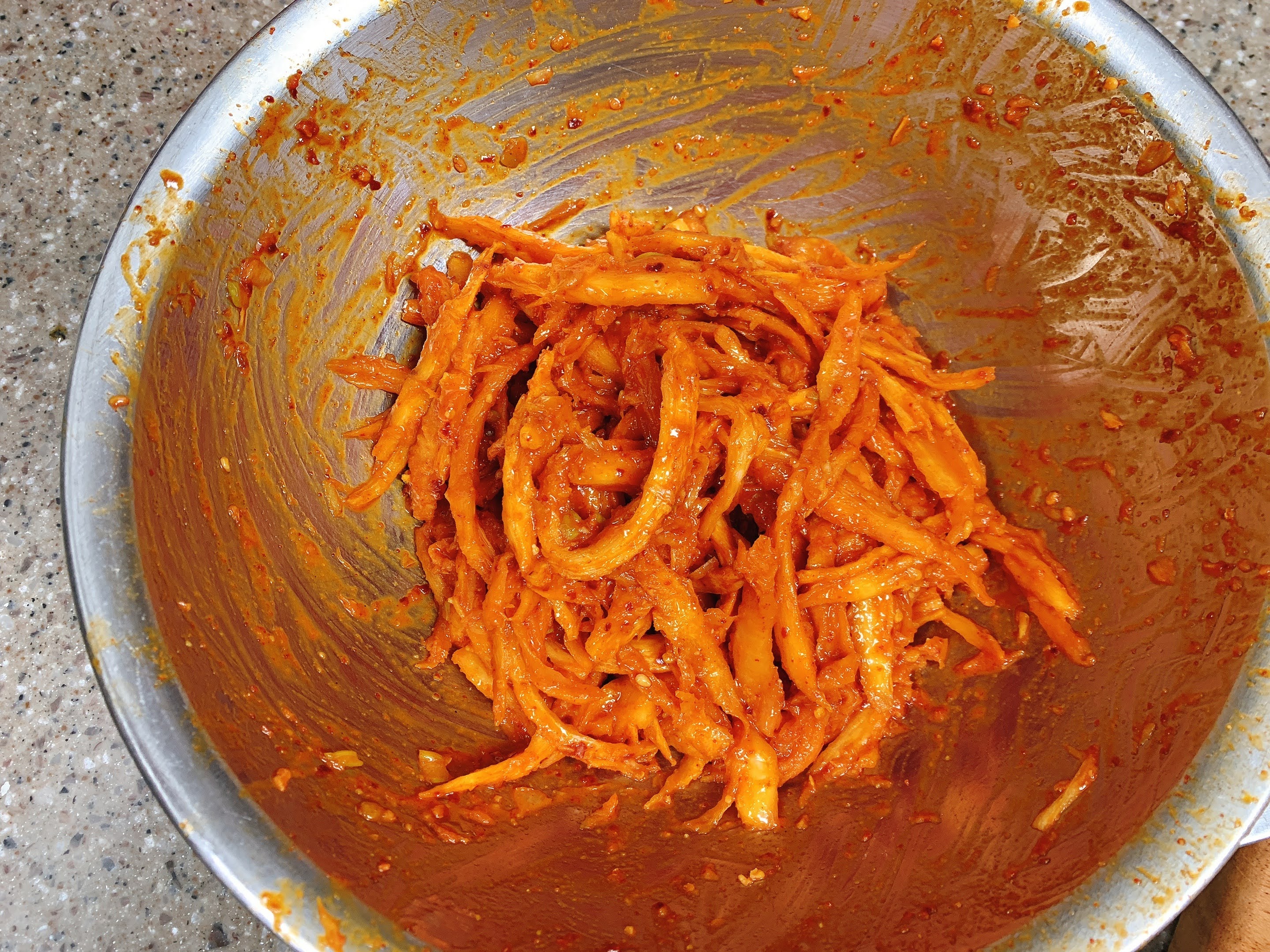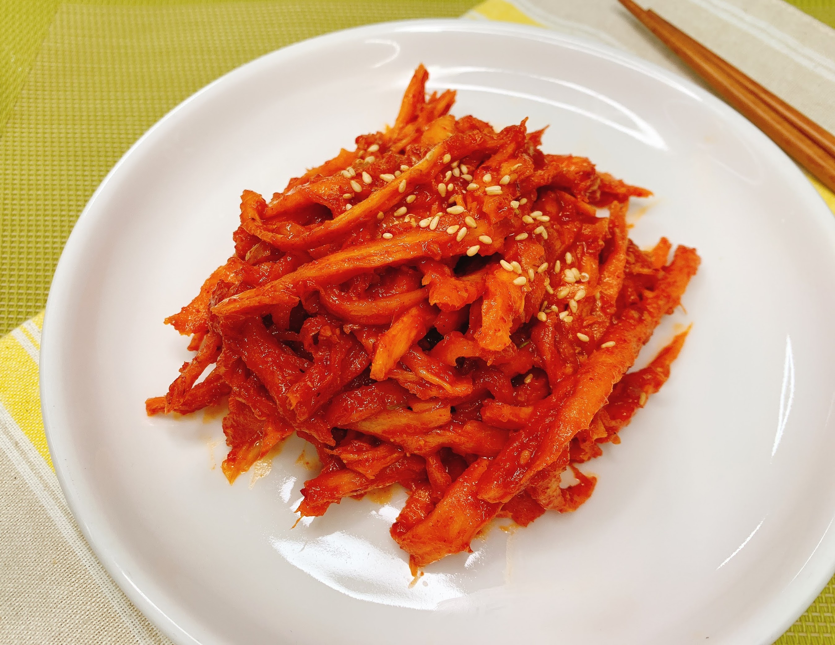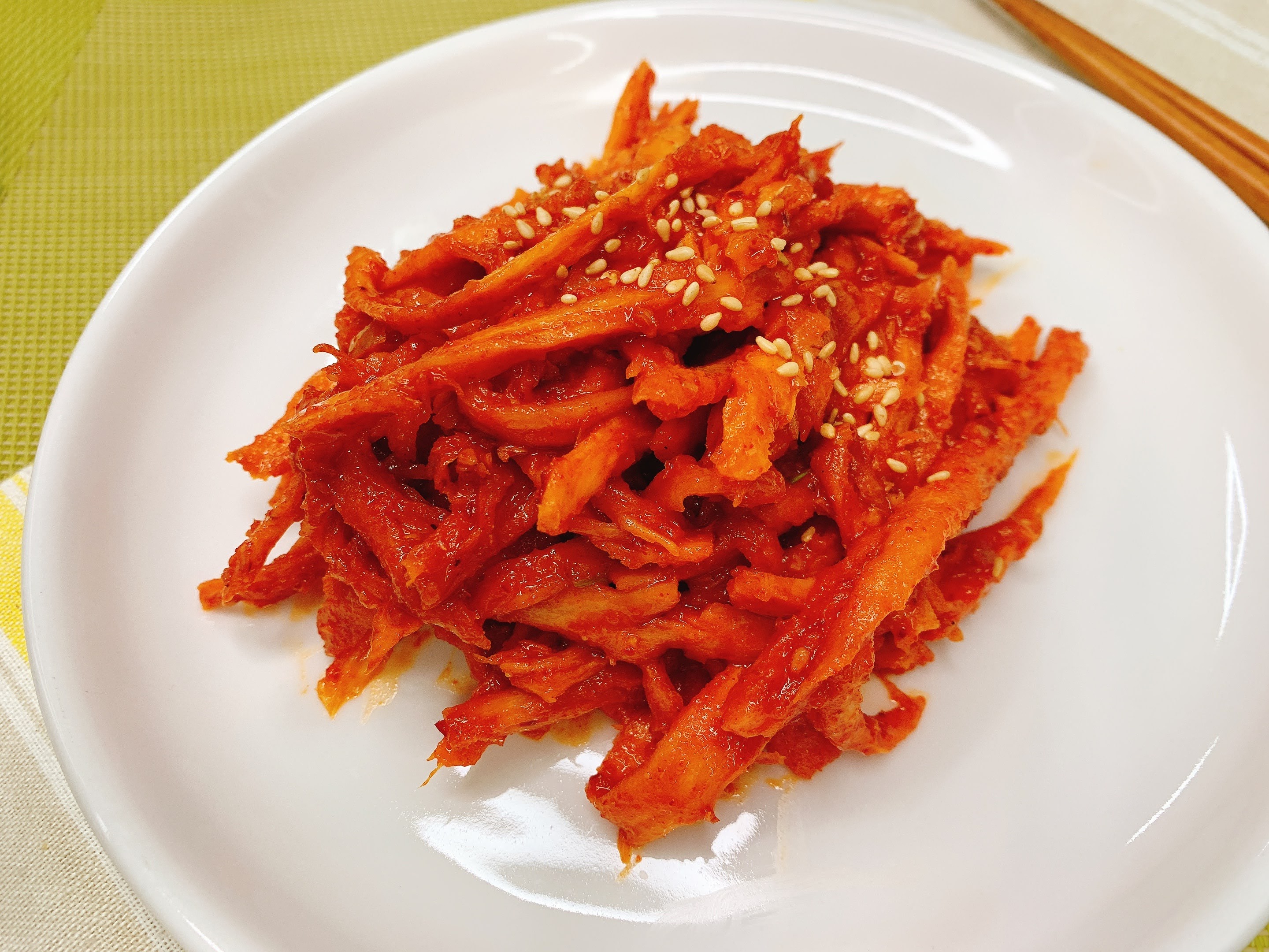 매콤하고 향긋한 더덕무침이 되었어요