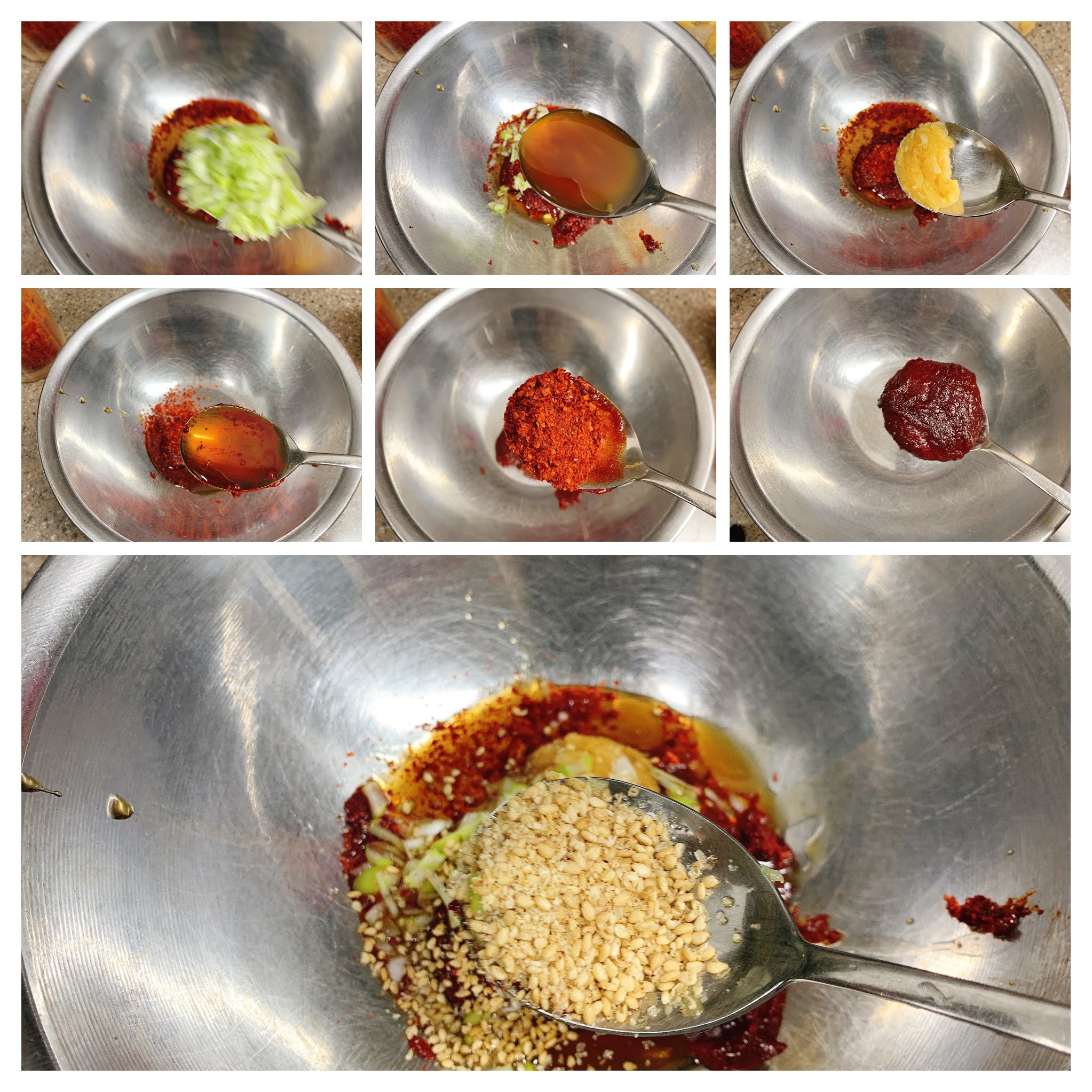 그리고 점도와 빛깔을 더해줄 고추가루도 넣어 섞어