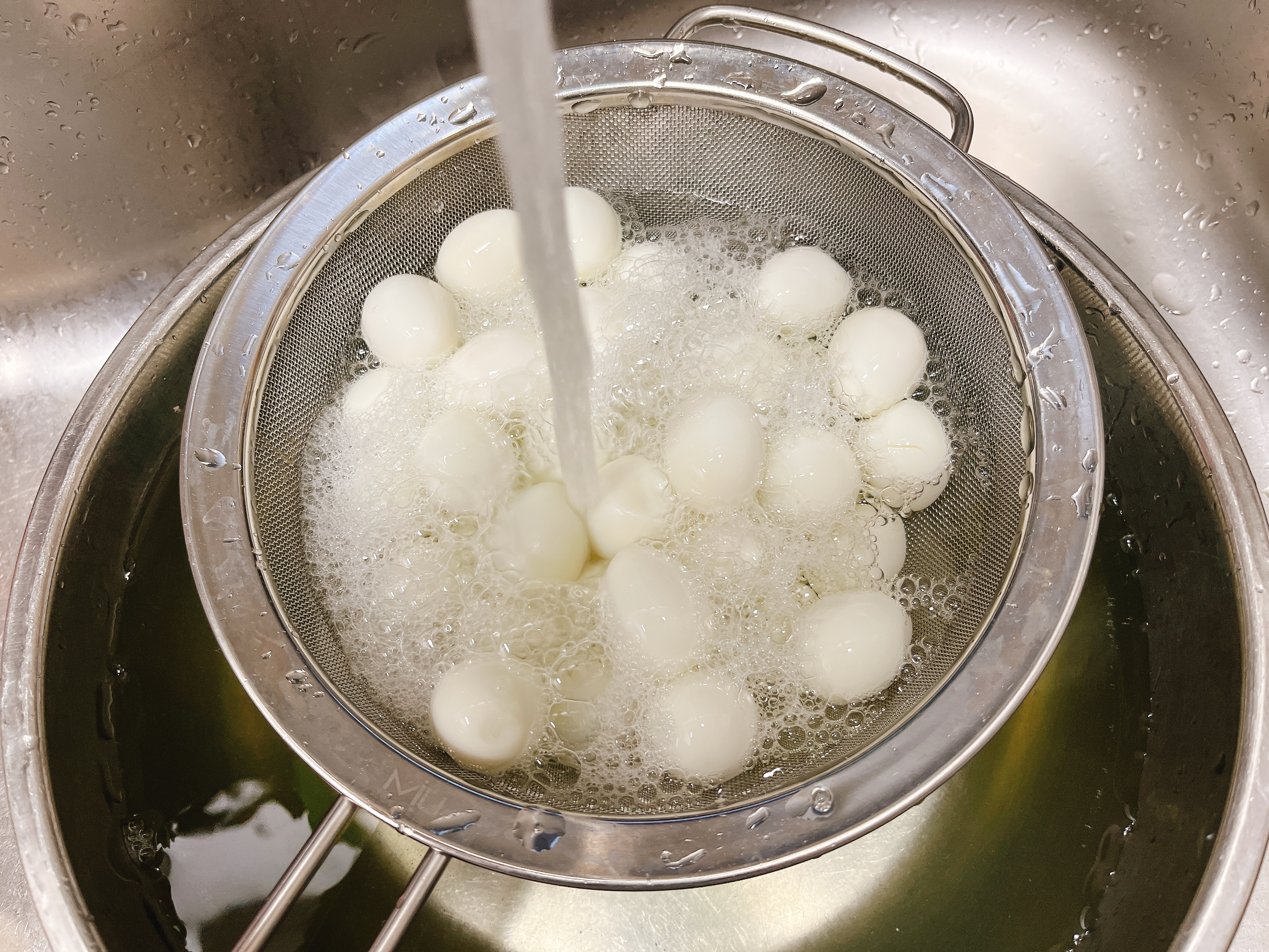 메추리알을 직접 삶아 껍질까고...