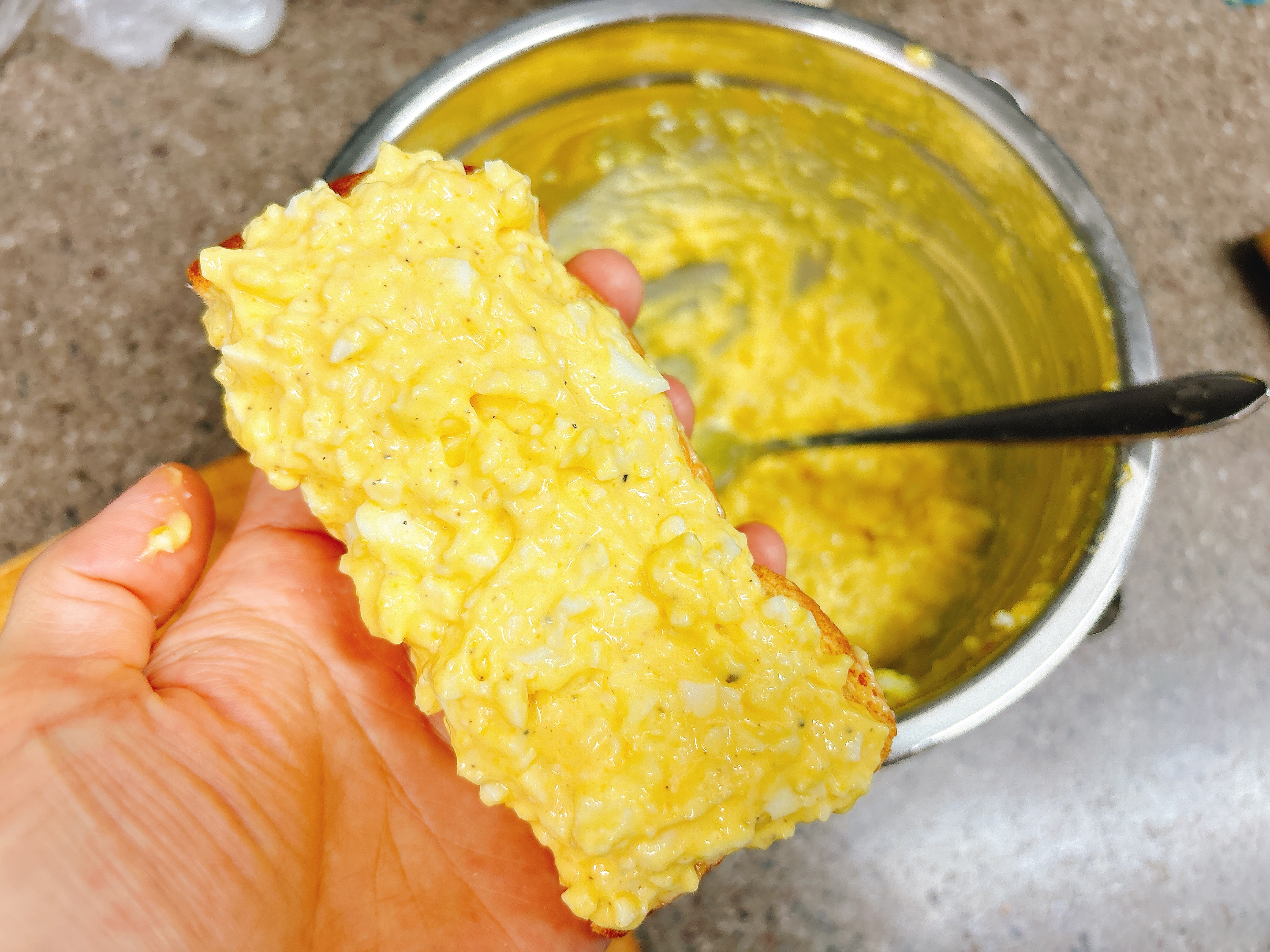 완숙란으로 만드는 보통의 계란 샌드위치와