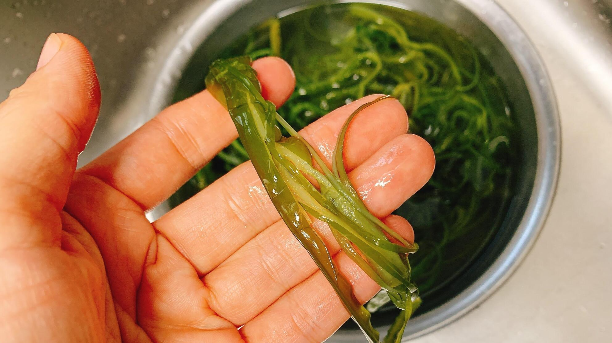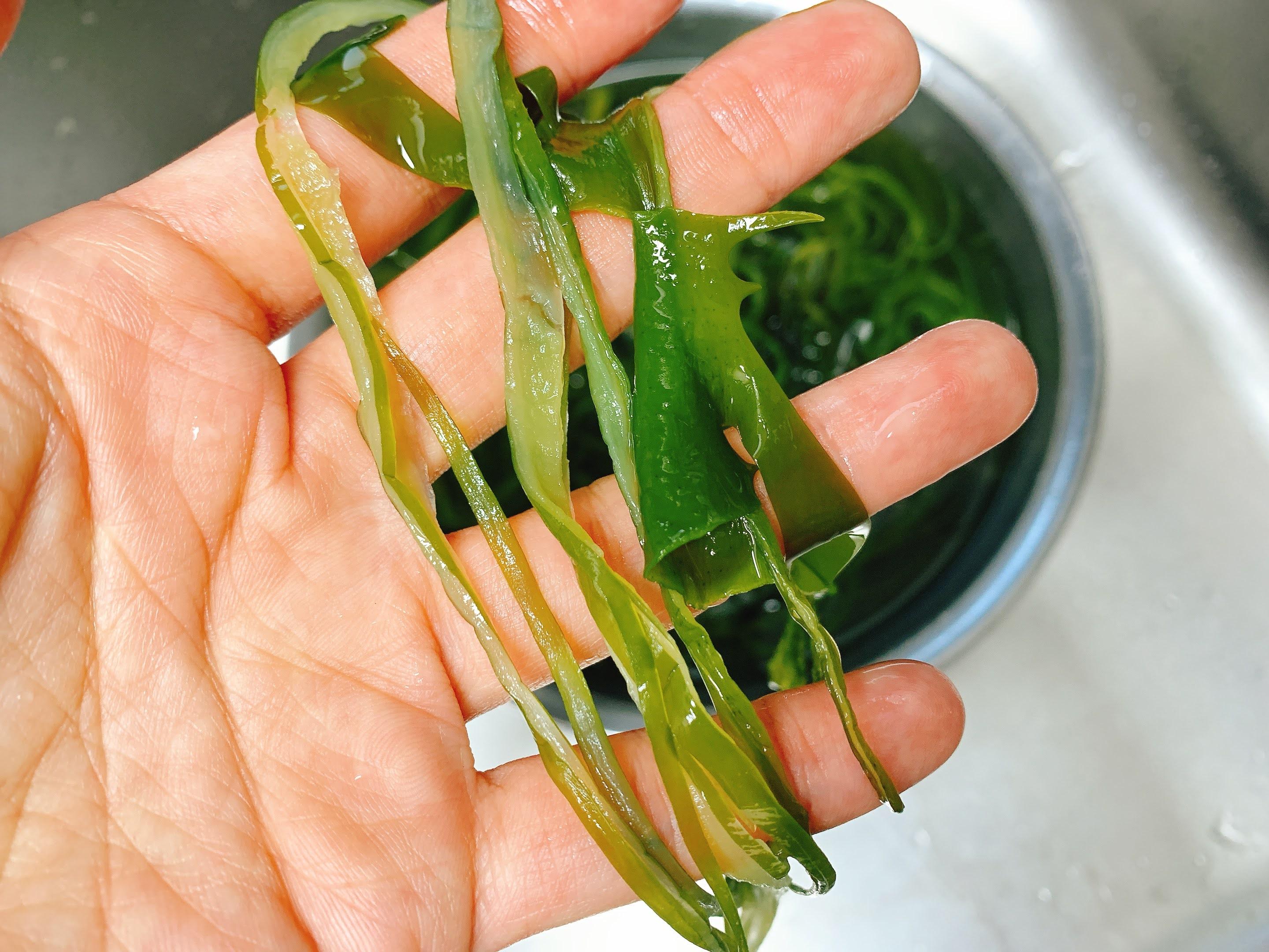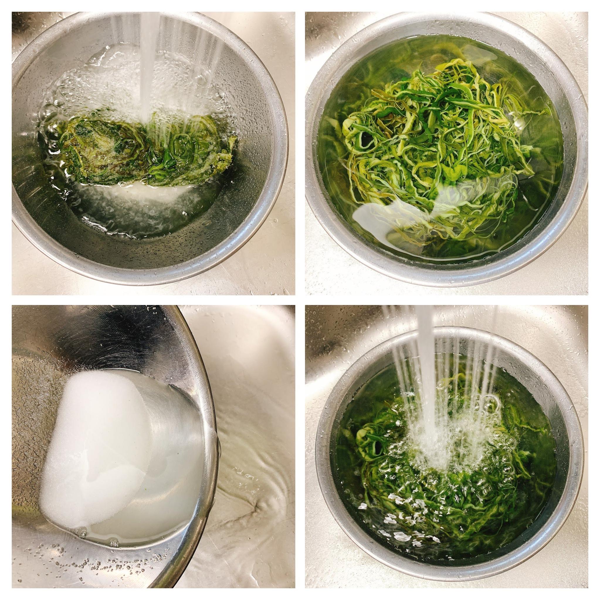 미역줄기에 버무려져있는 소금을 완전히 씻어내고,