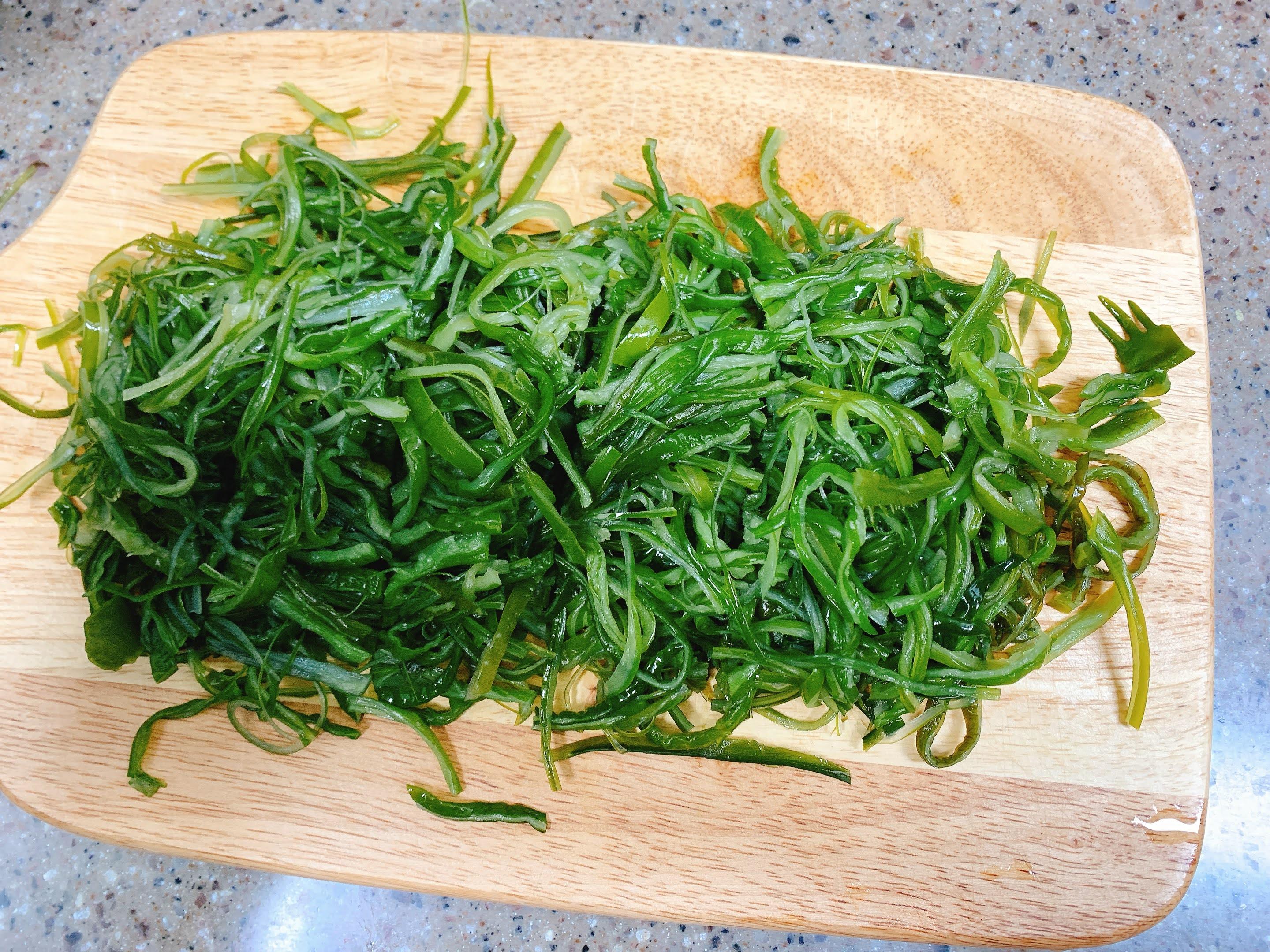 미역줄기가 얇으니 가늘게 채썰어줍니다