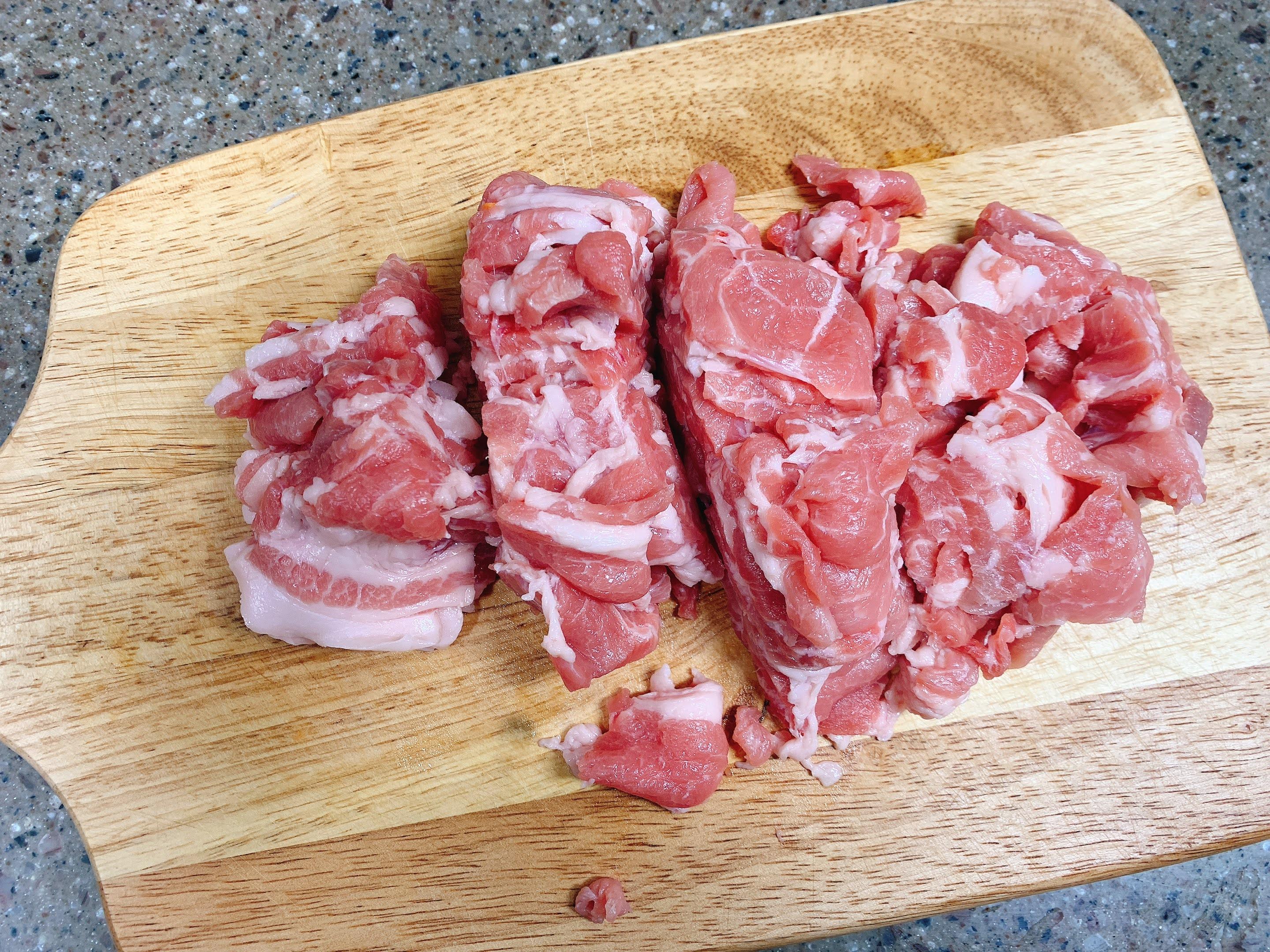 식용유 살짝 두르고, 썰어둔 목살 담고~