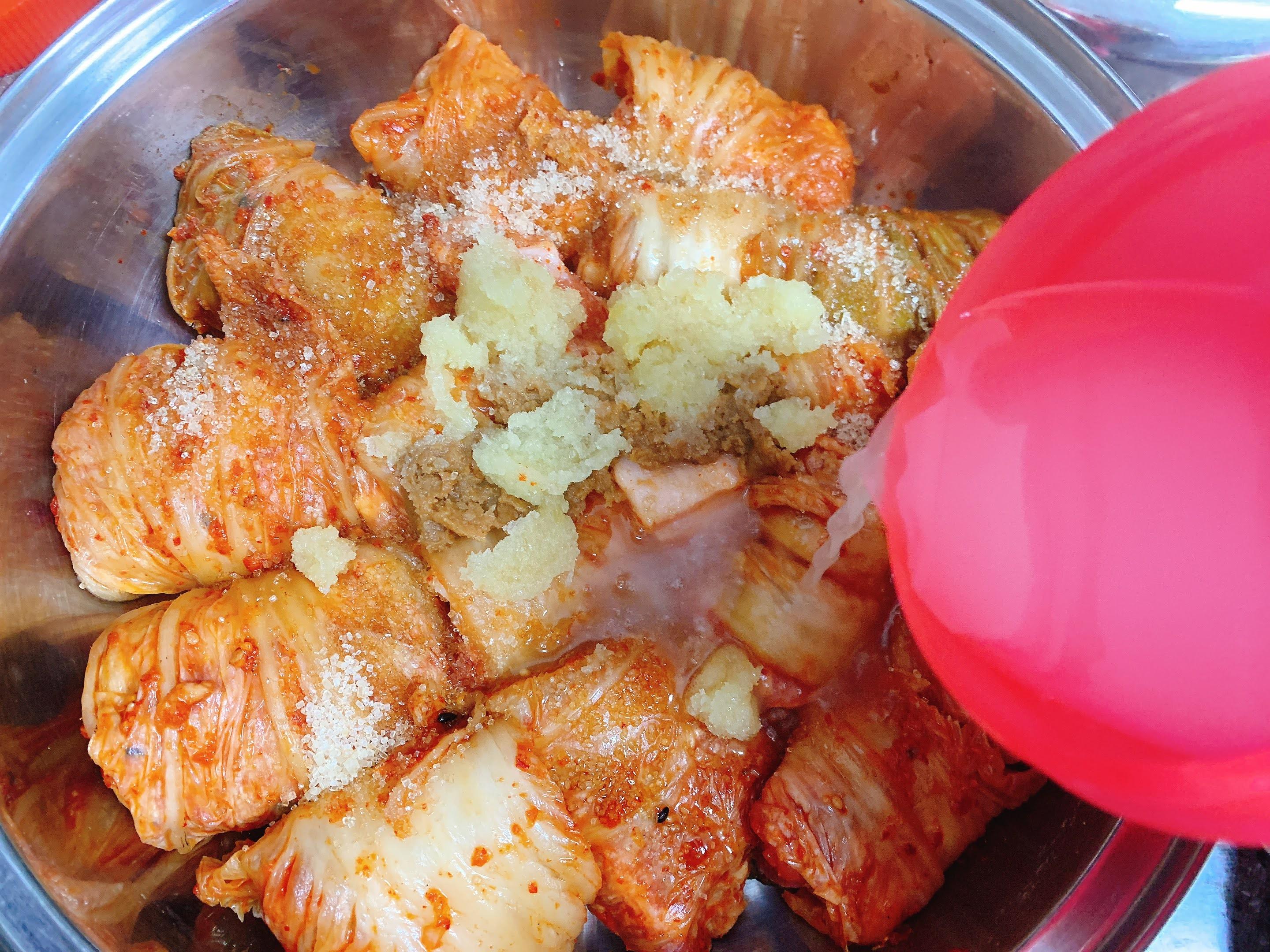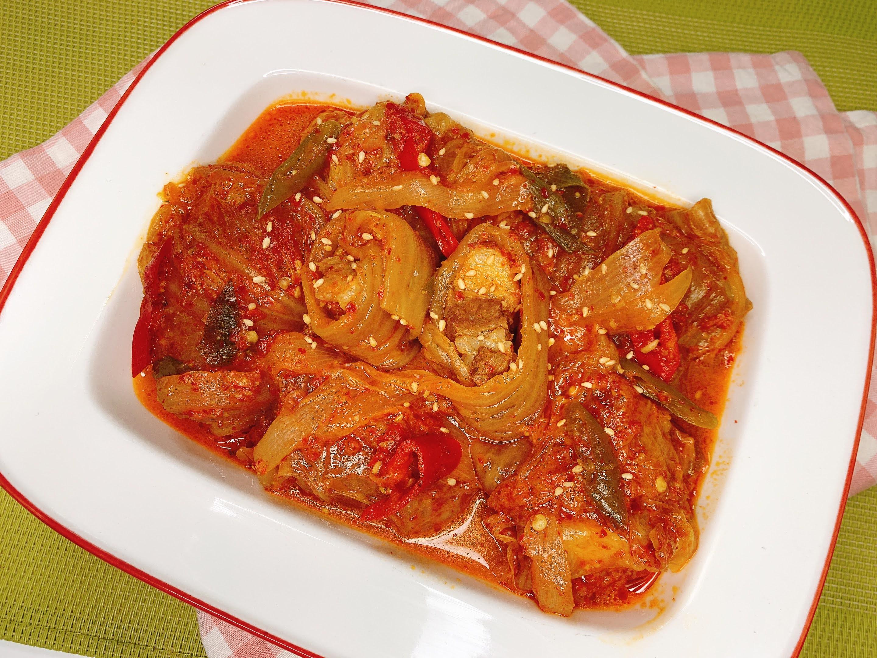김치는 양념이 있으면 찜을 했을때 텁텁하지 않게 걷어내 주었어요
