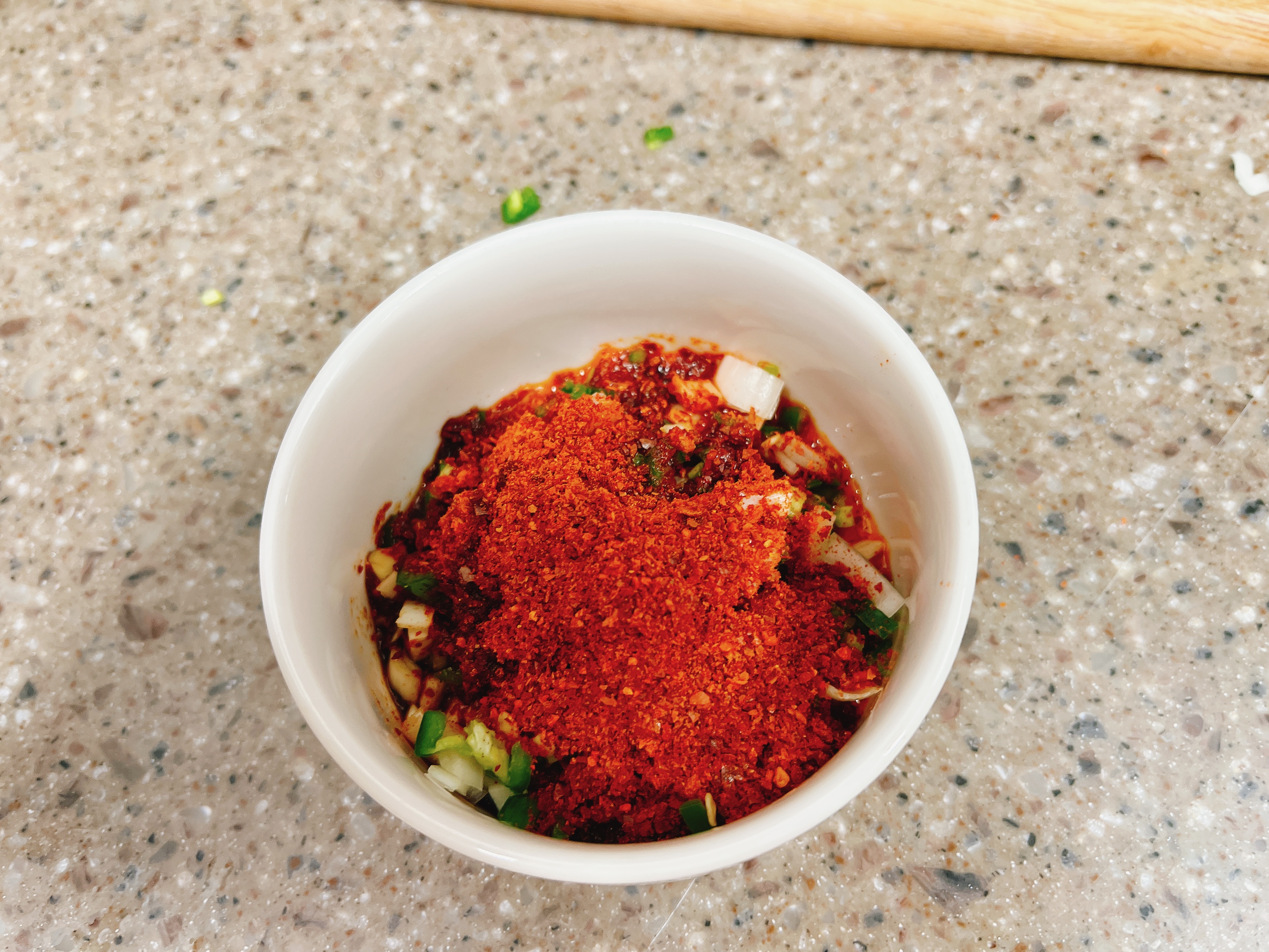 고추가루 1큰술, 진간장 반큰술, 고추기름 1/3큰술