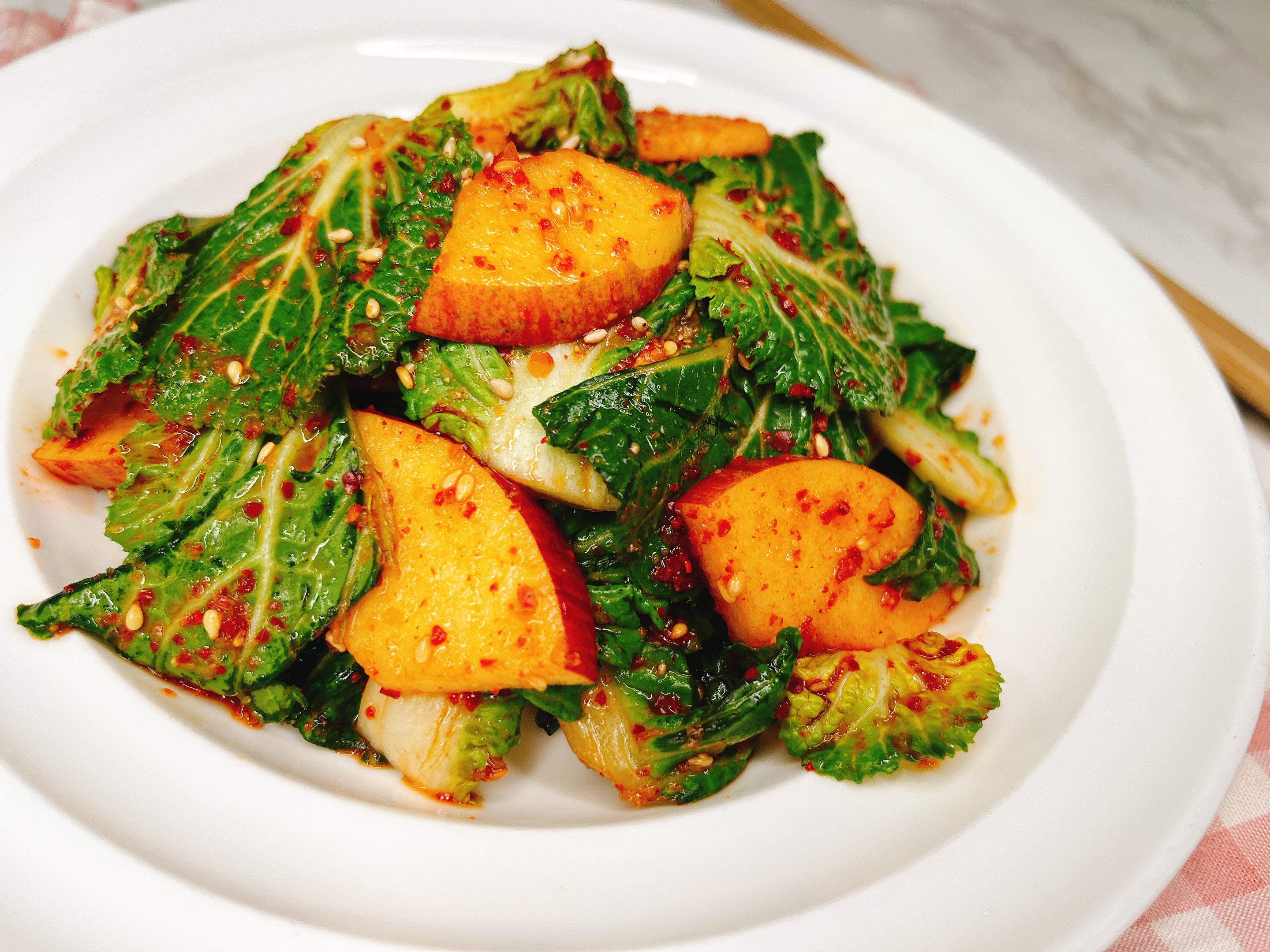생각보다 봄동 단맛이 약해서... 사과를 넣어