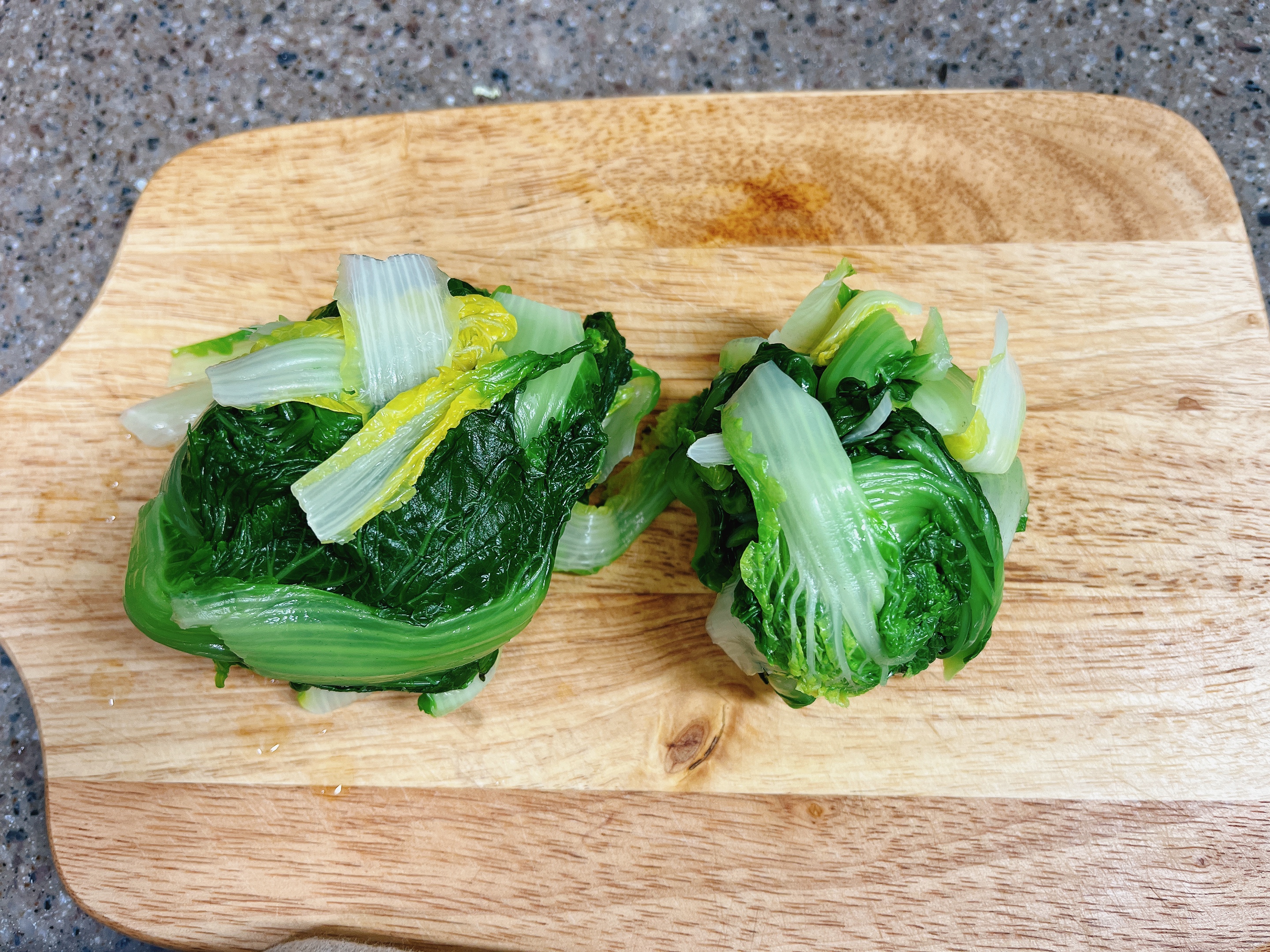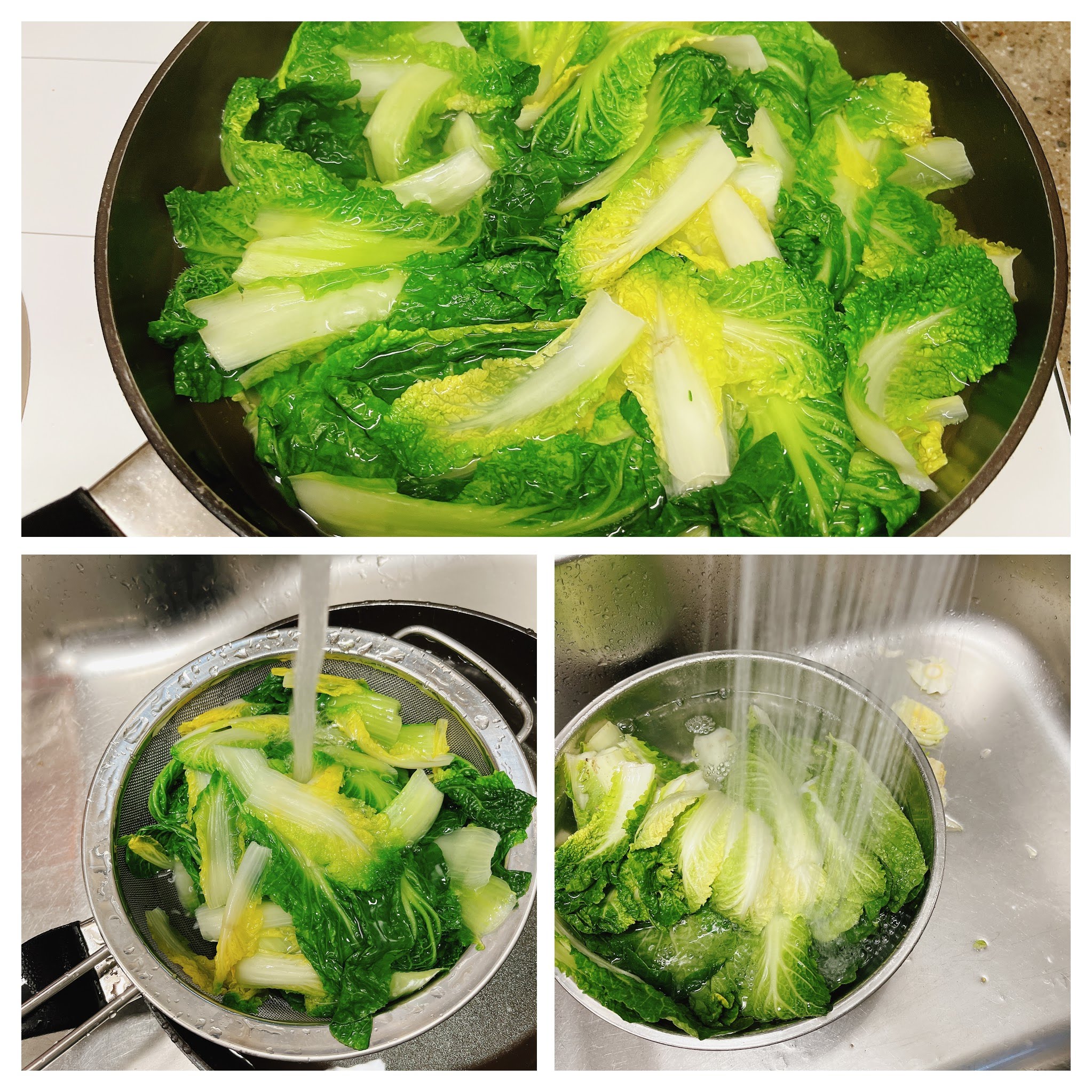 끓는 물에 소금친후 1분~ 2분간 데친다음