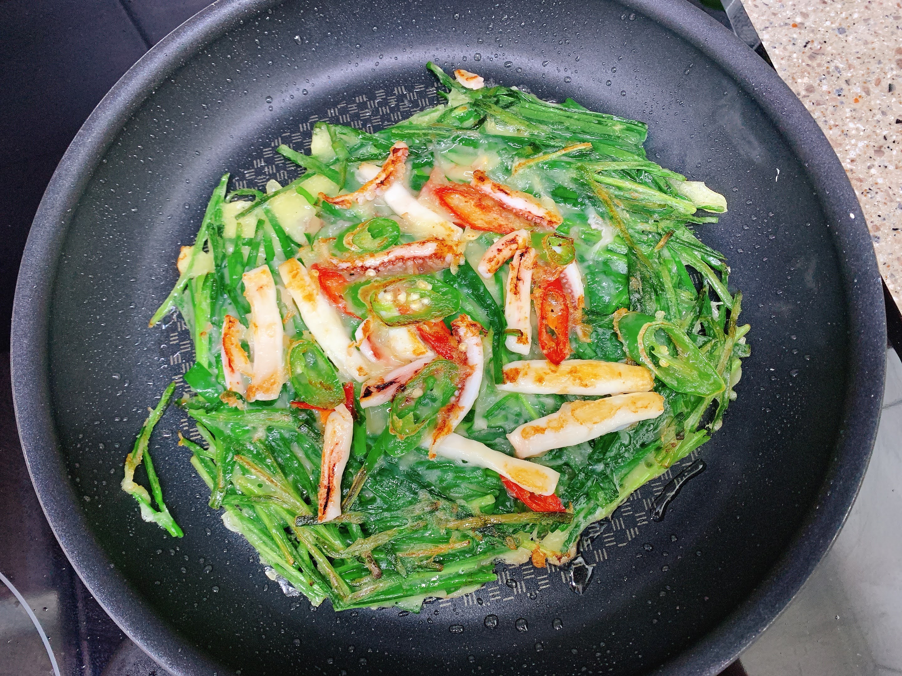 뒤집어서 오징어(해물)이 익을때까지 지져줍니다