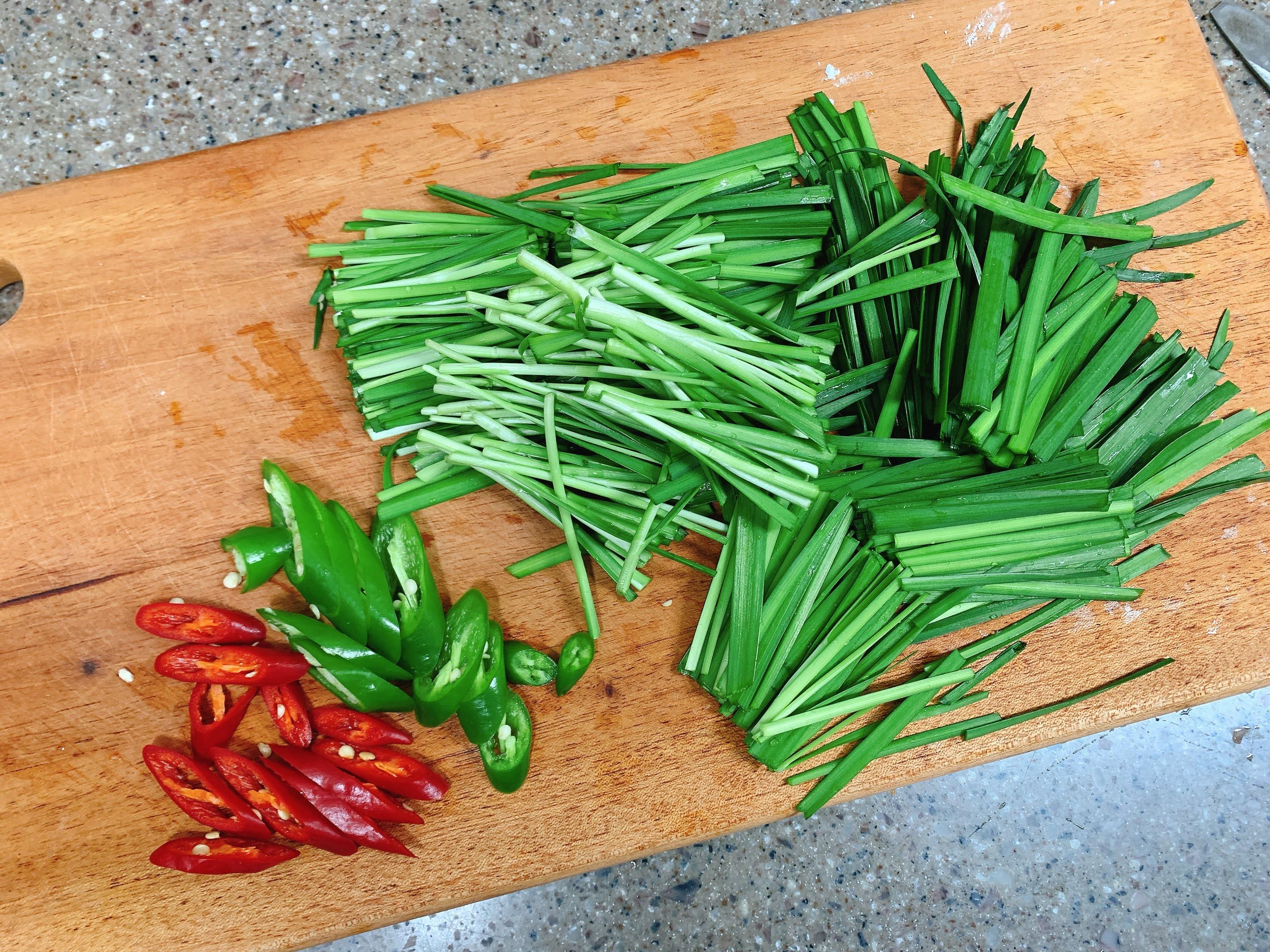 부추는 너무 길면 먹기 불편하니 7~8센티 길이로 썰었구요