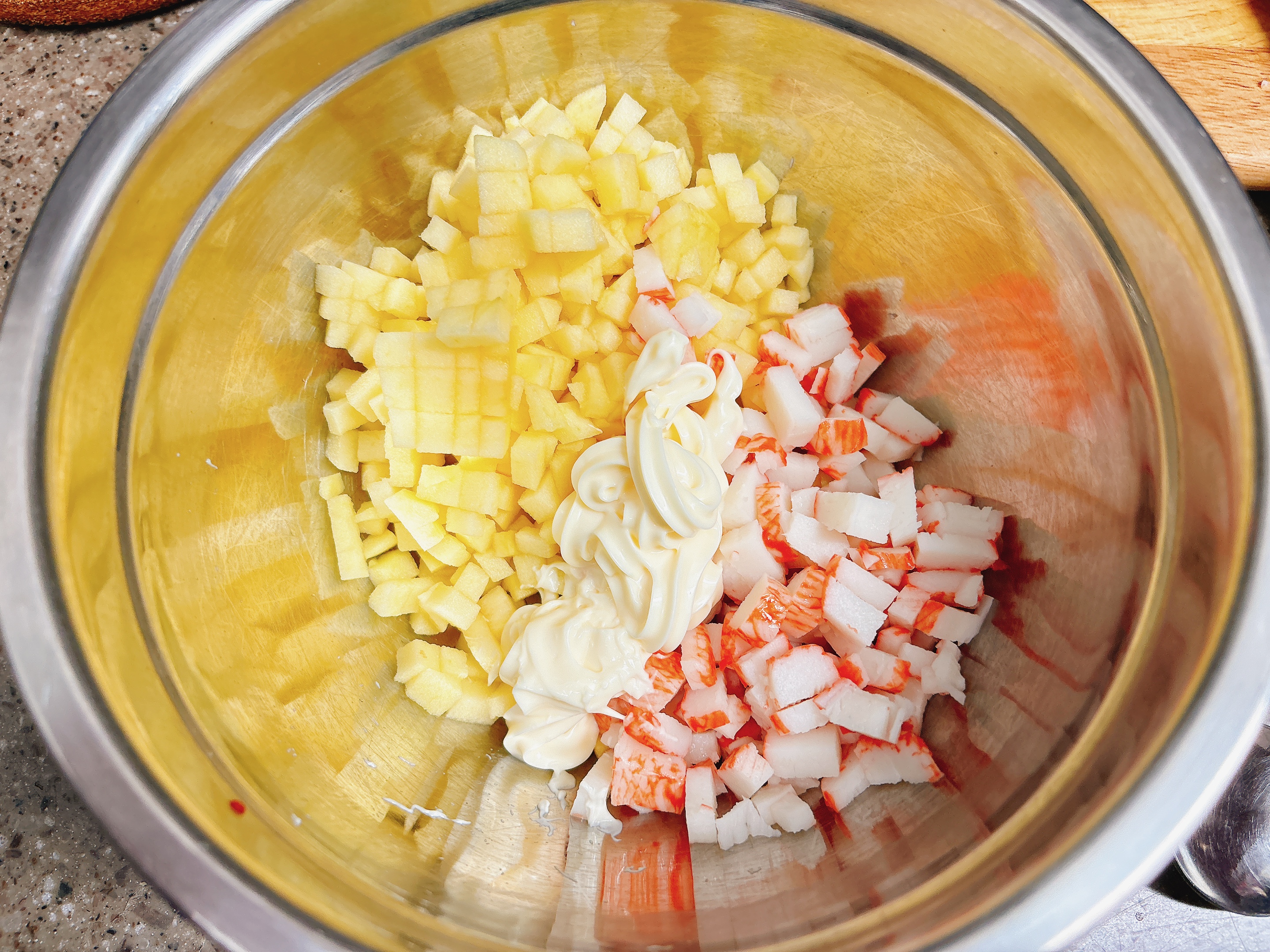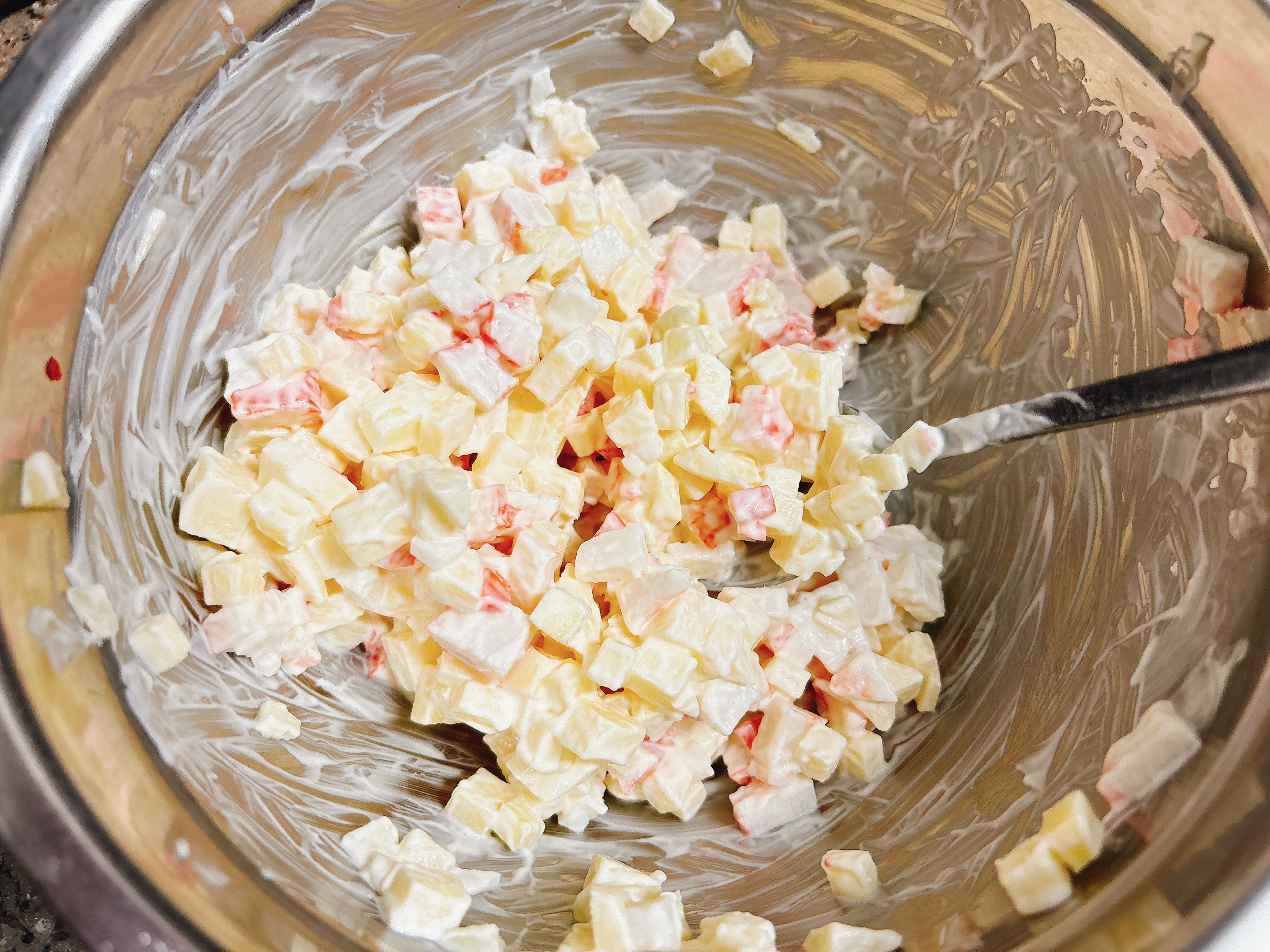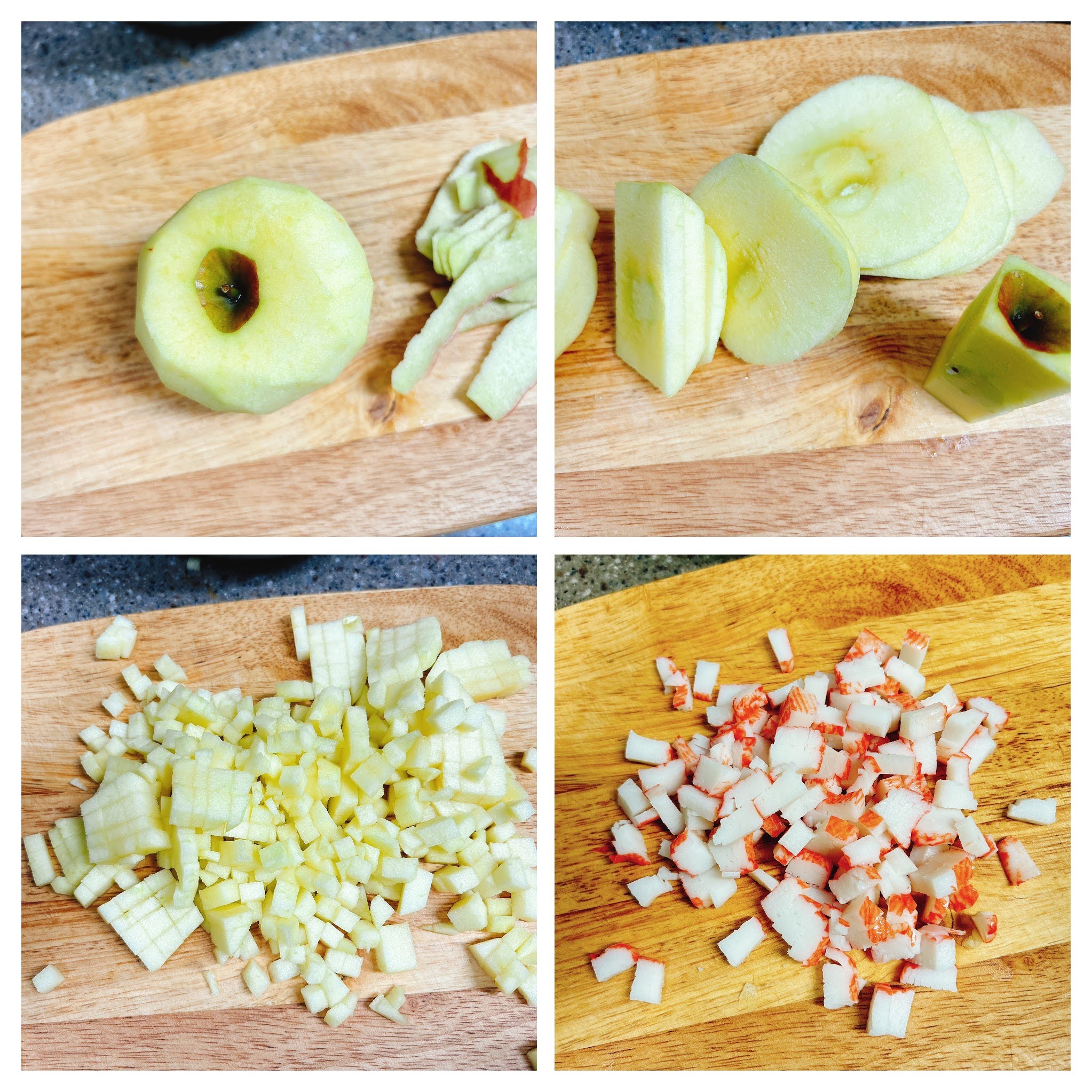 그위에 마요네즈 버무린 사과크래미를