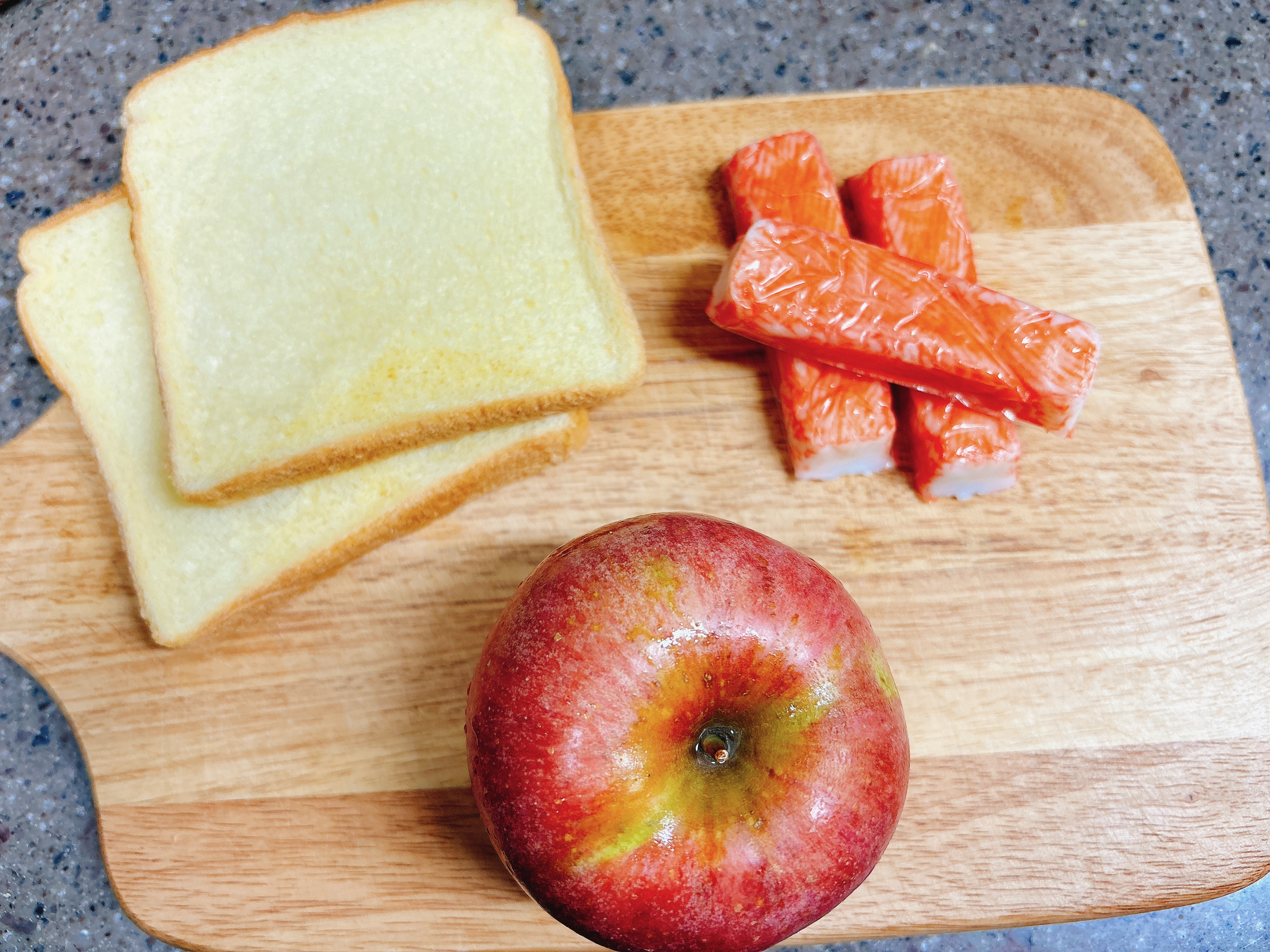 사과, 크래미 , 식빵을 준비했어요