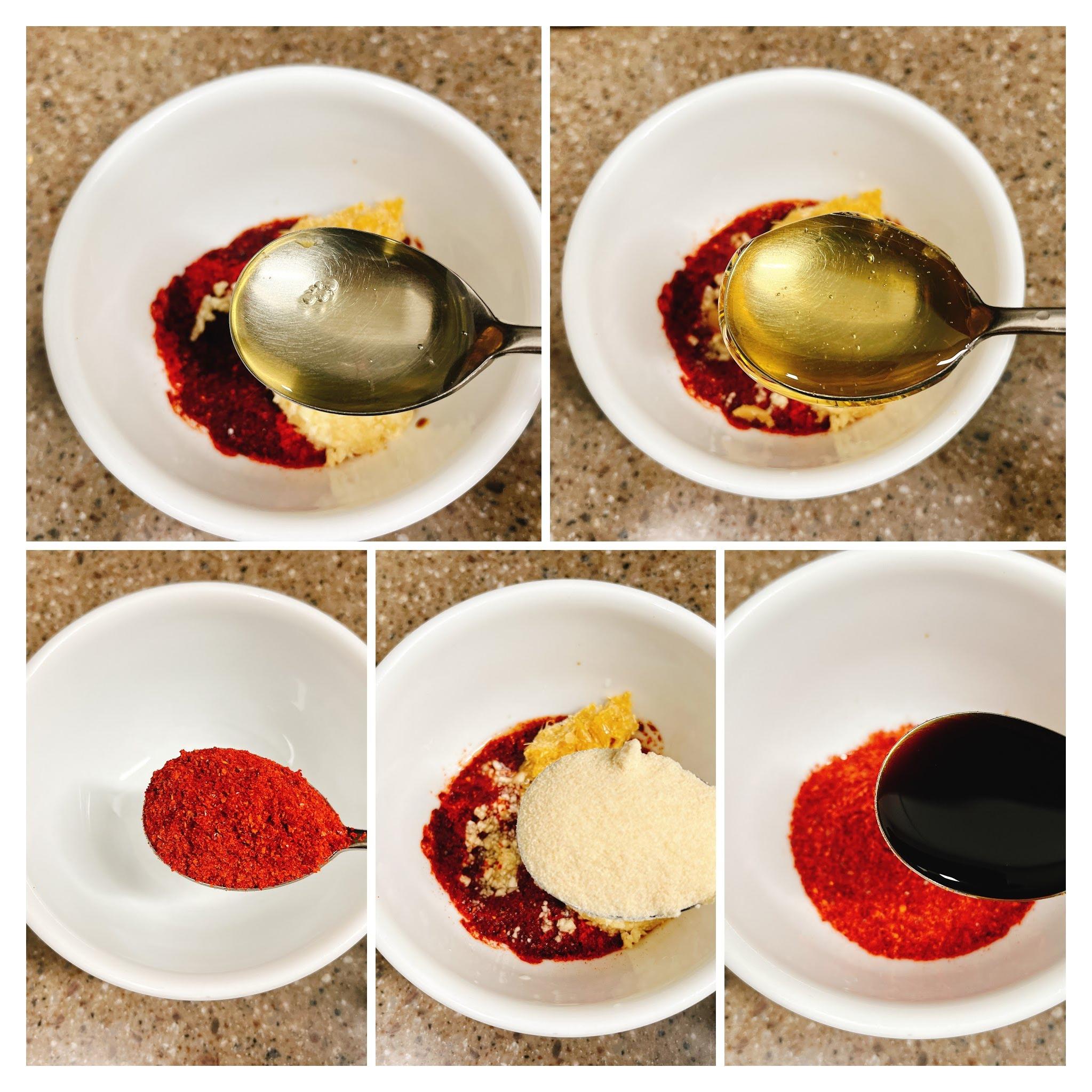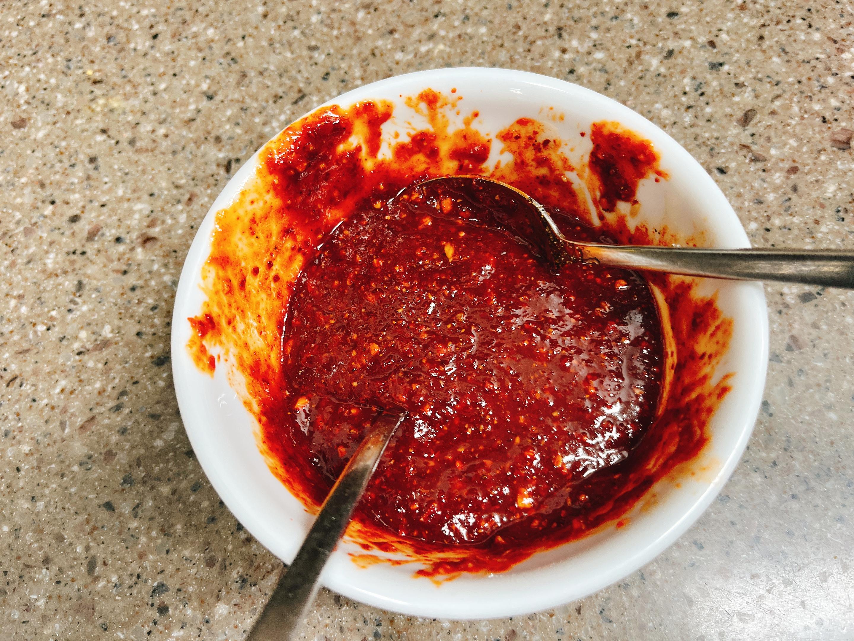 고추장 3스푼, 고추가루 2스푼, 간장 2스푼