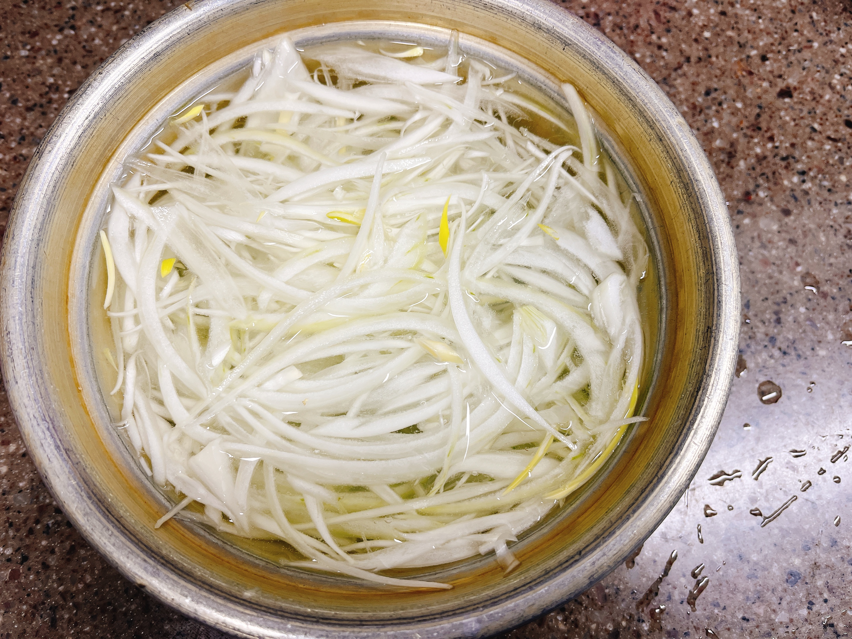 얇게 채썰어 찬물에 담궈뒀어요