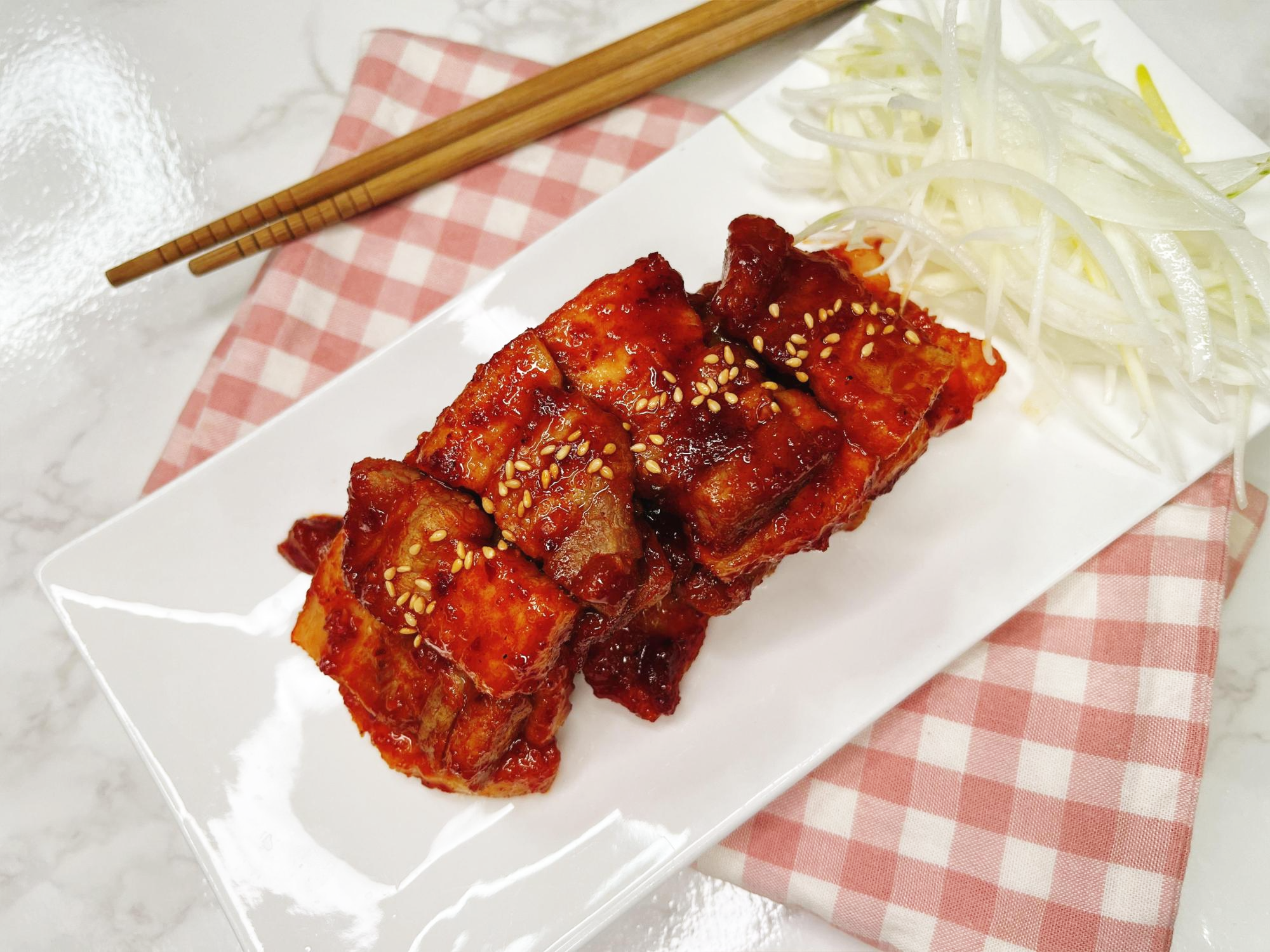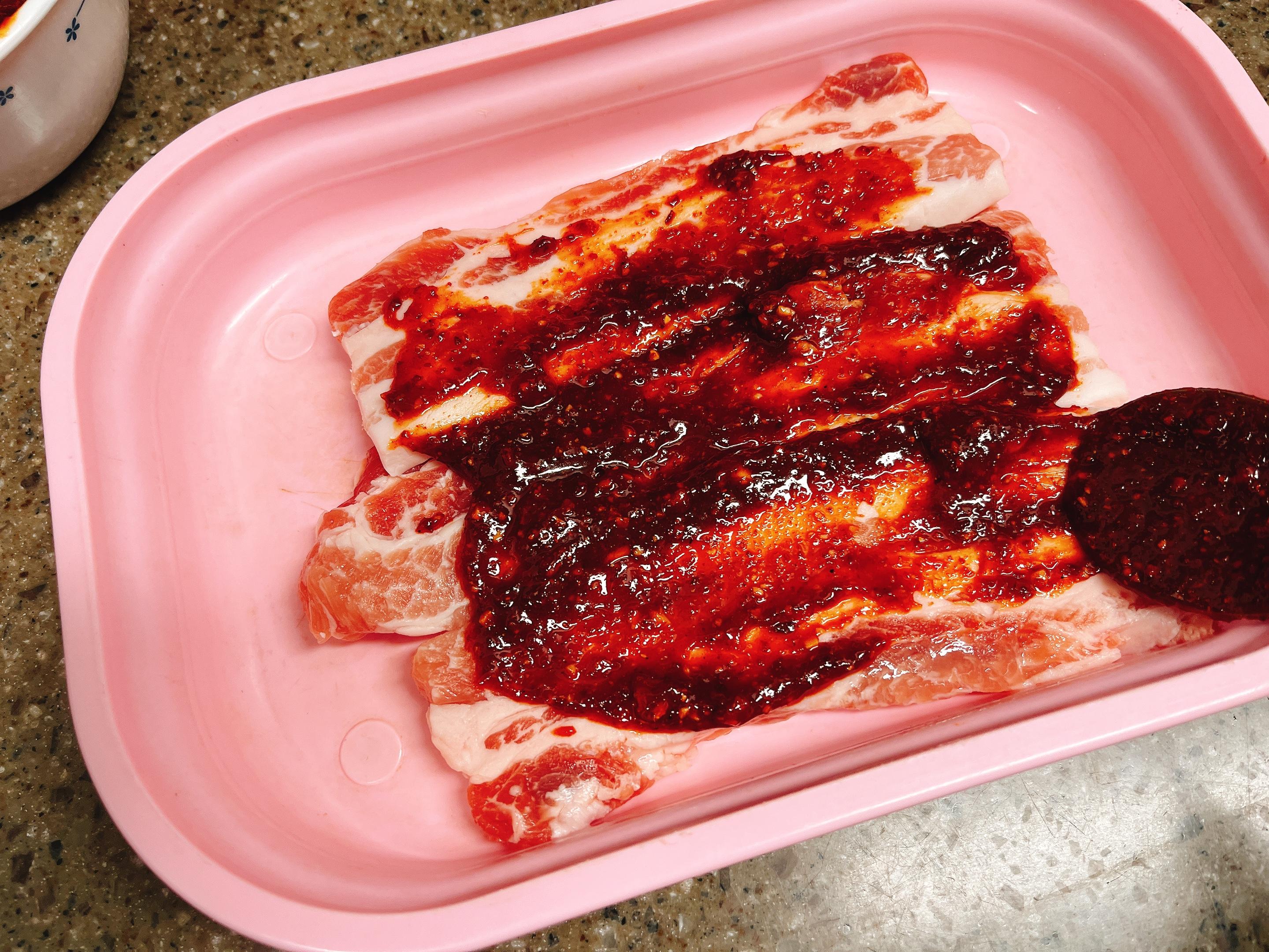 삼겹살에 만든 고추장양념을