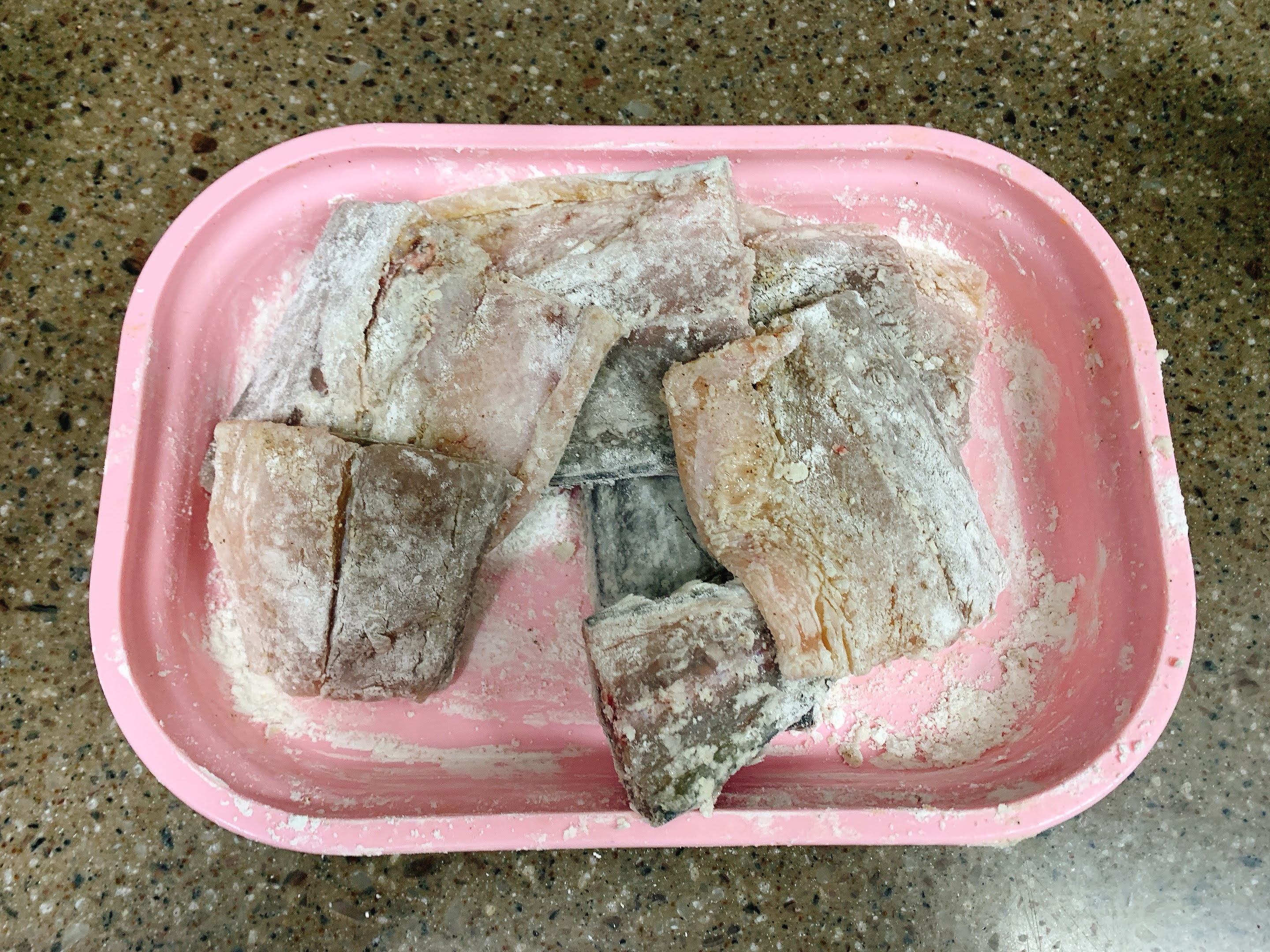 뼈가 있어 두툼한 쪽은 X자로 칼집을 내서
