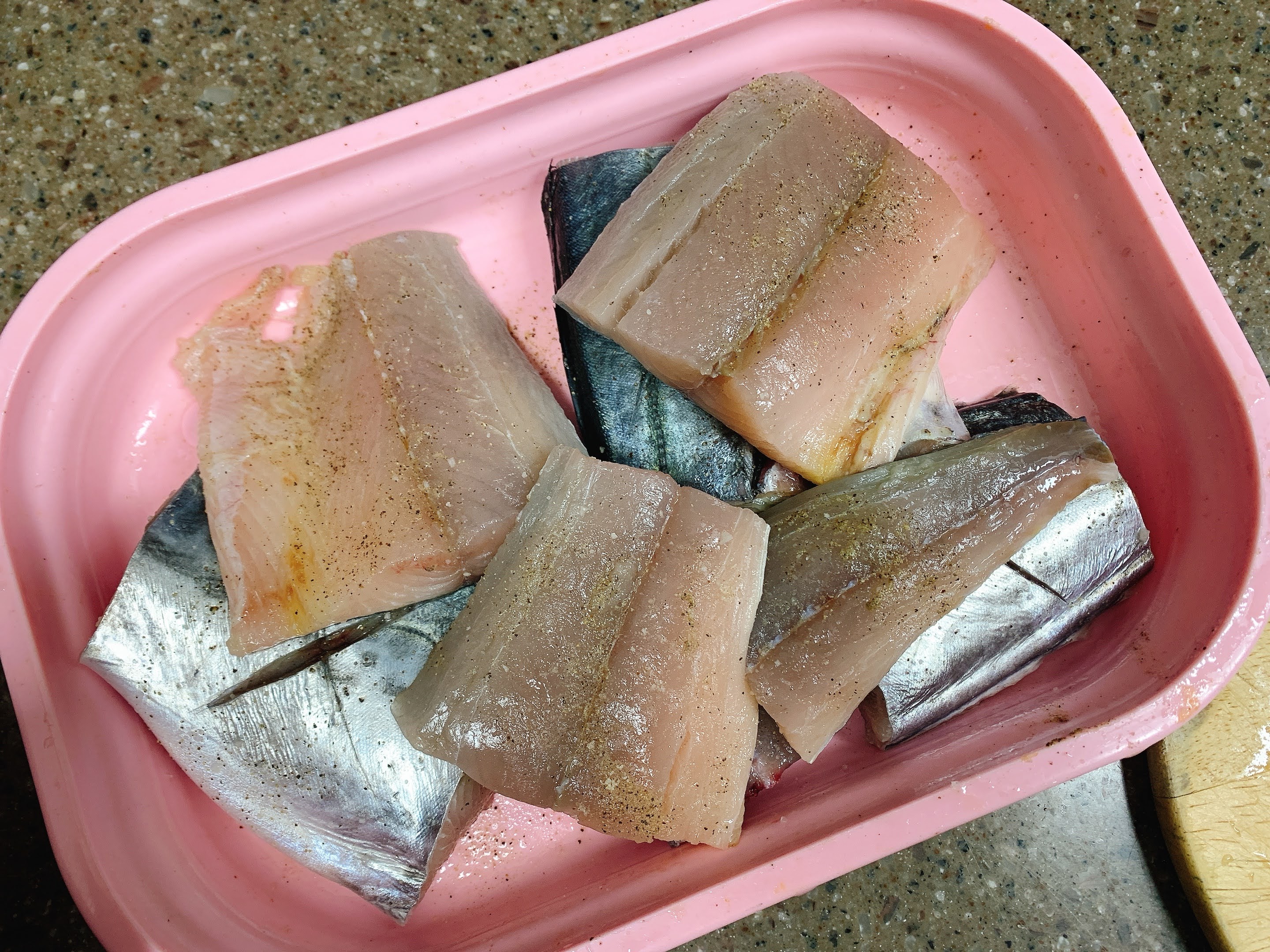 구워진 삼치는 다른그릇에 잠시 옮겨두고,