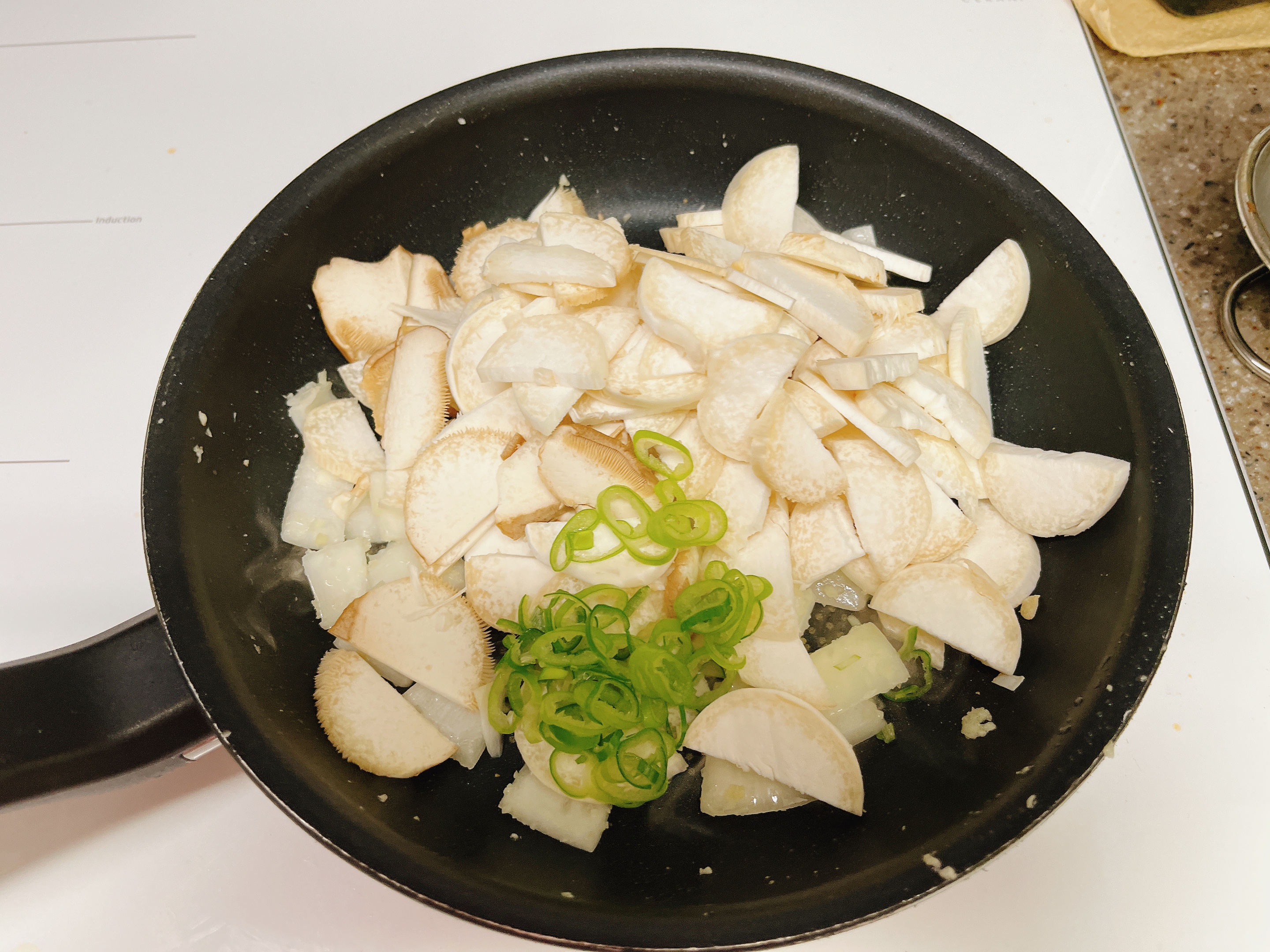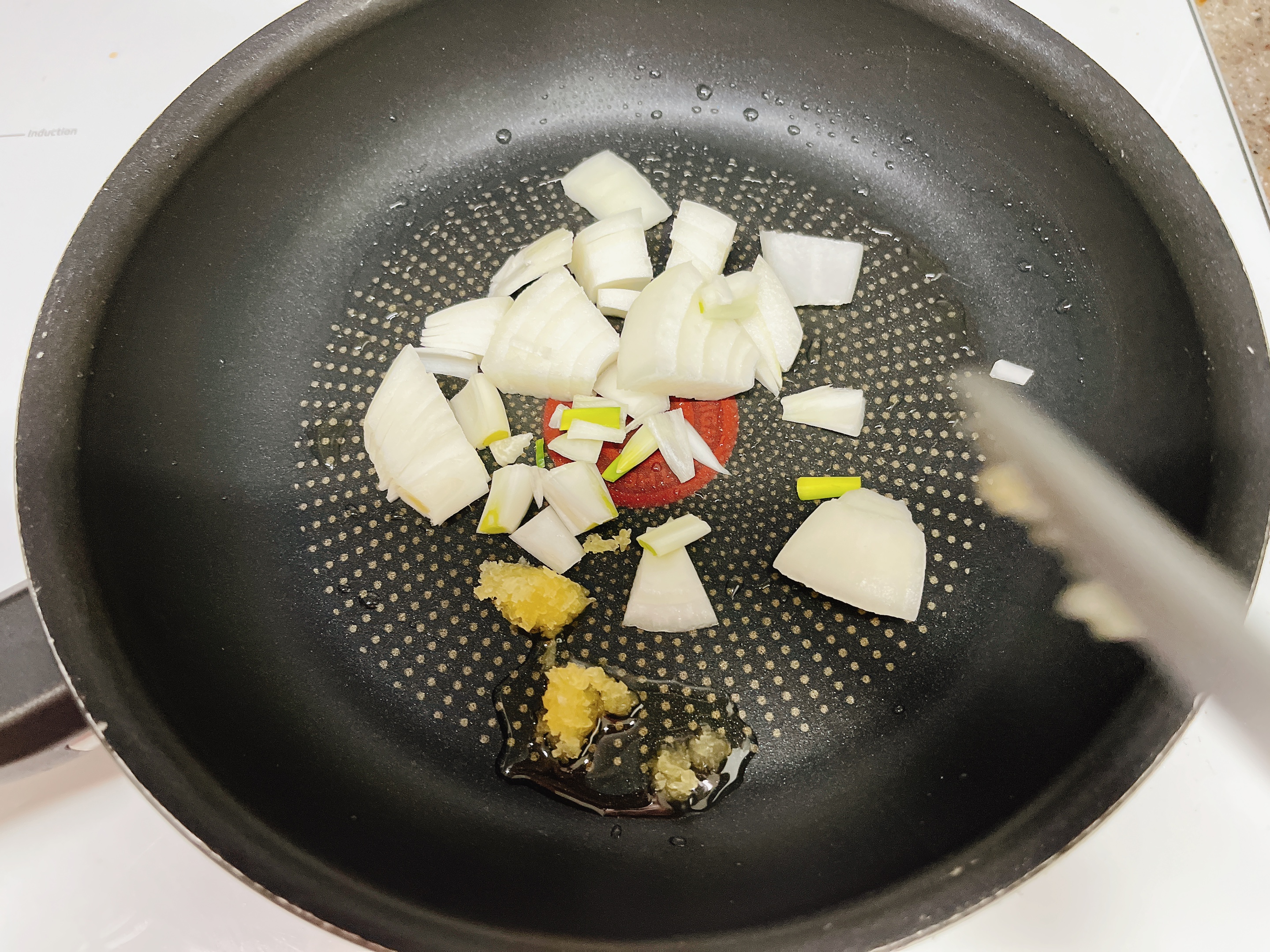 양파는 직사각형 모양으로 썰고, 대파는 얇게 채썰었어요