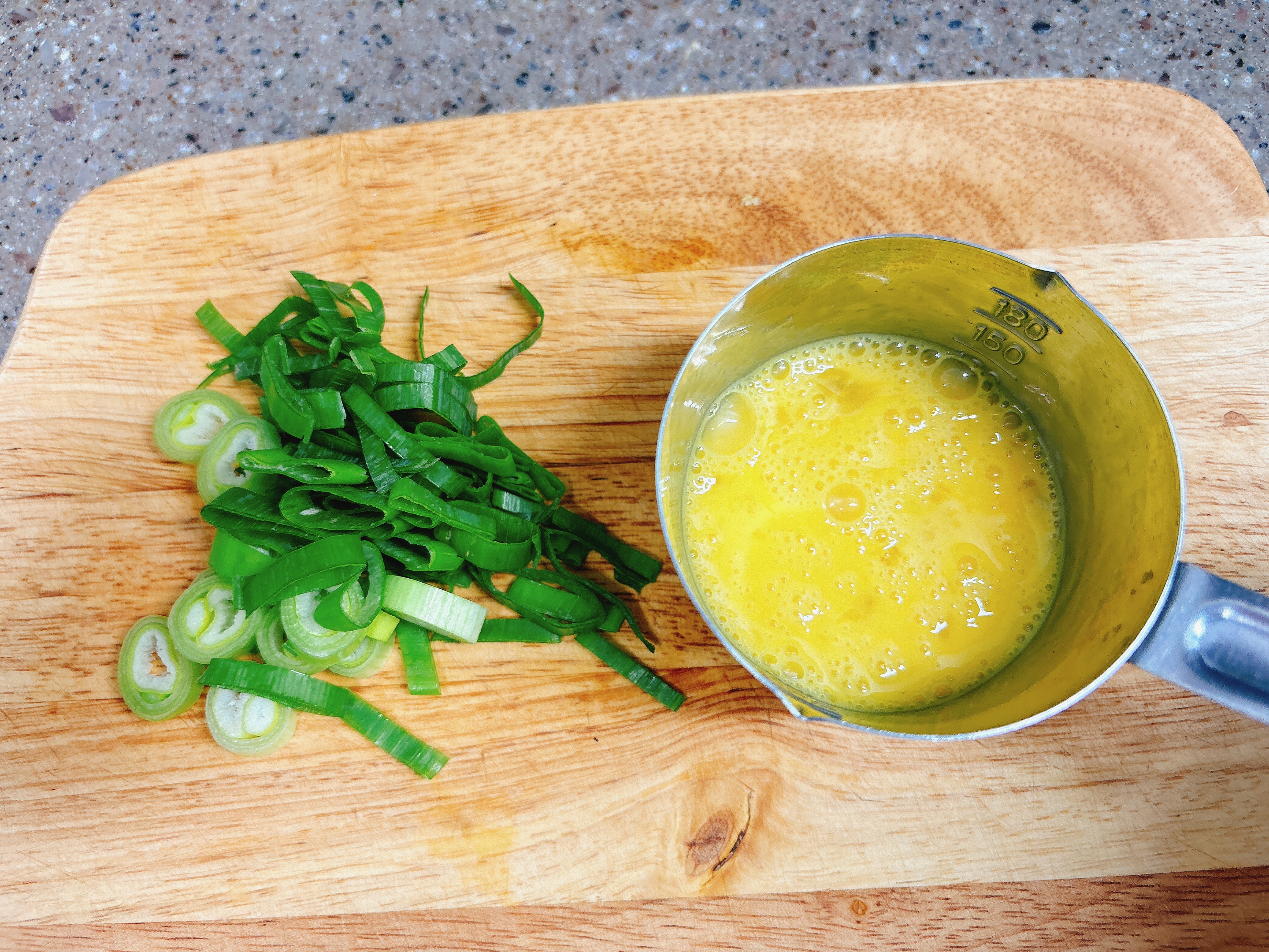 대파를 썰고, 계란을 풀어요