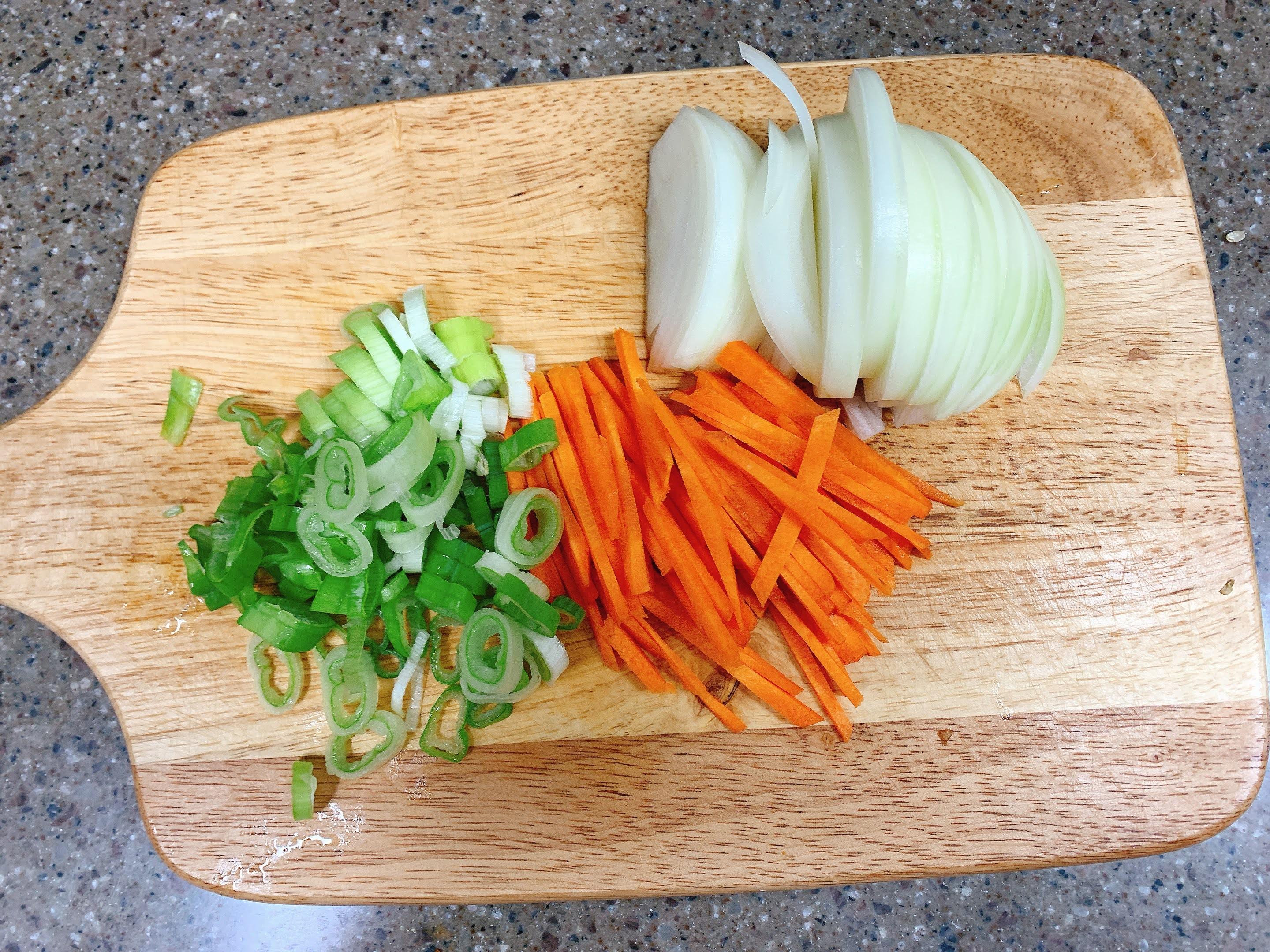 당근, 양파는 채썰었고, 대파는 쫑쫑 썰어주었어요