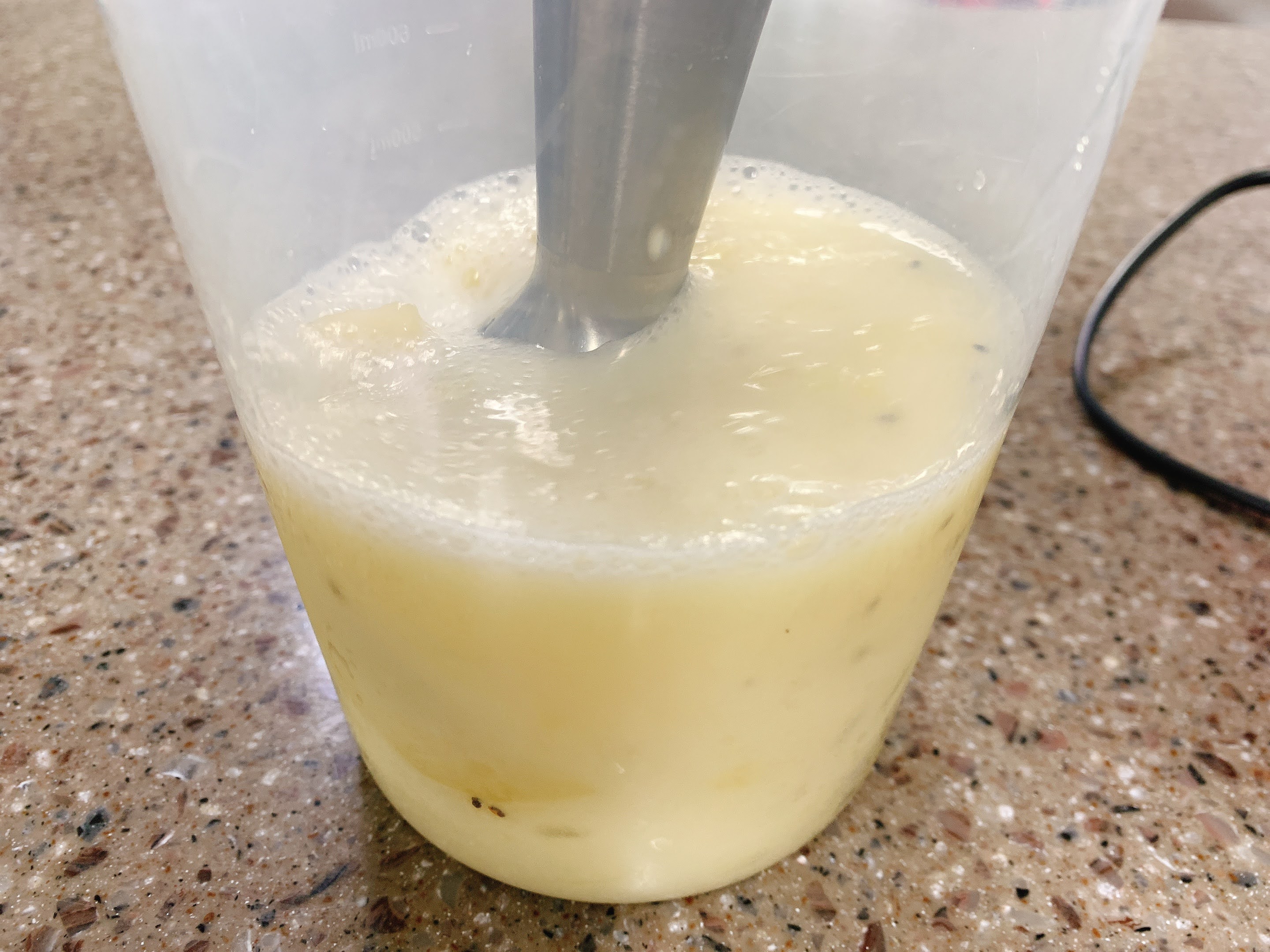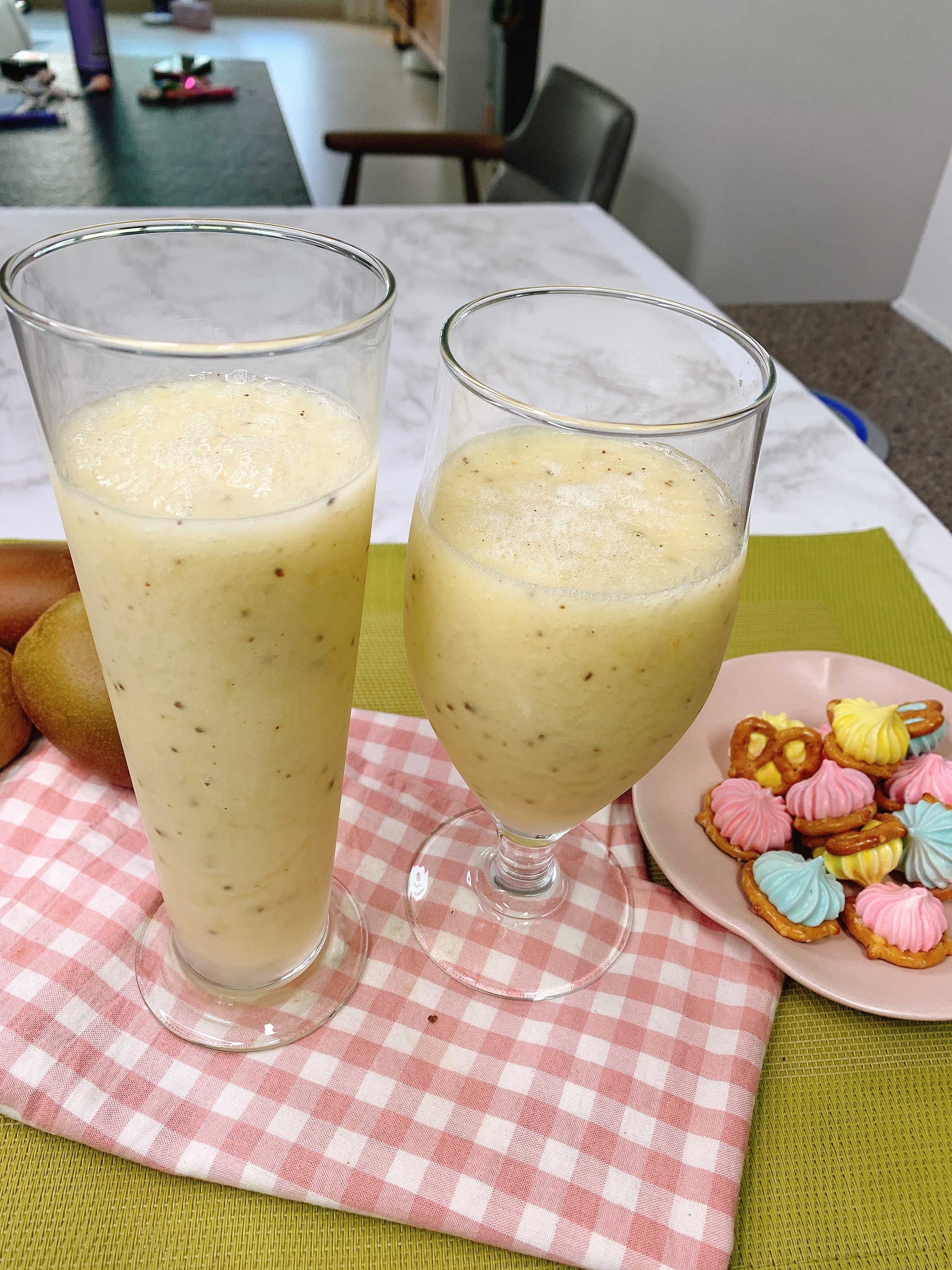 껍질벗긴 골드키위 1.5개 분량을 담고,