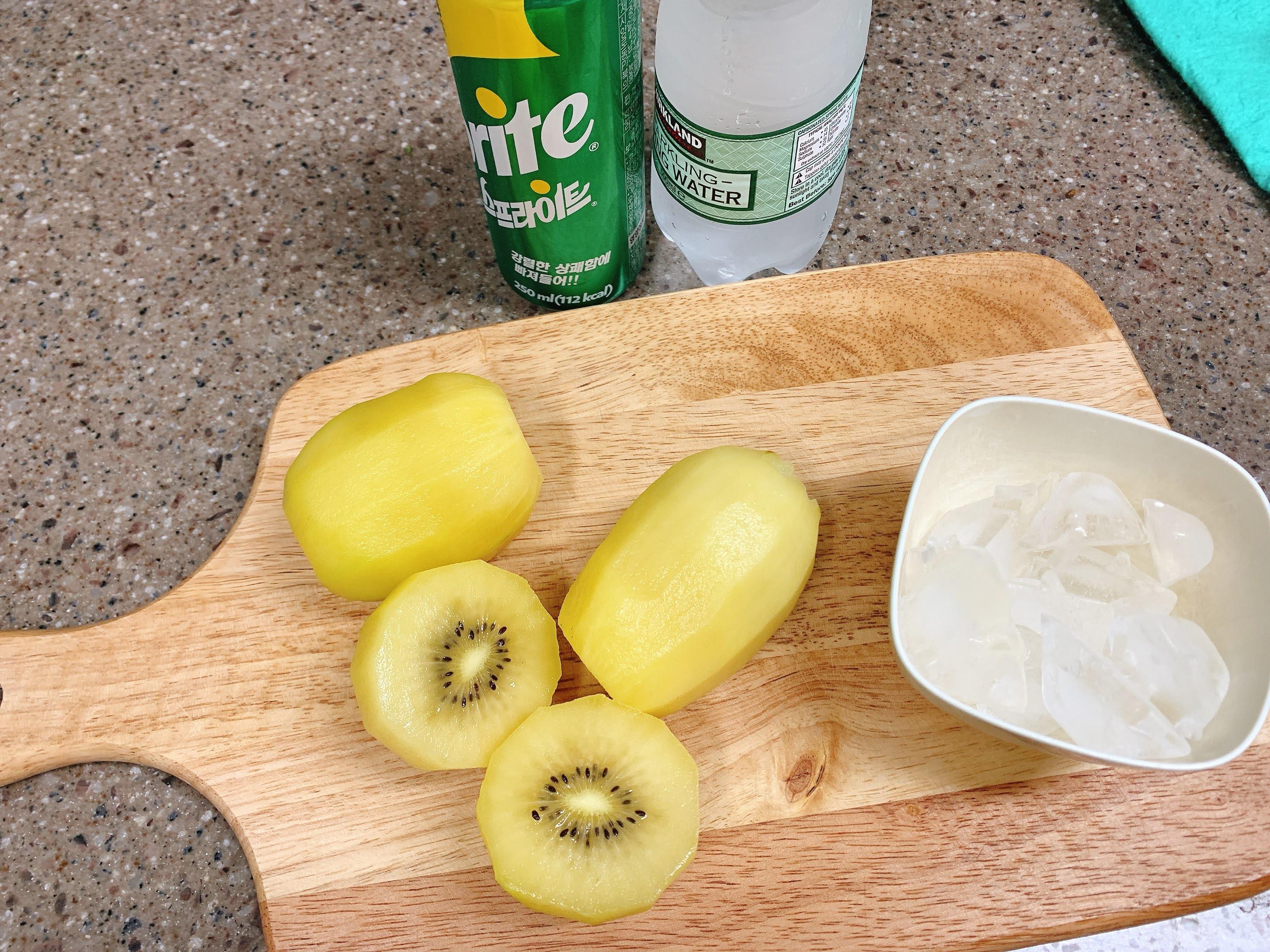 골드키위 3개를 껍질을 벗겨 준비하고,