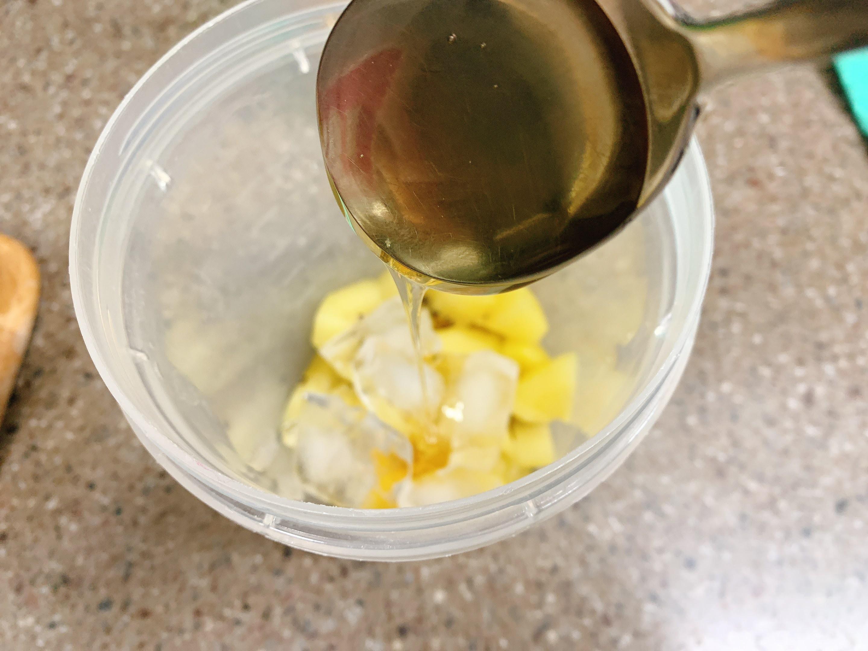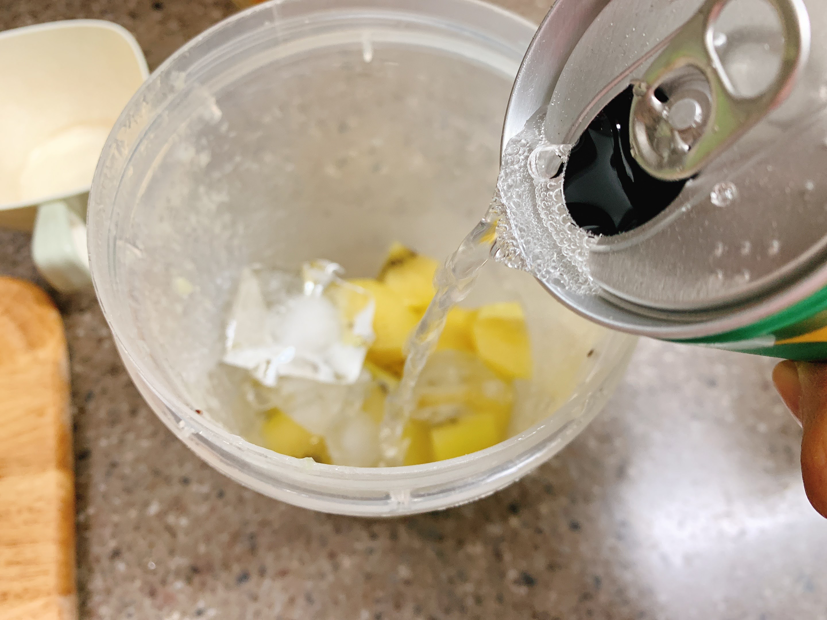 탄산수 120ml정도 + 각얼음 5개 + 꿀 1큰술