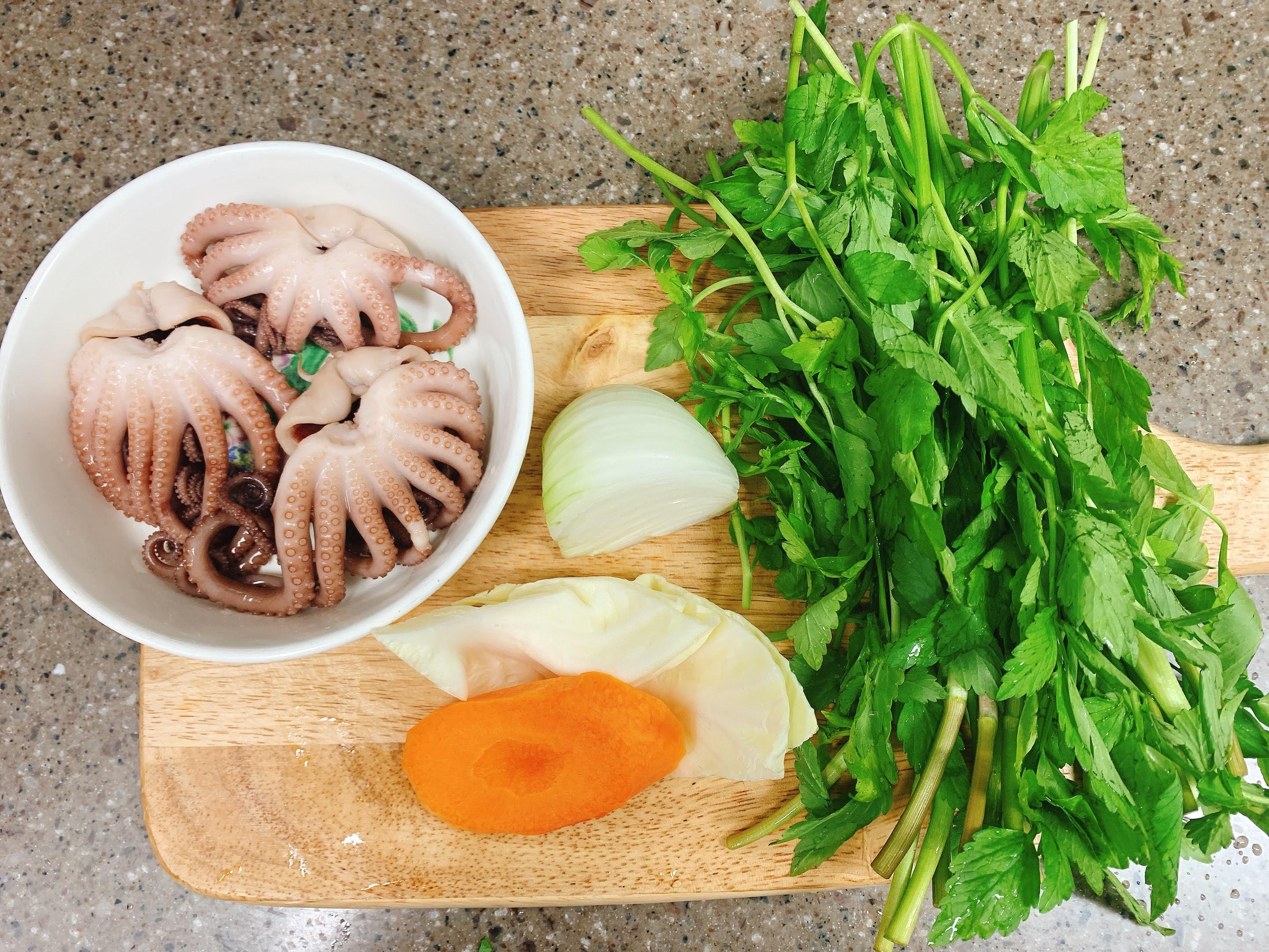 데친낙지, 양파, 당근, 양배추도 챙겼어요