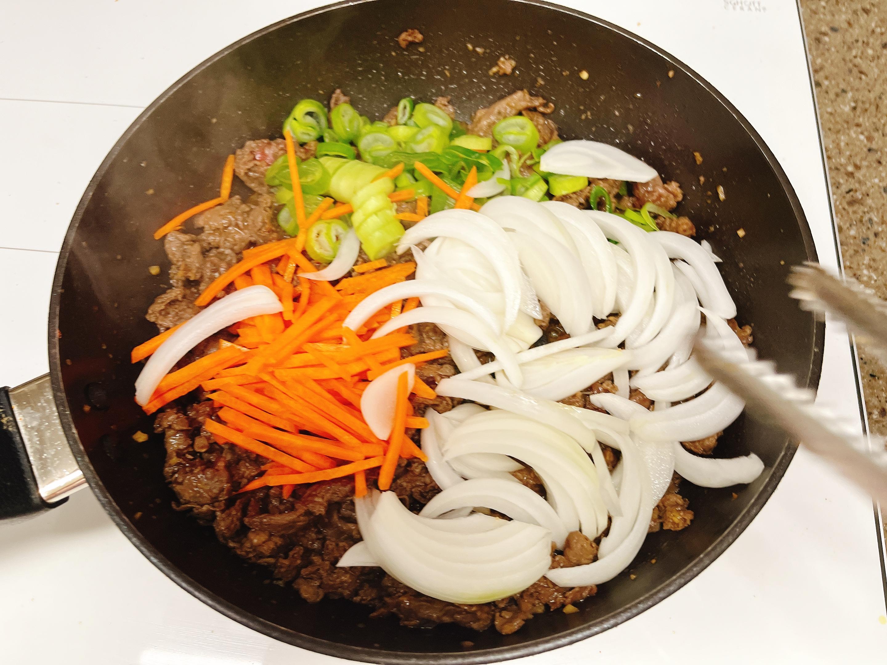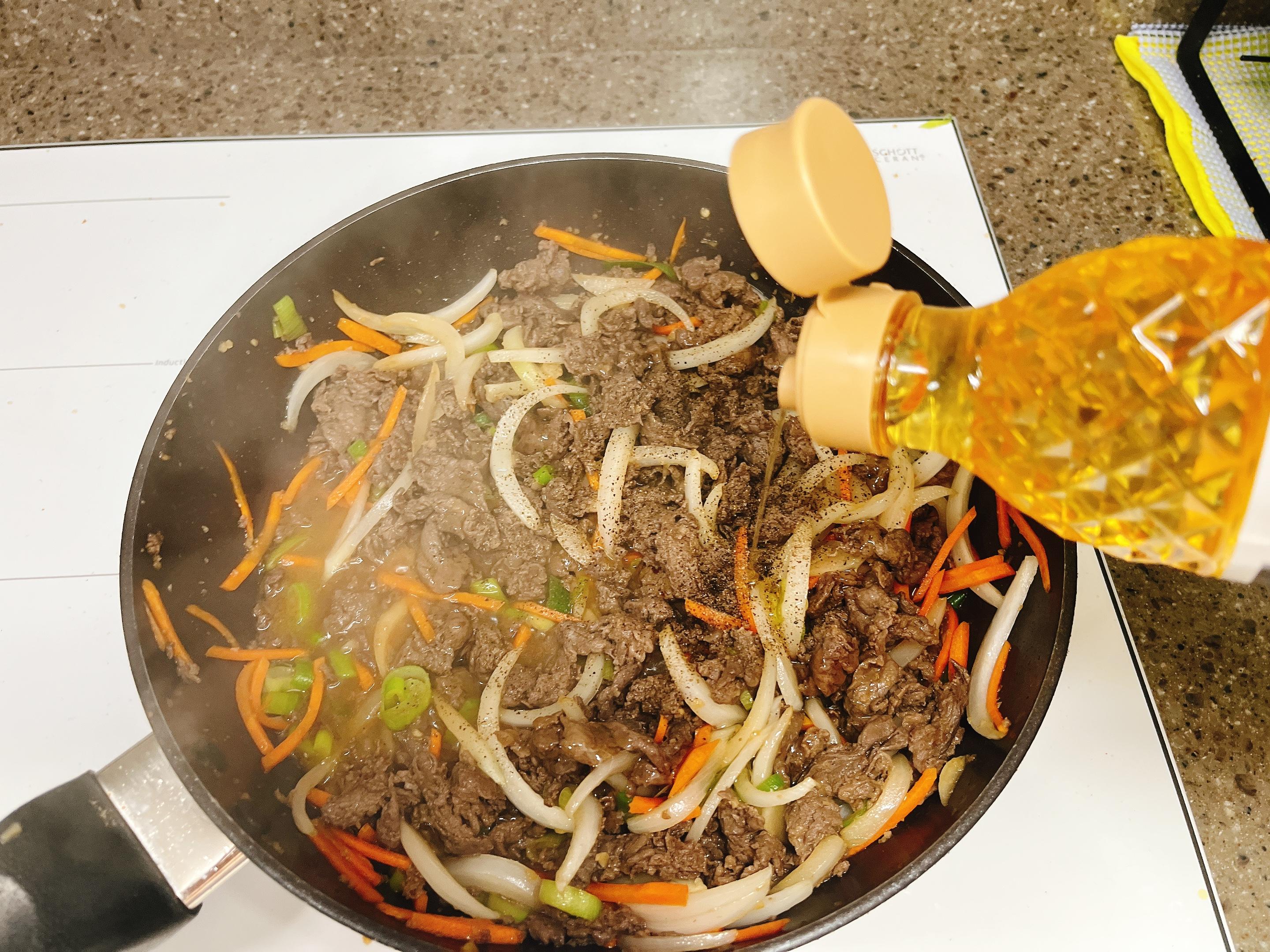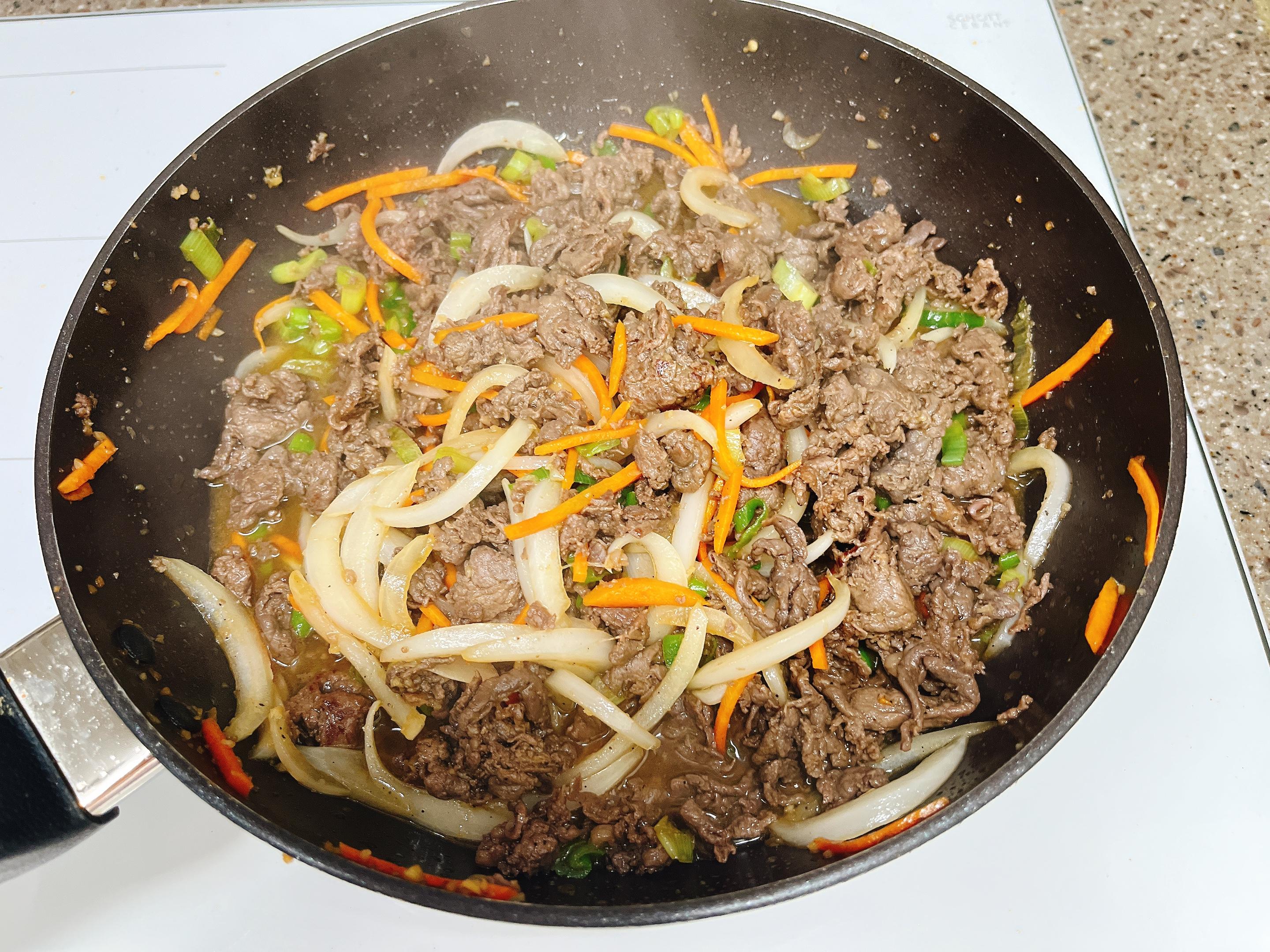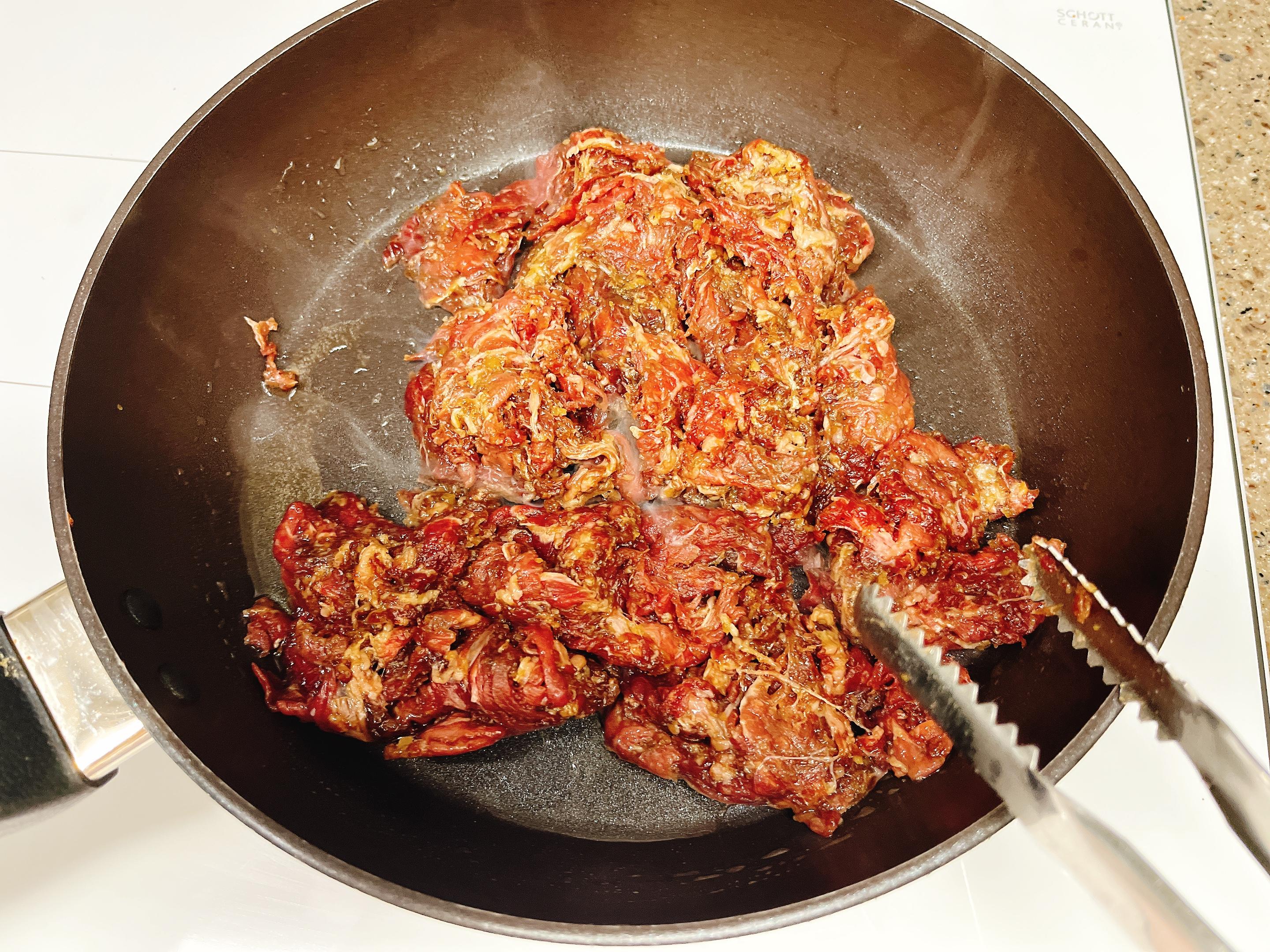 3. 재워둔 소고기를 볶아요