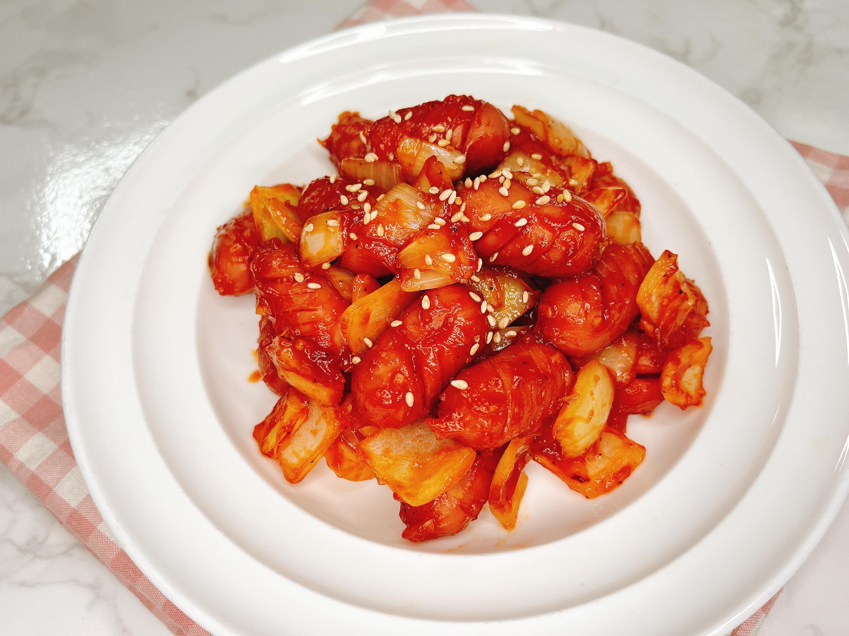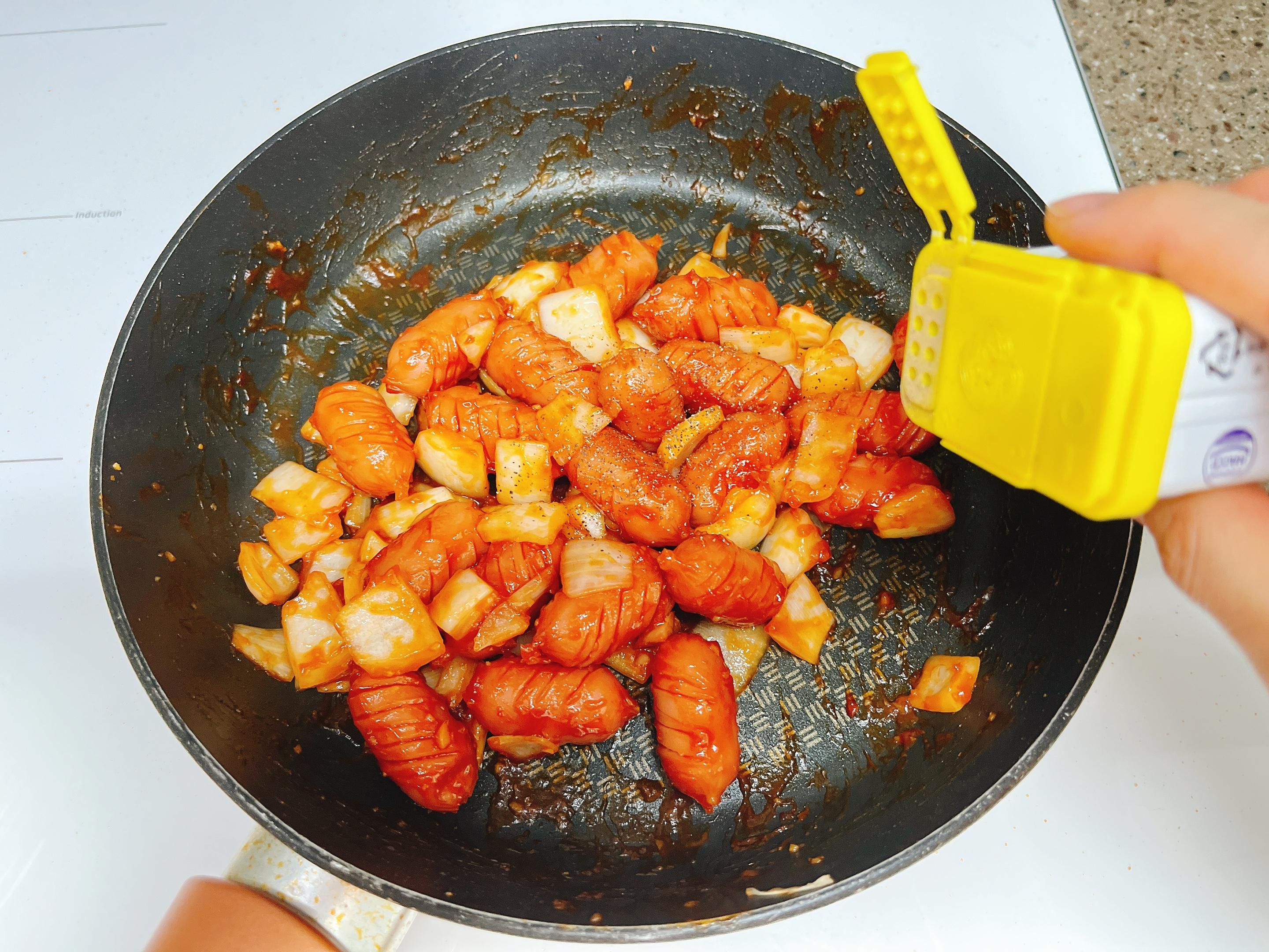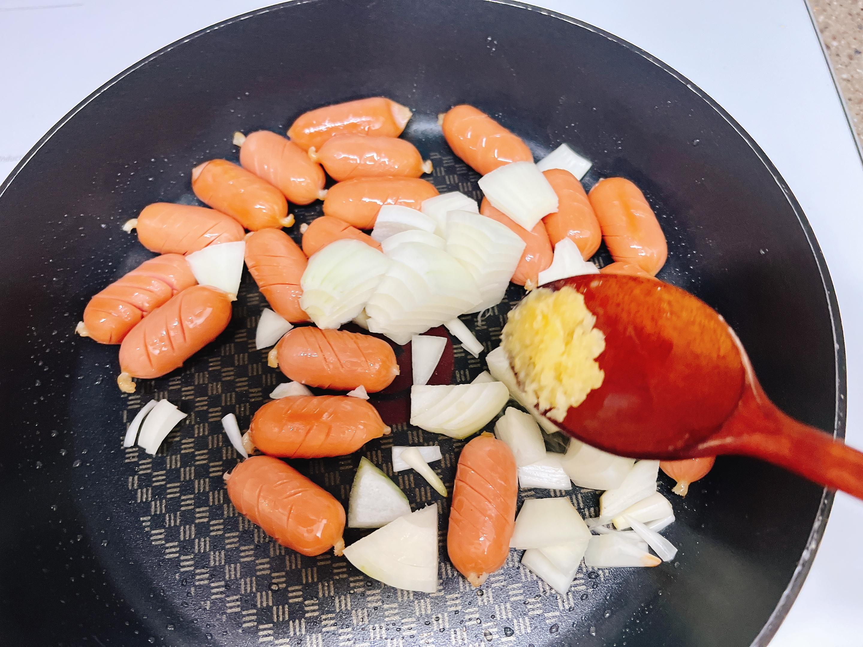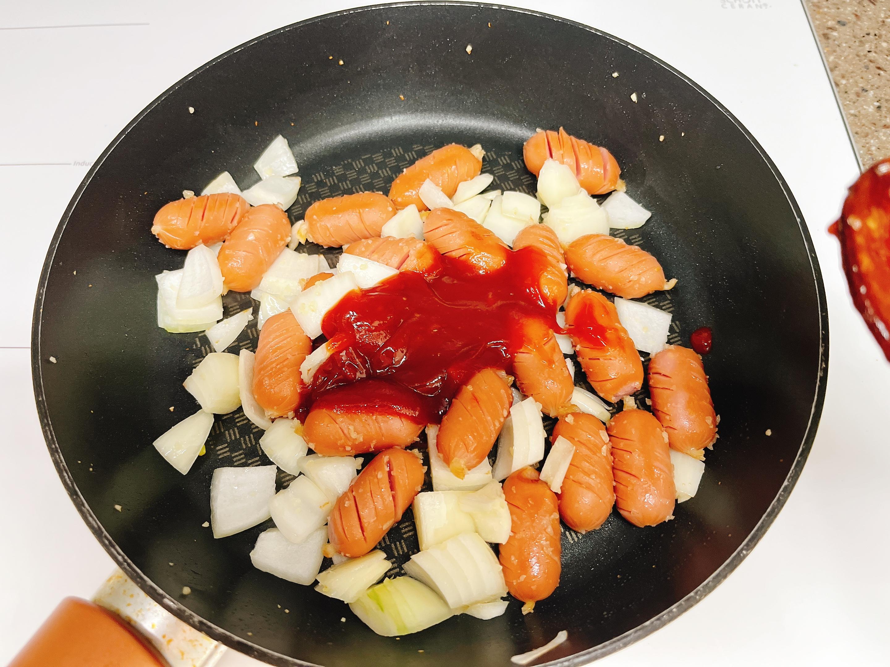 소시지를 먼저 넣고 가볍게 볶다가