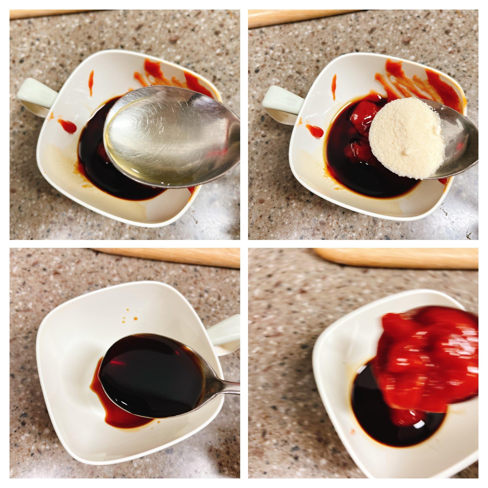 케첩 3스푼, 간장 1스푼, 설탕 반스푼