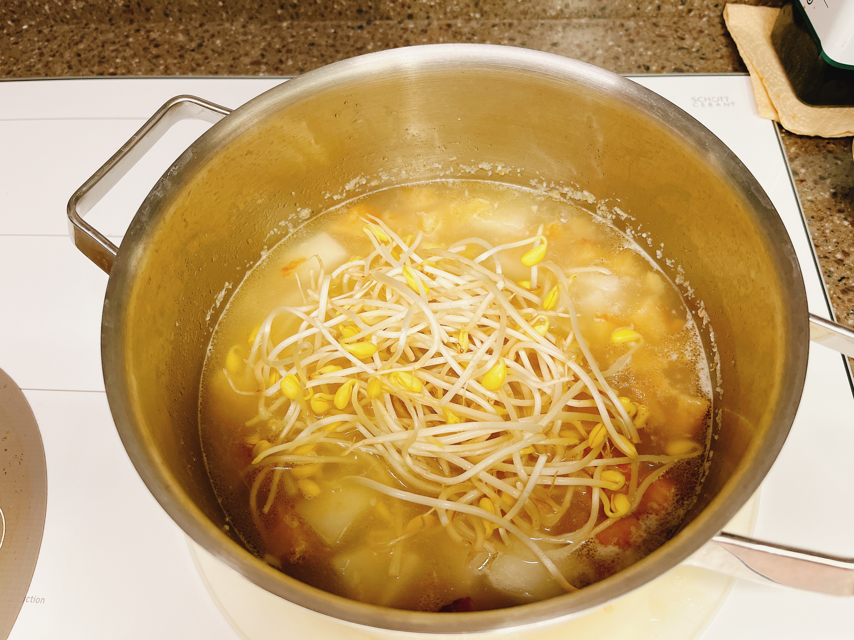 힘든 속을 풀기 위해 황태국을 끓였어요