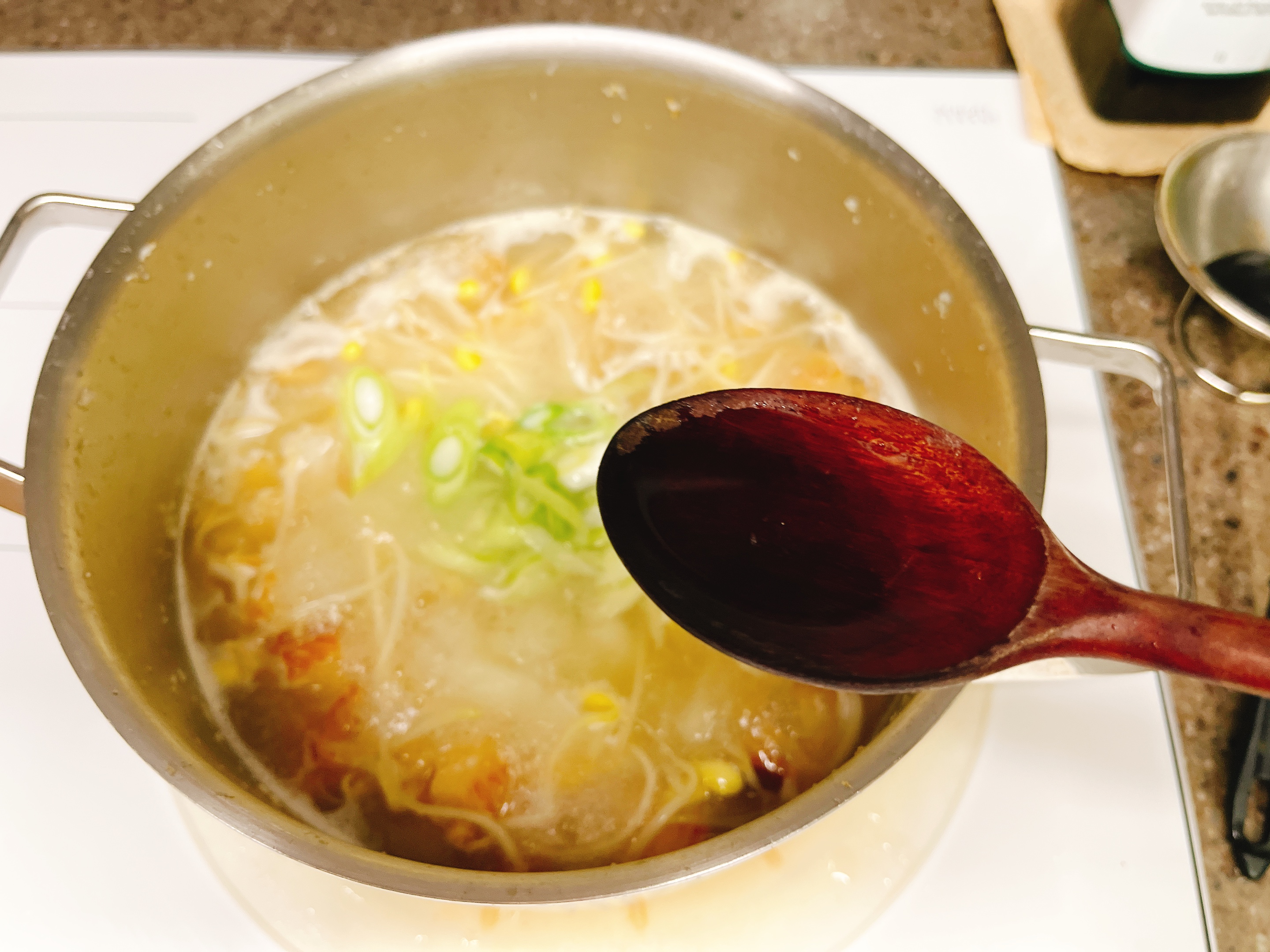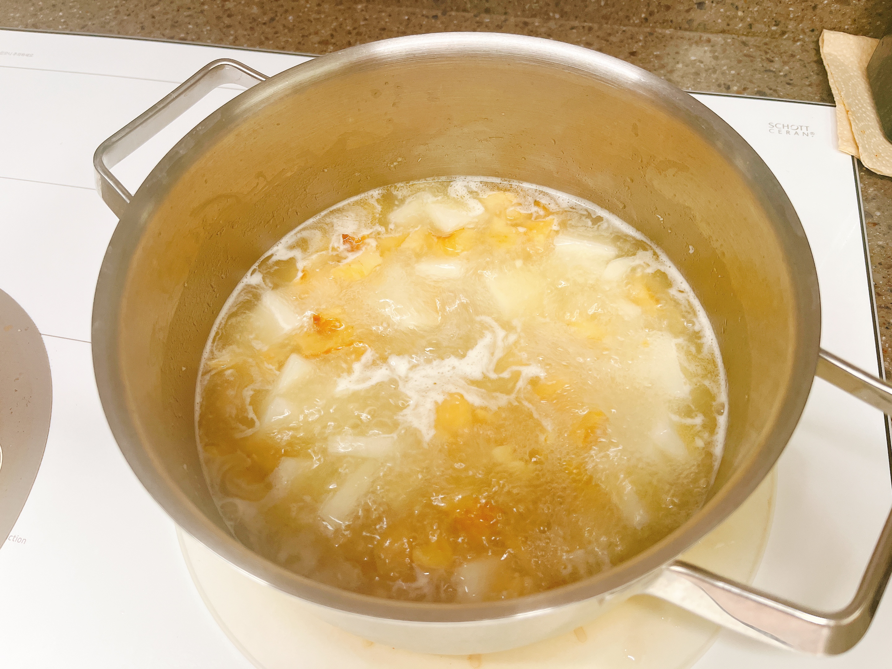 (짜낸 물은 버리지 않아요~ 육수로 사용해요)