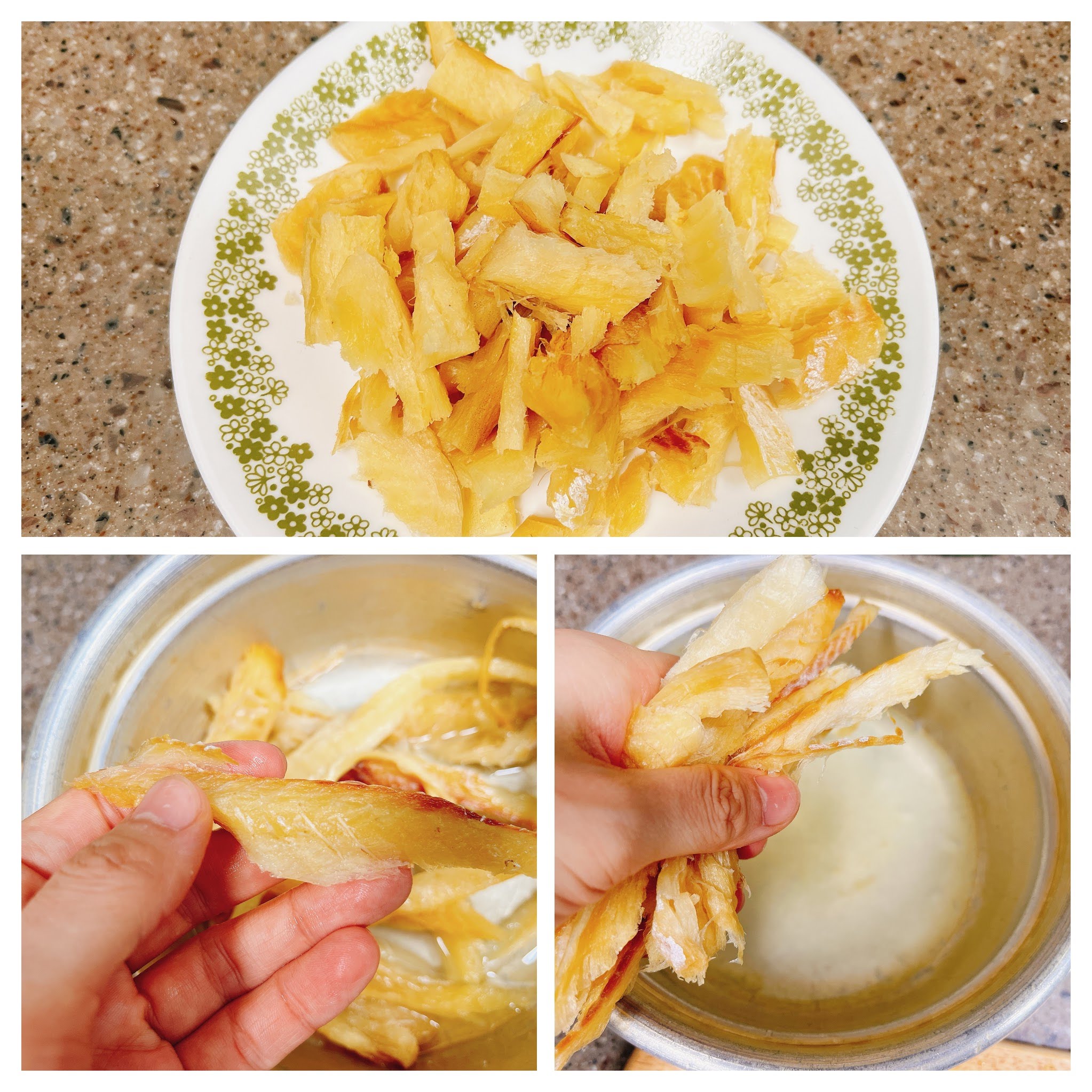 물 반컵정도에 황태를 불려요