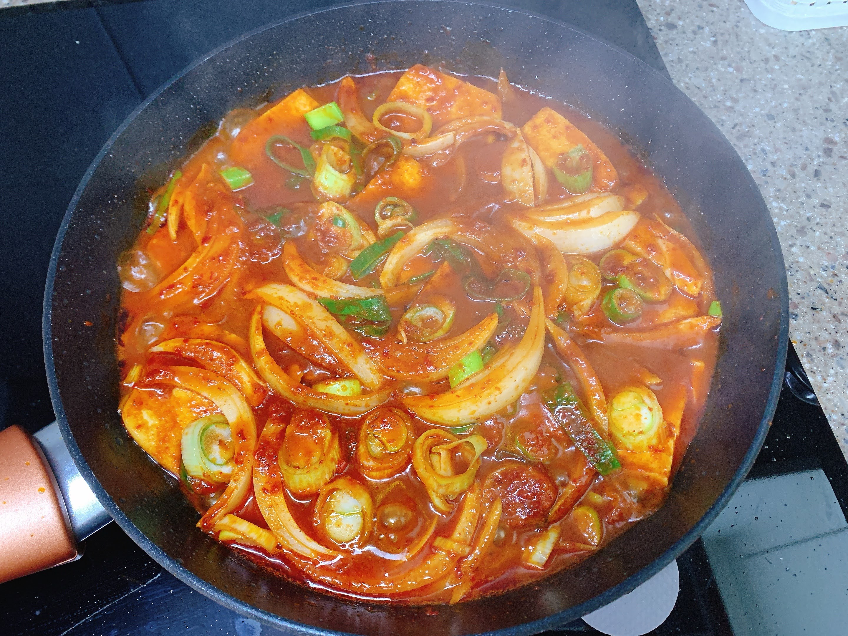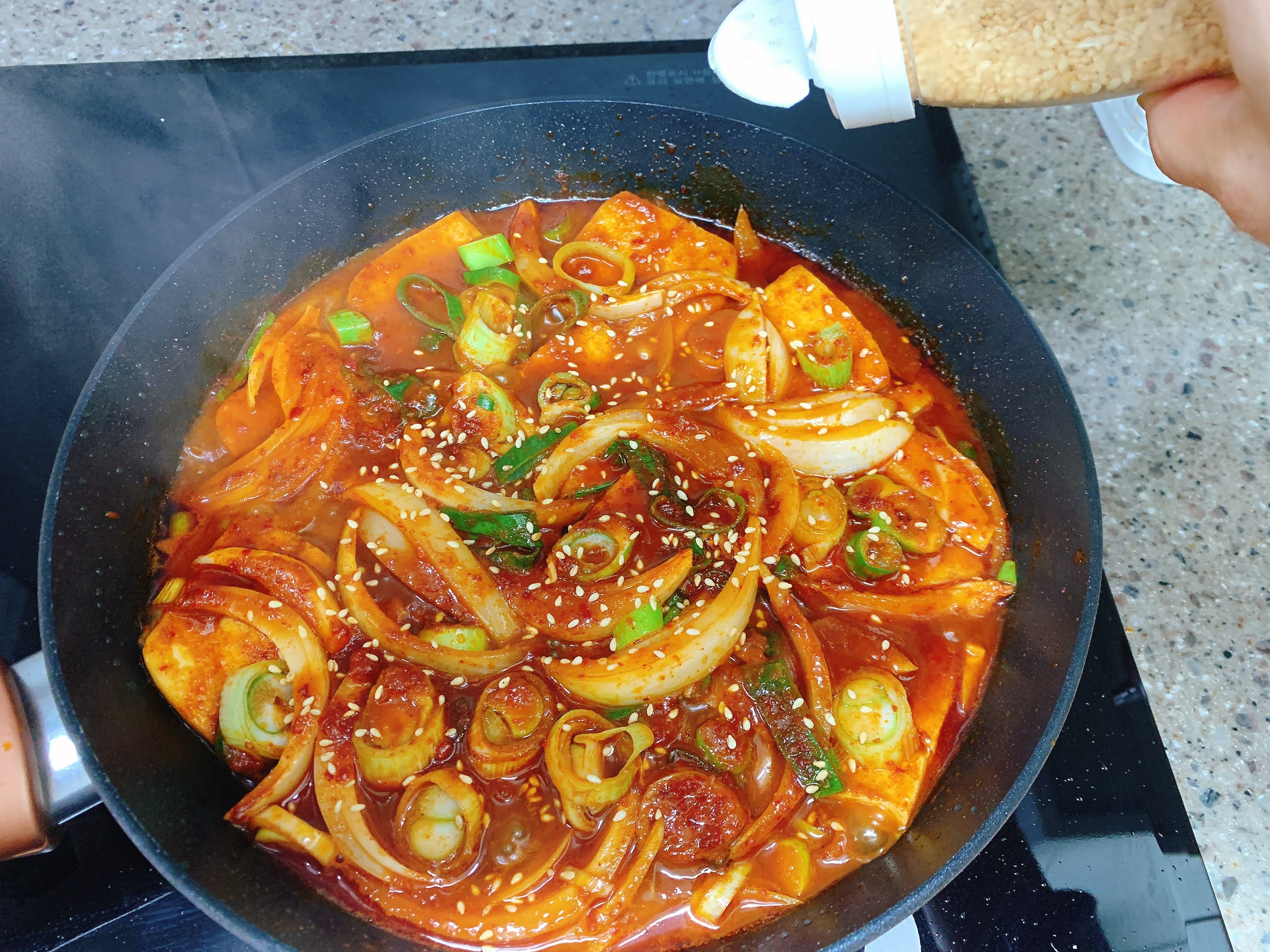 두부속까지 양념이 베이도록 중불로 조려줬어요