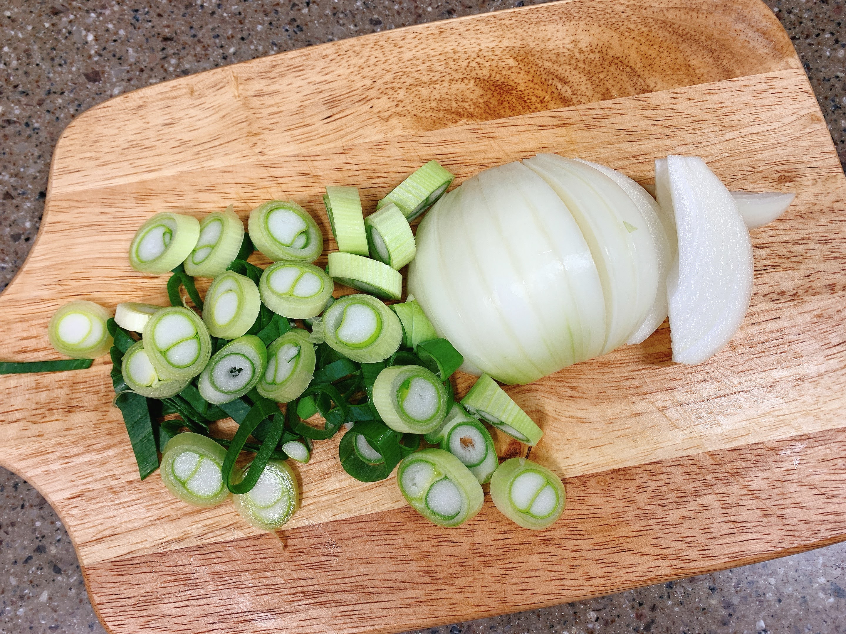 양파는 채썰고, 대파는 송송 썰어주었어요