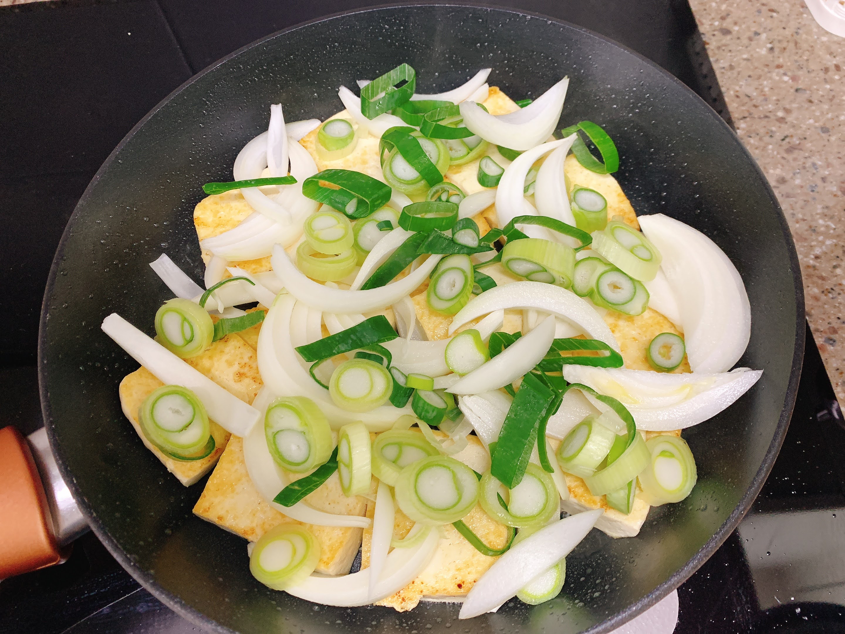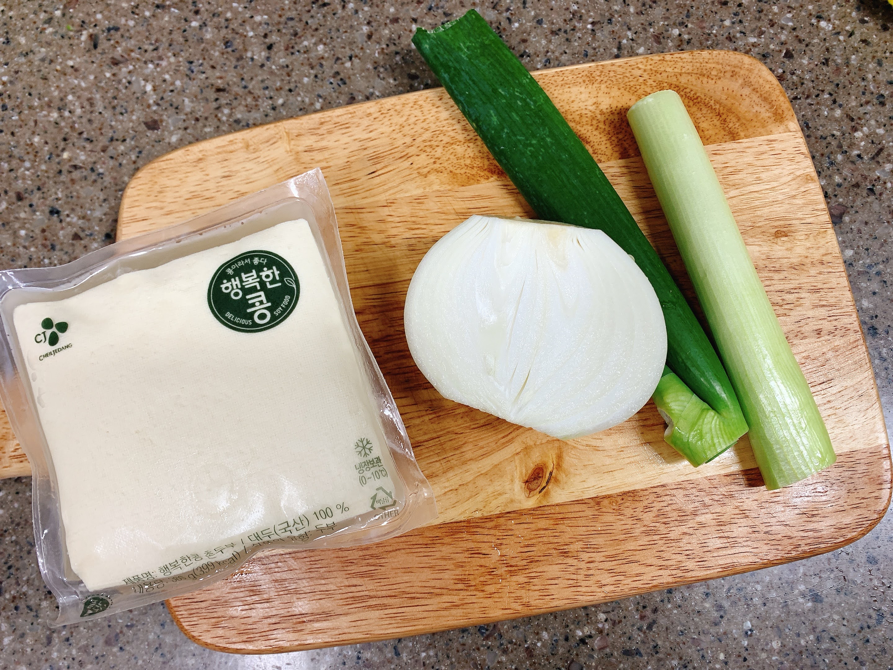 두부와 양파, 대파를 준비했어요