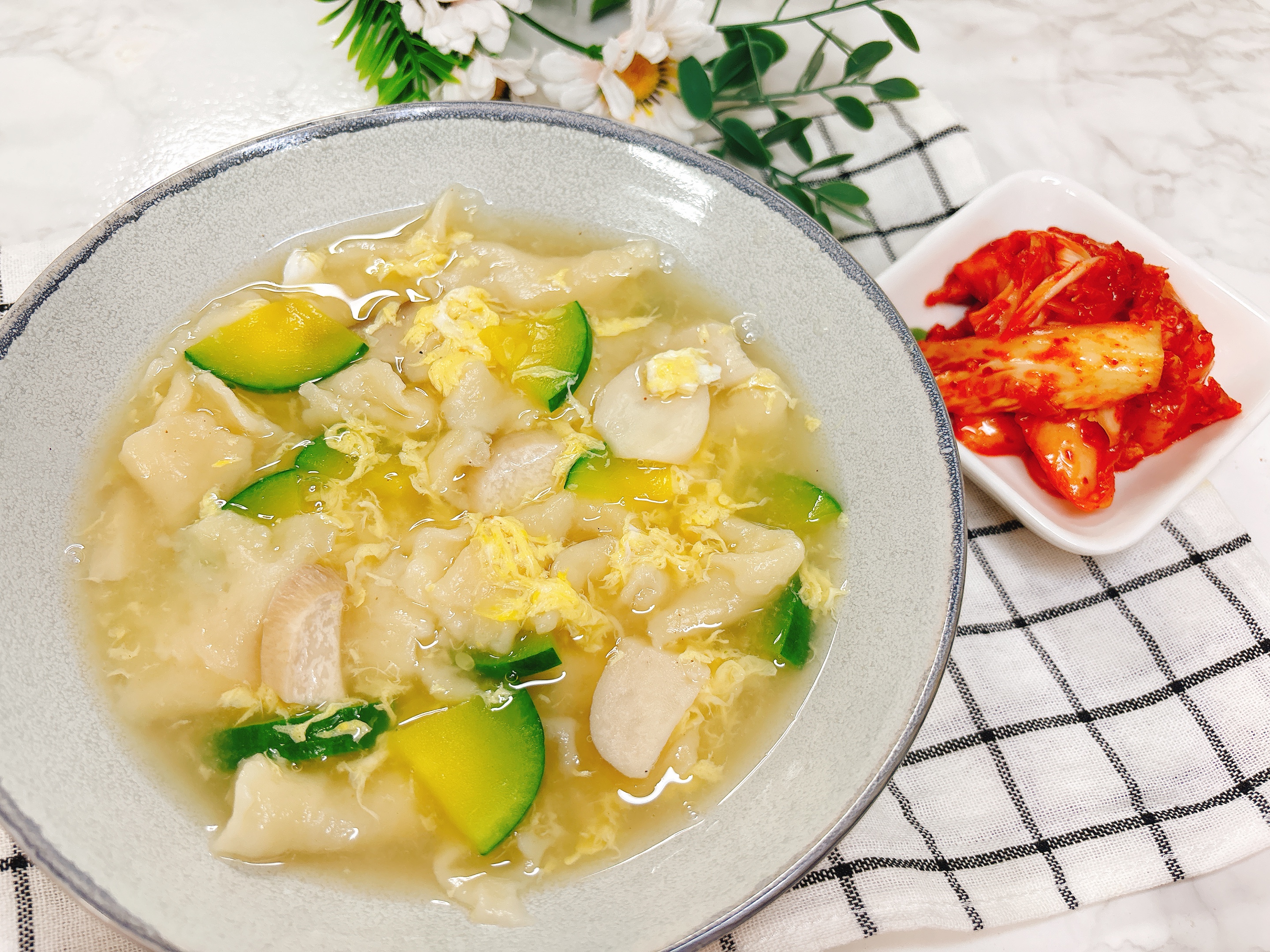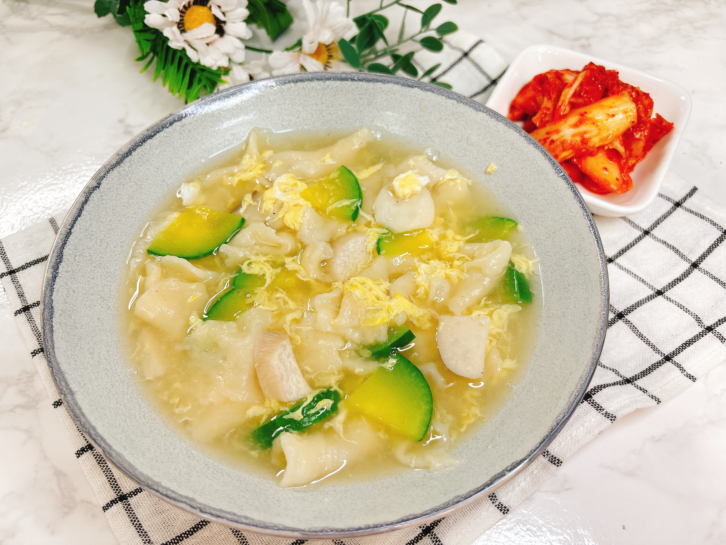 넓고 얇게 펴서 적당한 크기로 떼어 넣어요