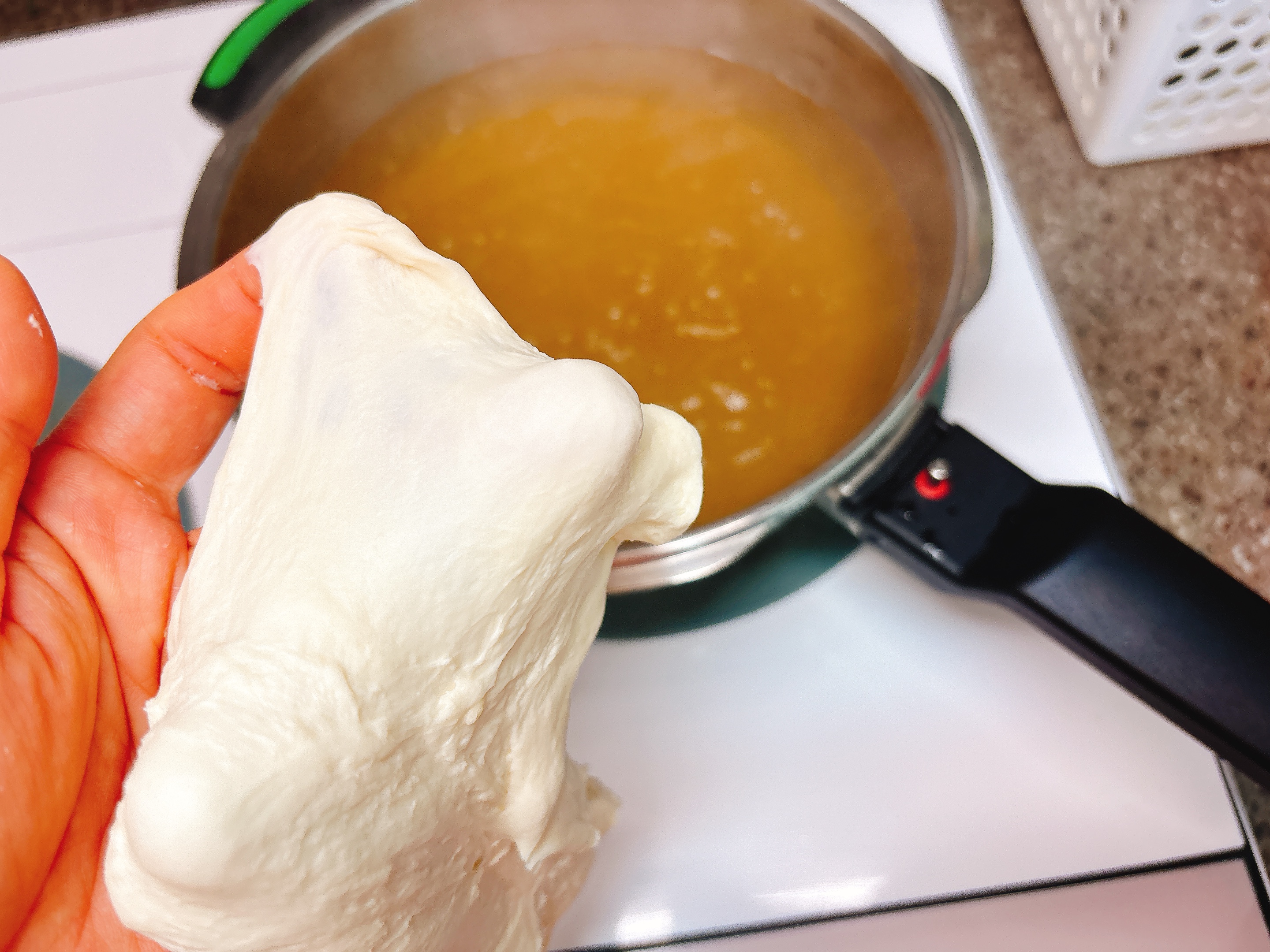 4. 반죽 떼어넣기