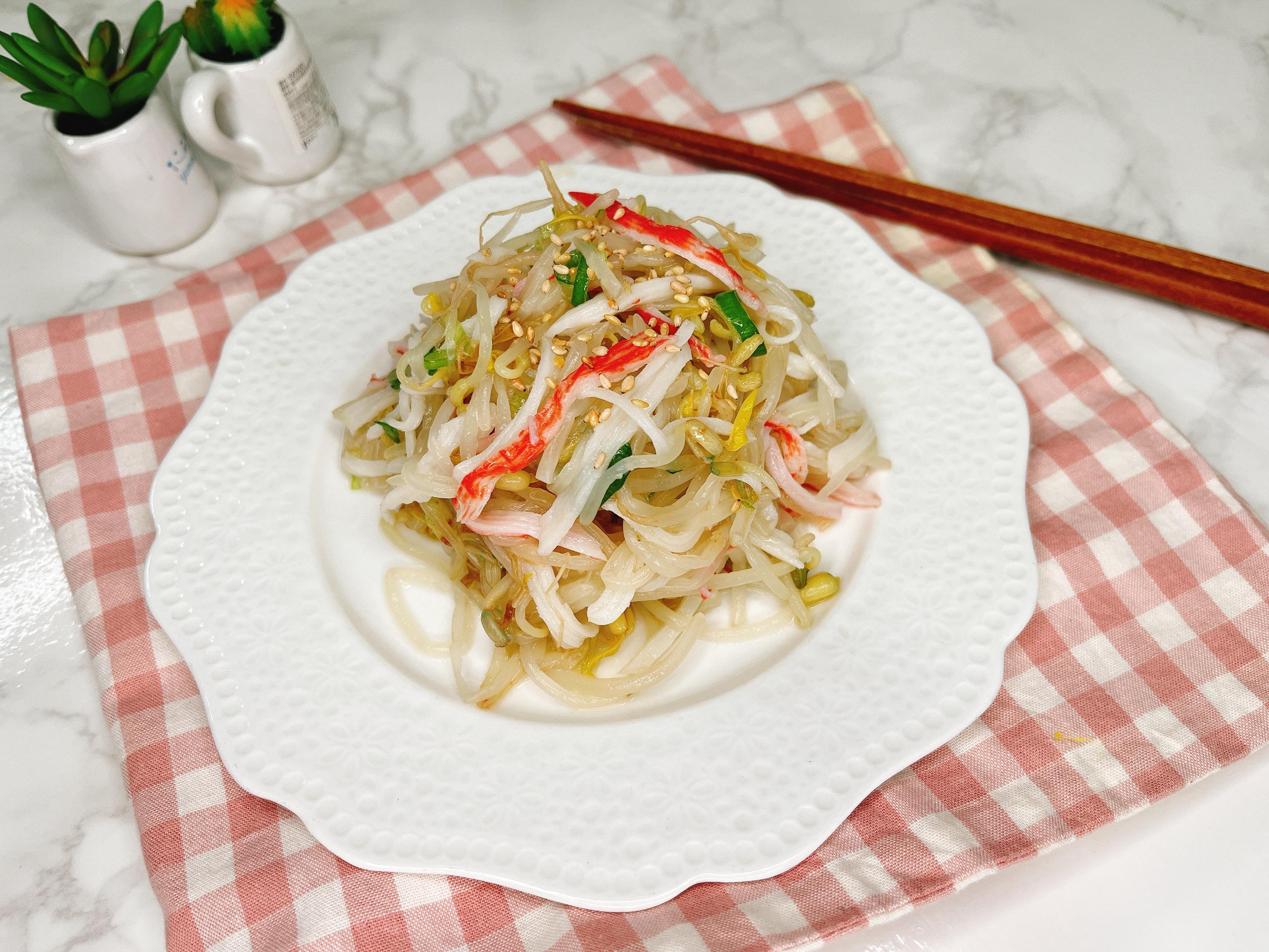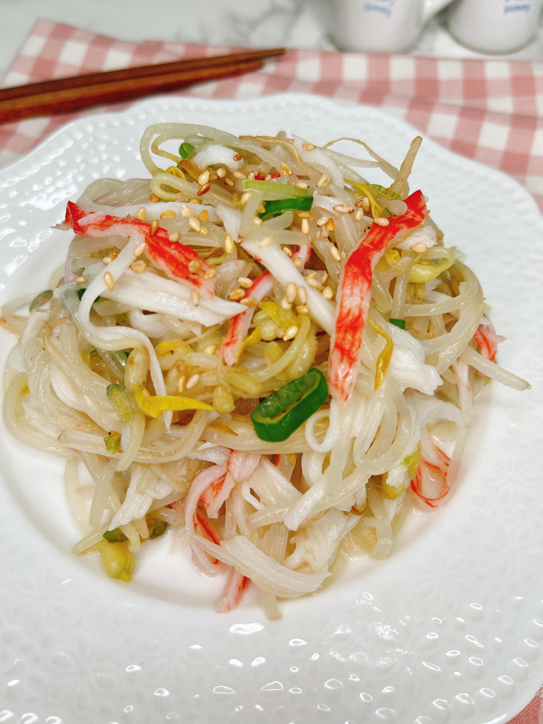 찢은 크래미, 대파도 넣어 어울어지게 섞어요
