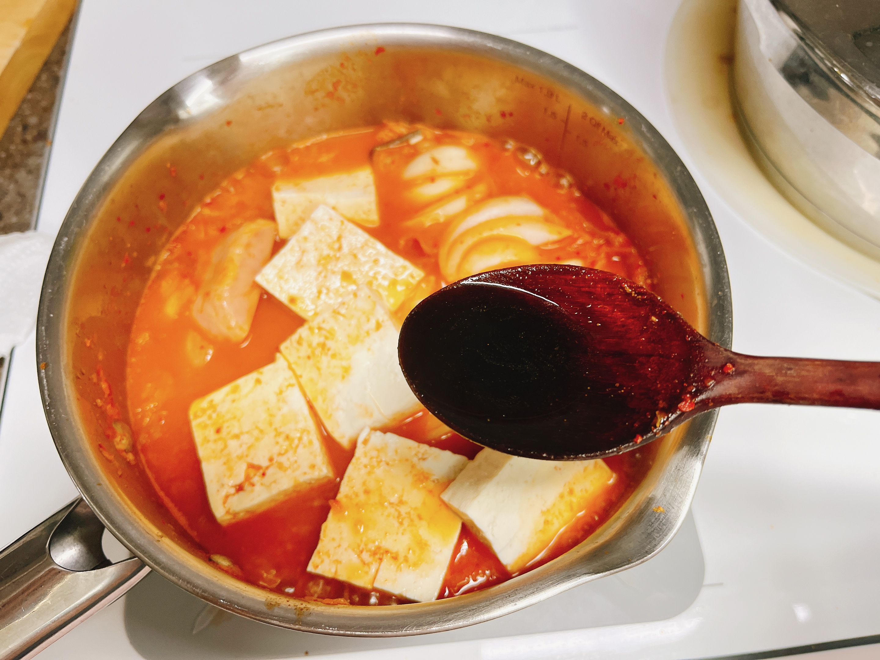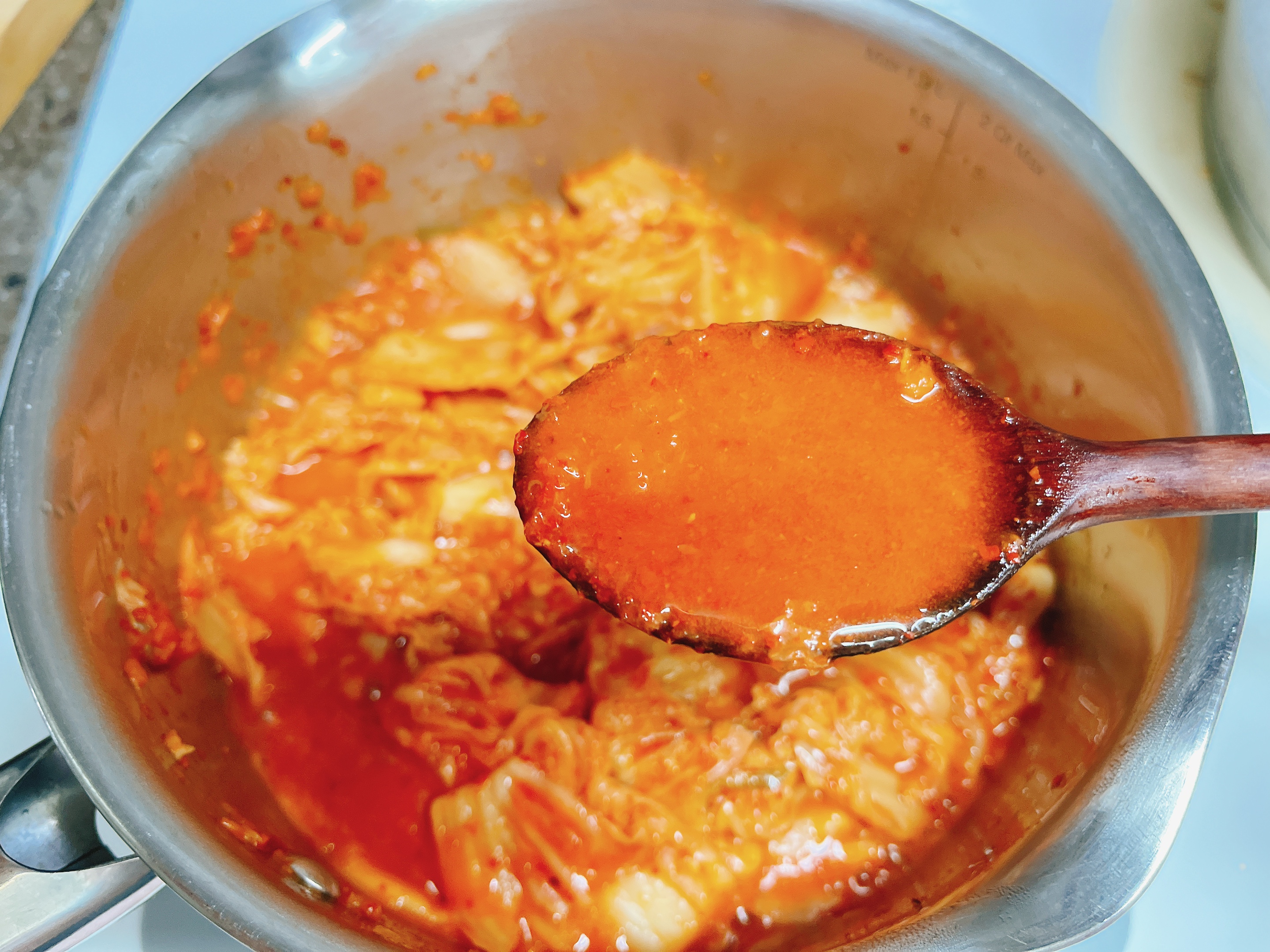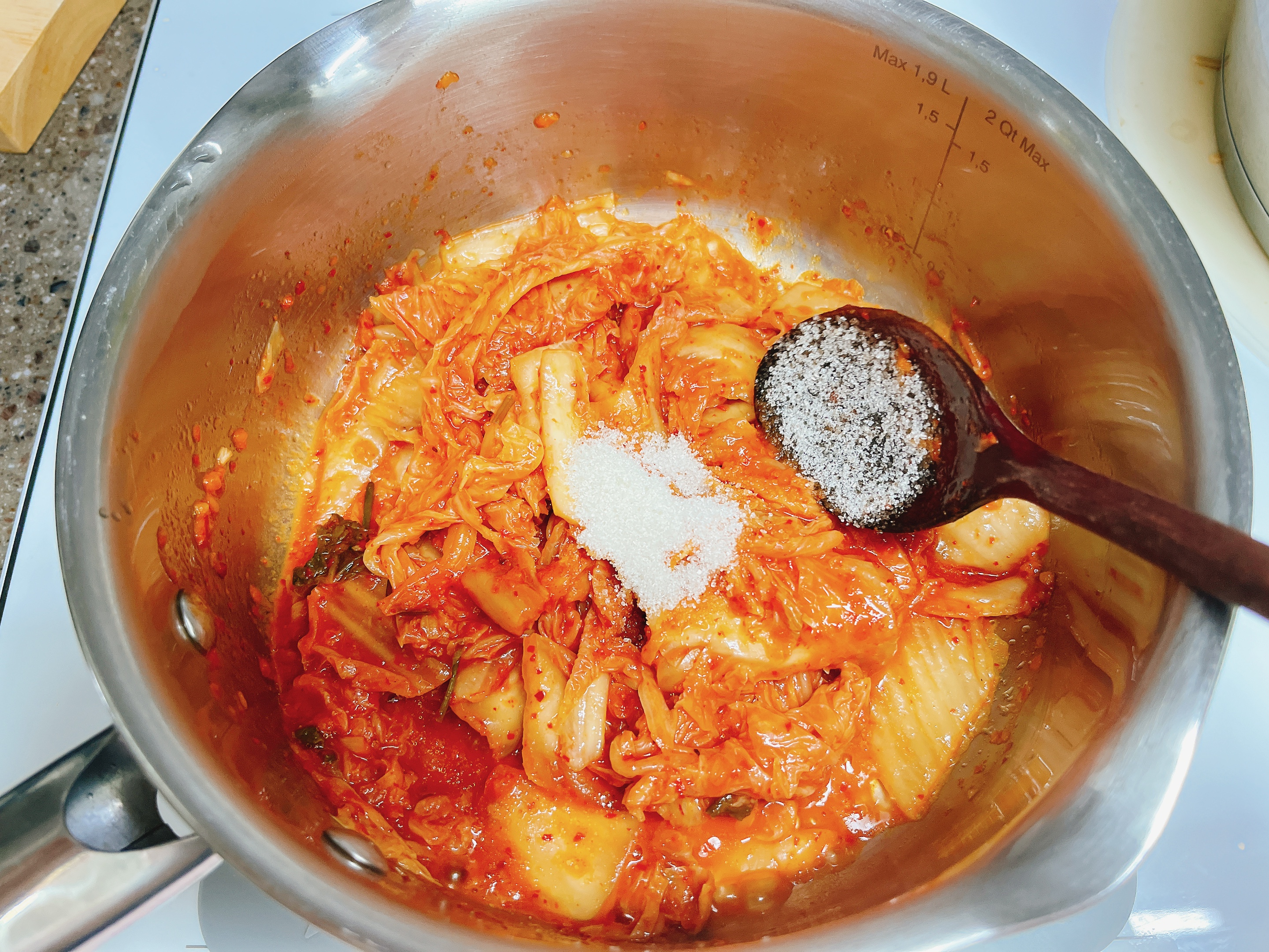 식용유 한스푼, 김치, 신맛이 심해서 설탕도 반스푼