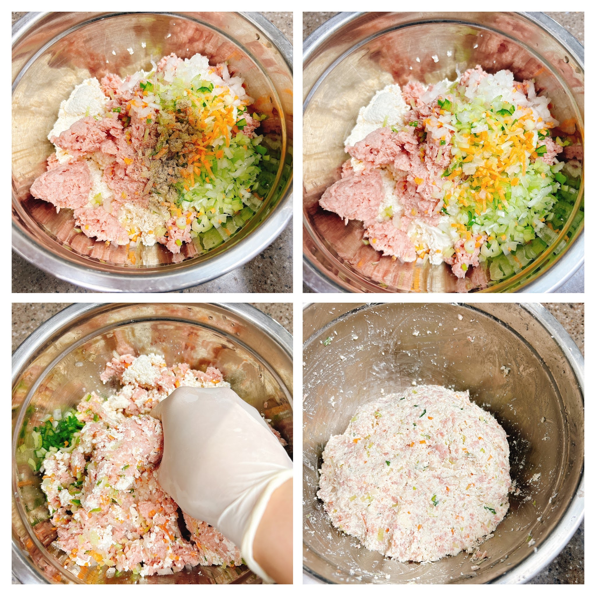 다진 채소들 그리고 후추가루를 섞어