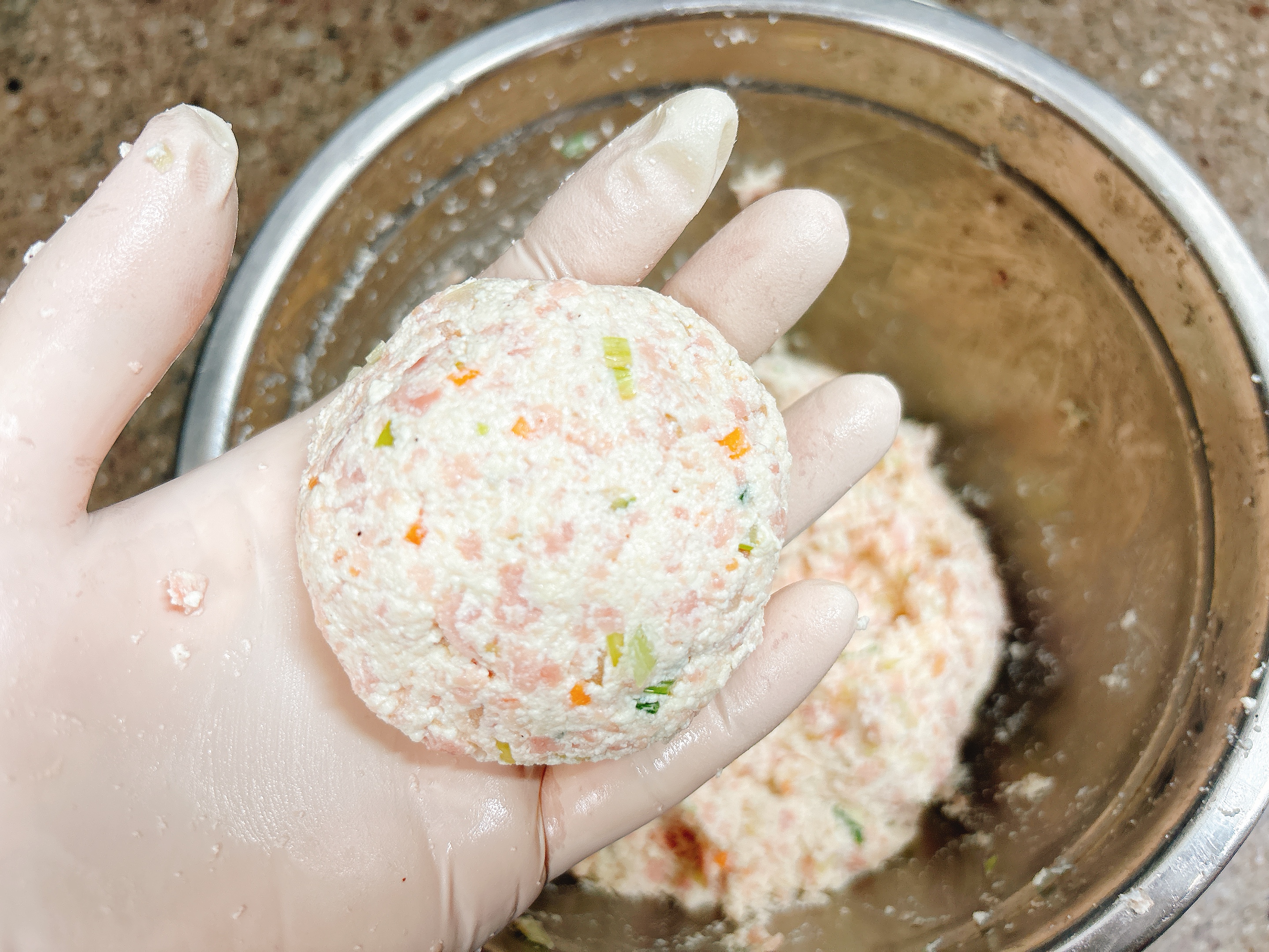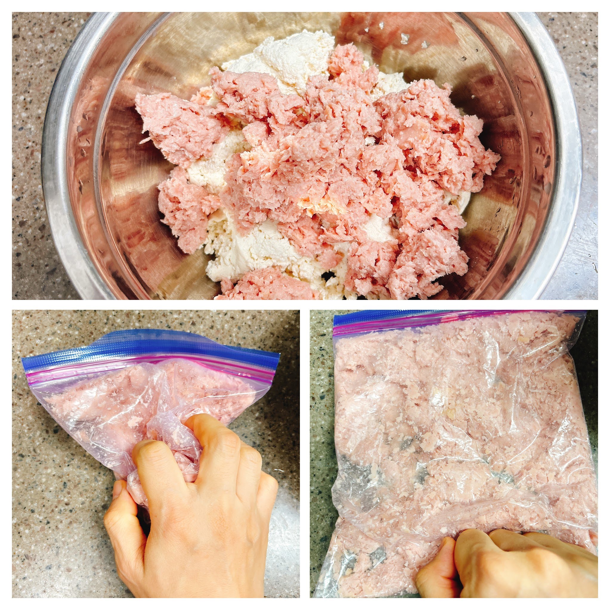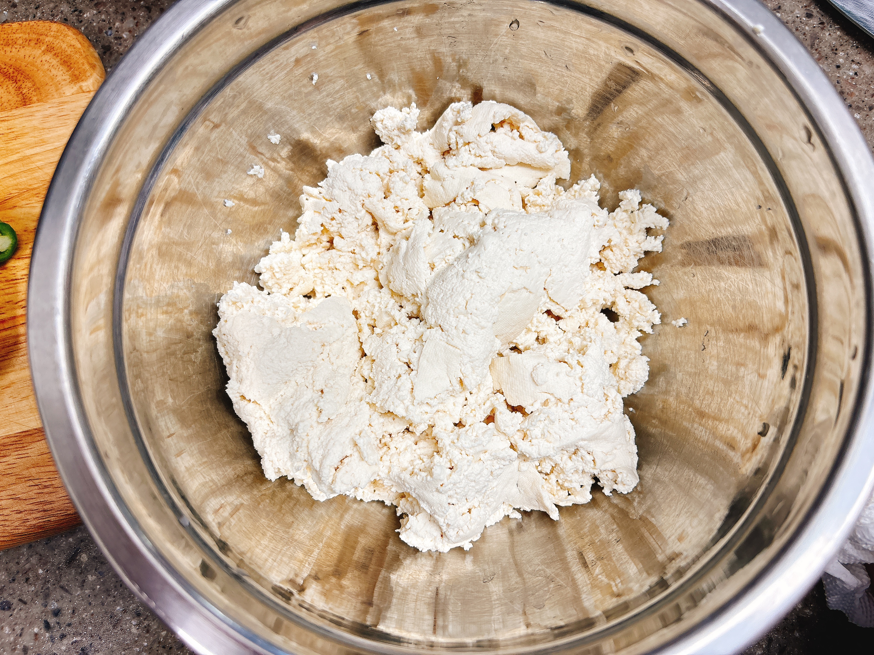 으깬 스팸, 물기뺀 두부,