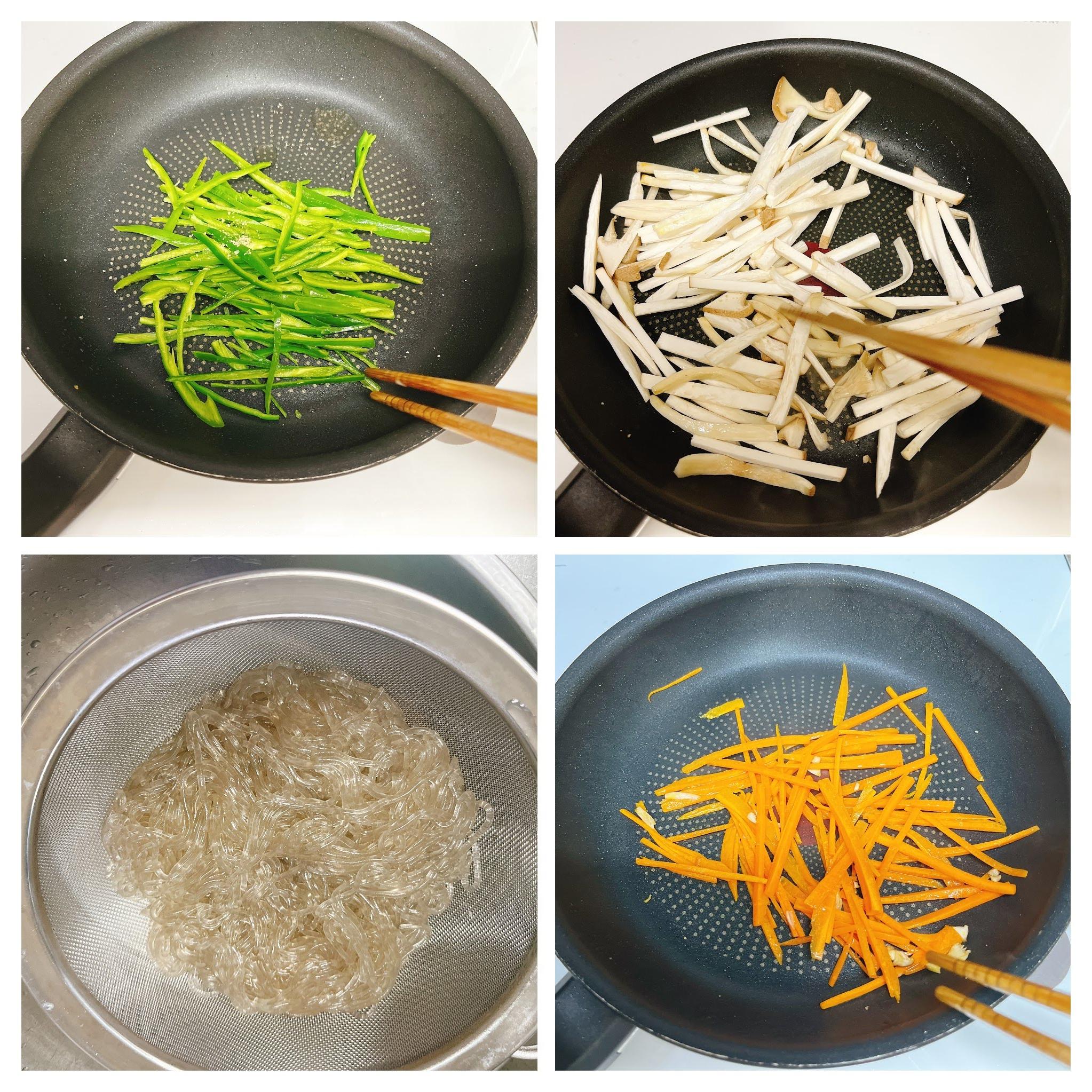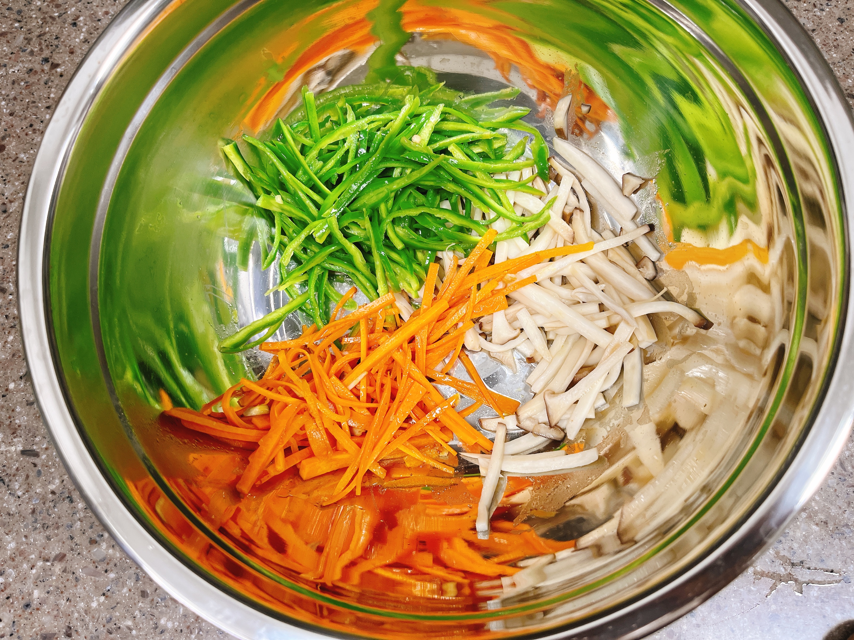 당근과 새송이버섯도 비슷한 길이와 굵기로 채썰어요