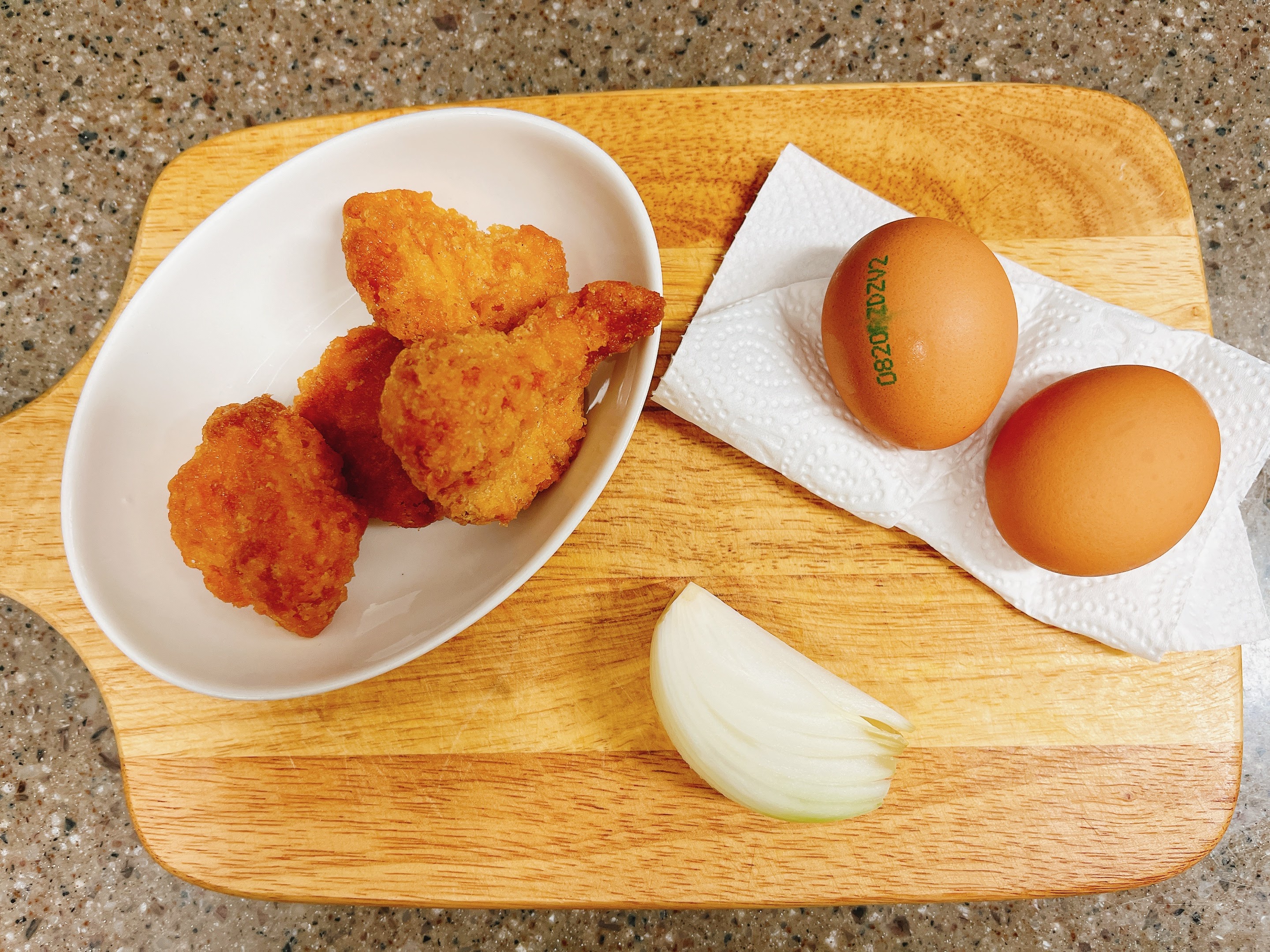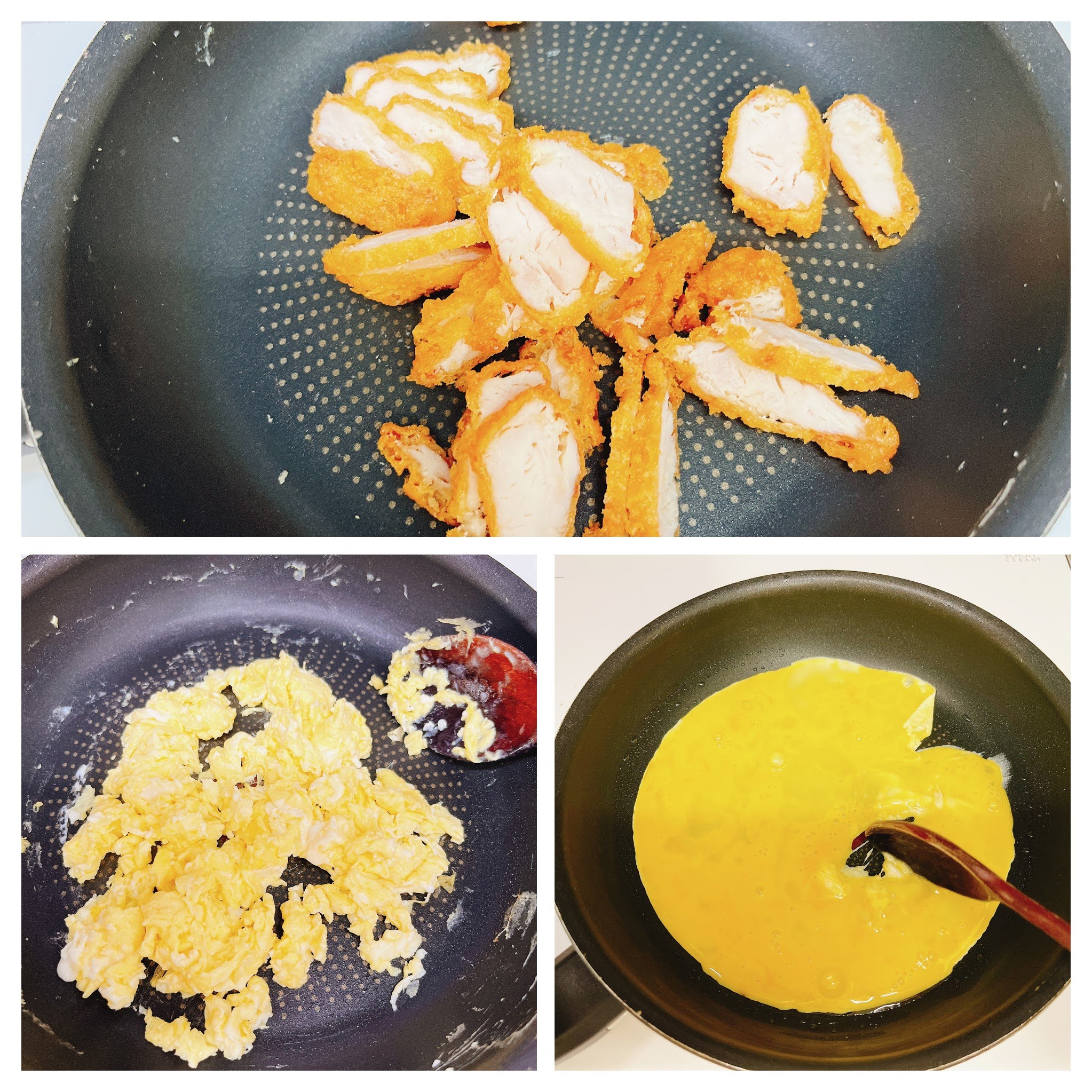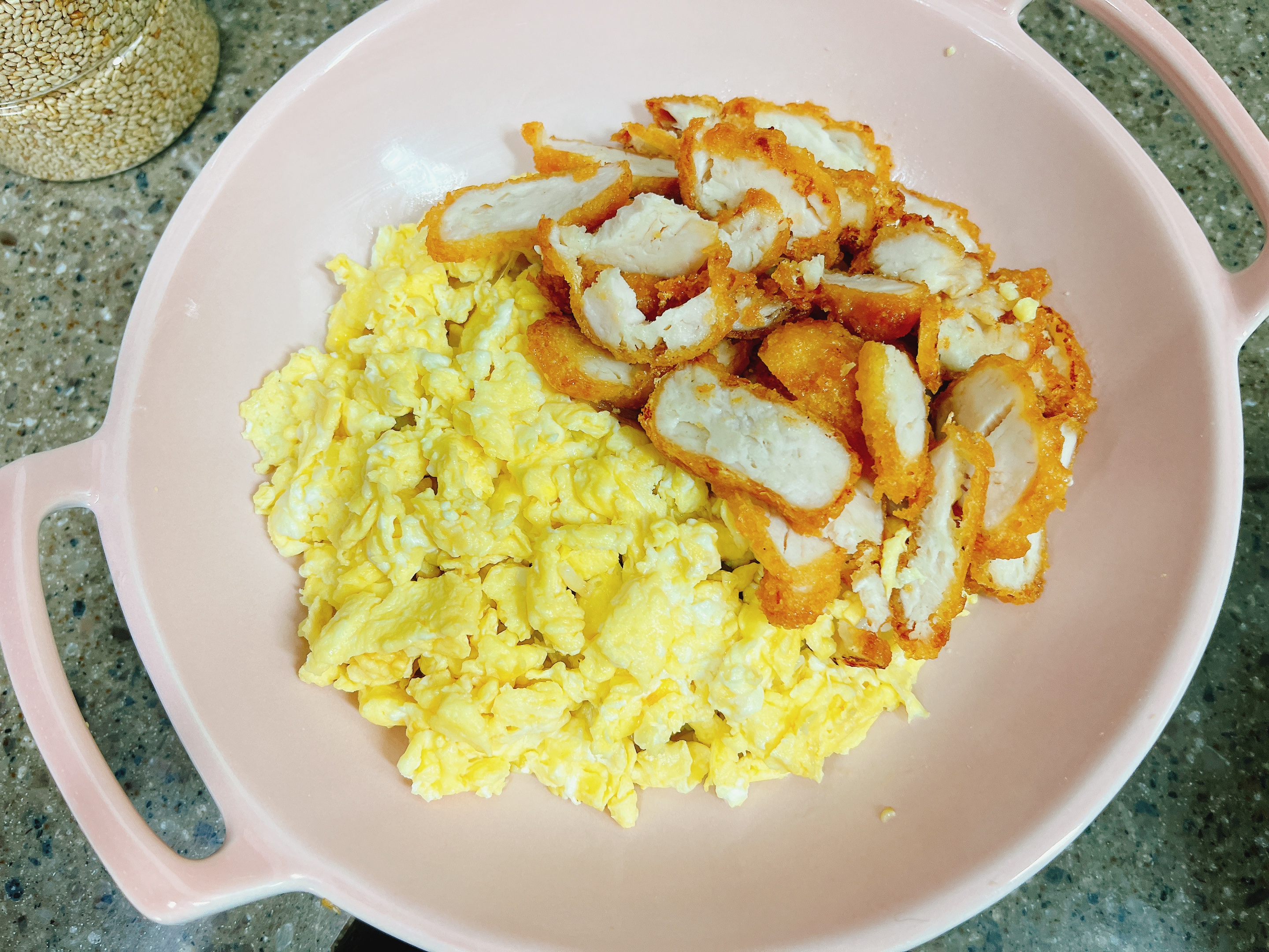 계란과 치킨을 올리고