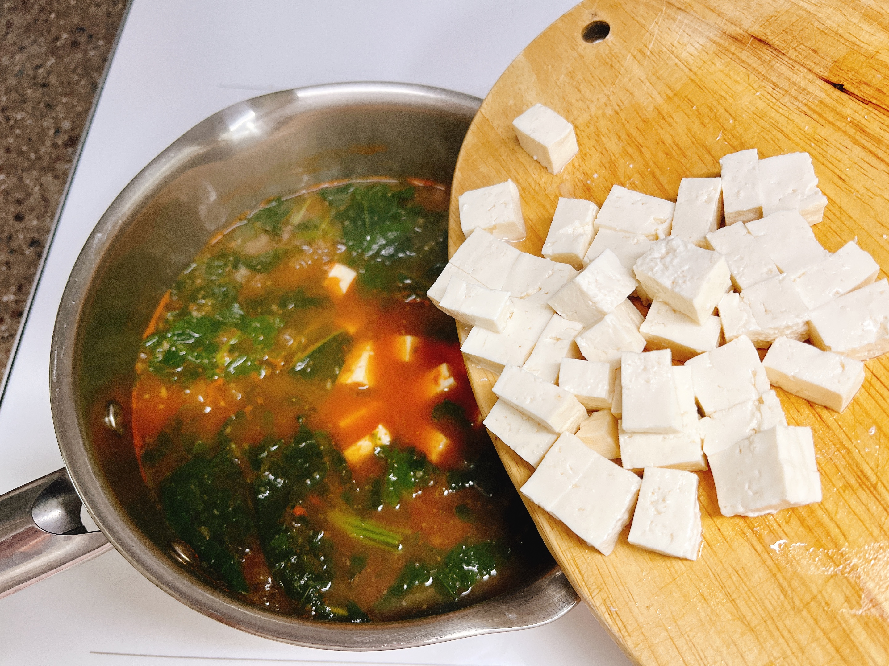 아욱과 두부를 준비하고