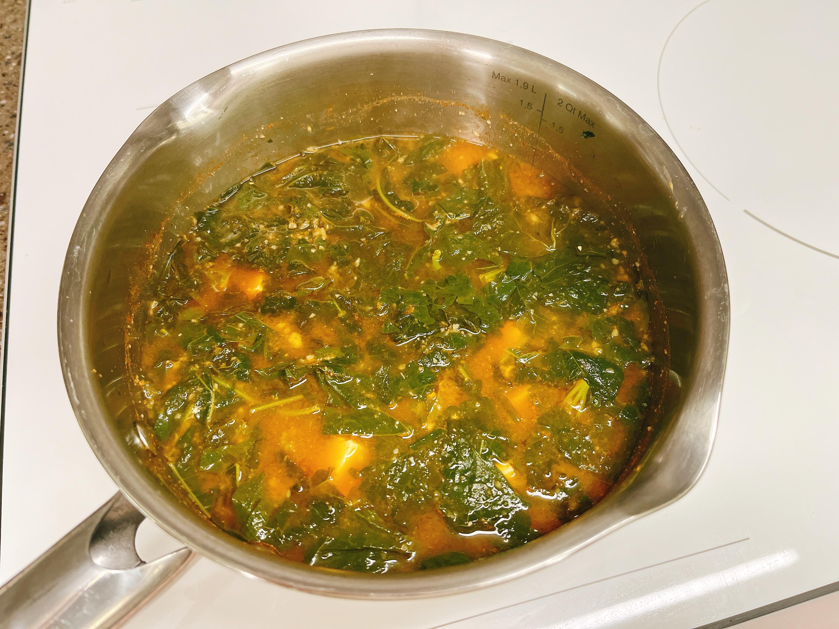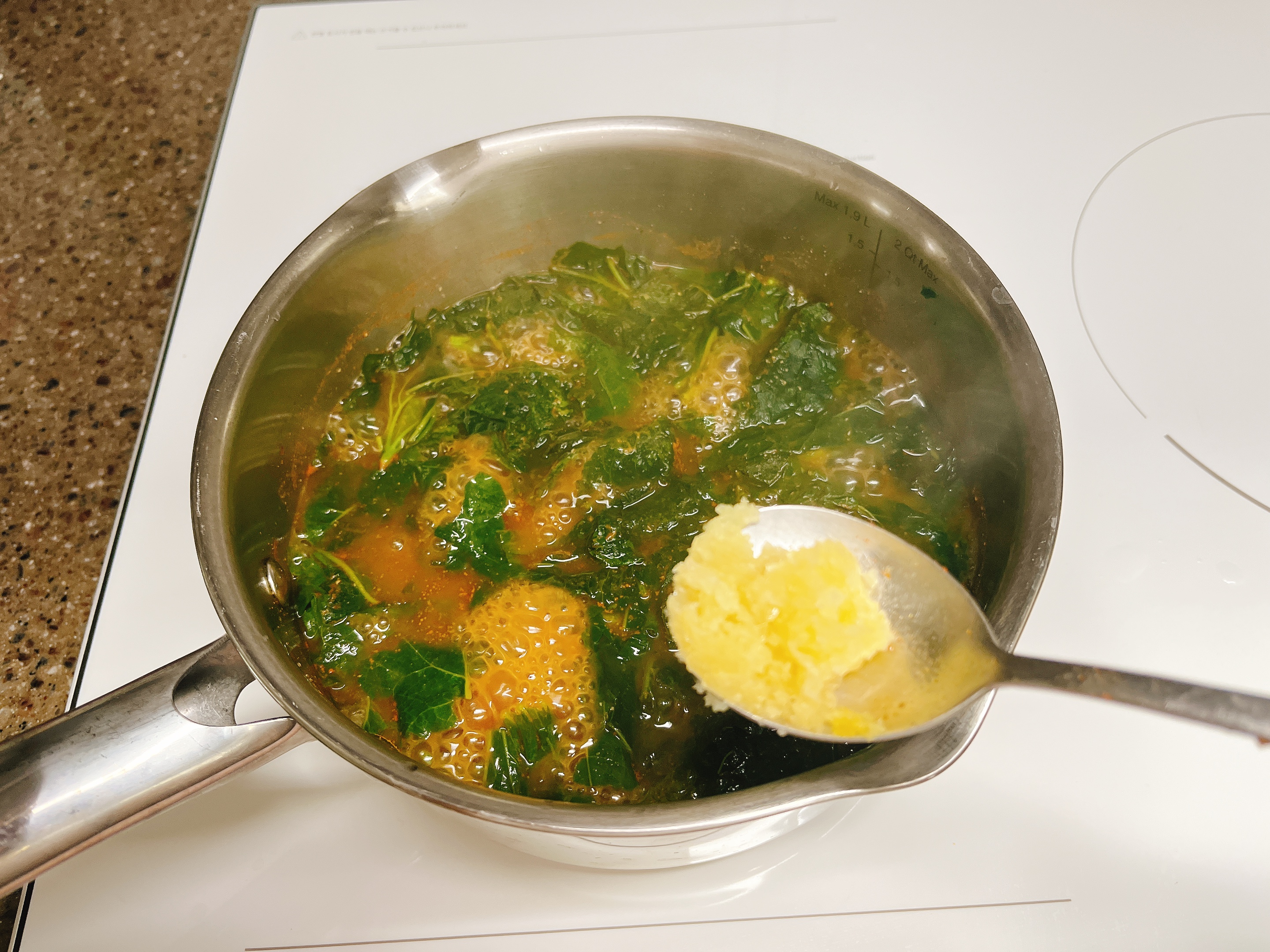다진마늘 약간 넣고 3~5분간 끓이다